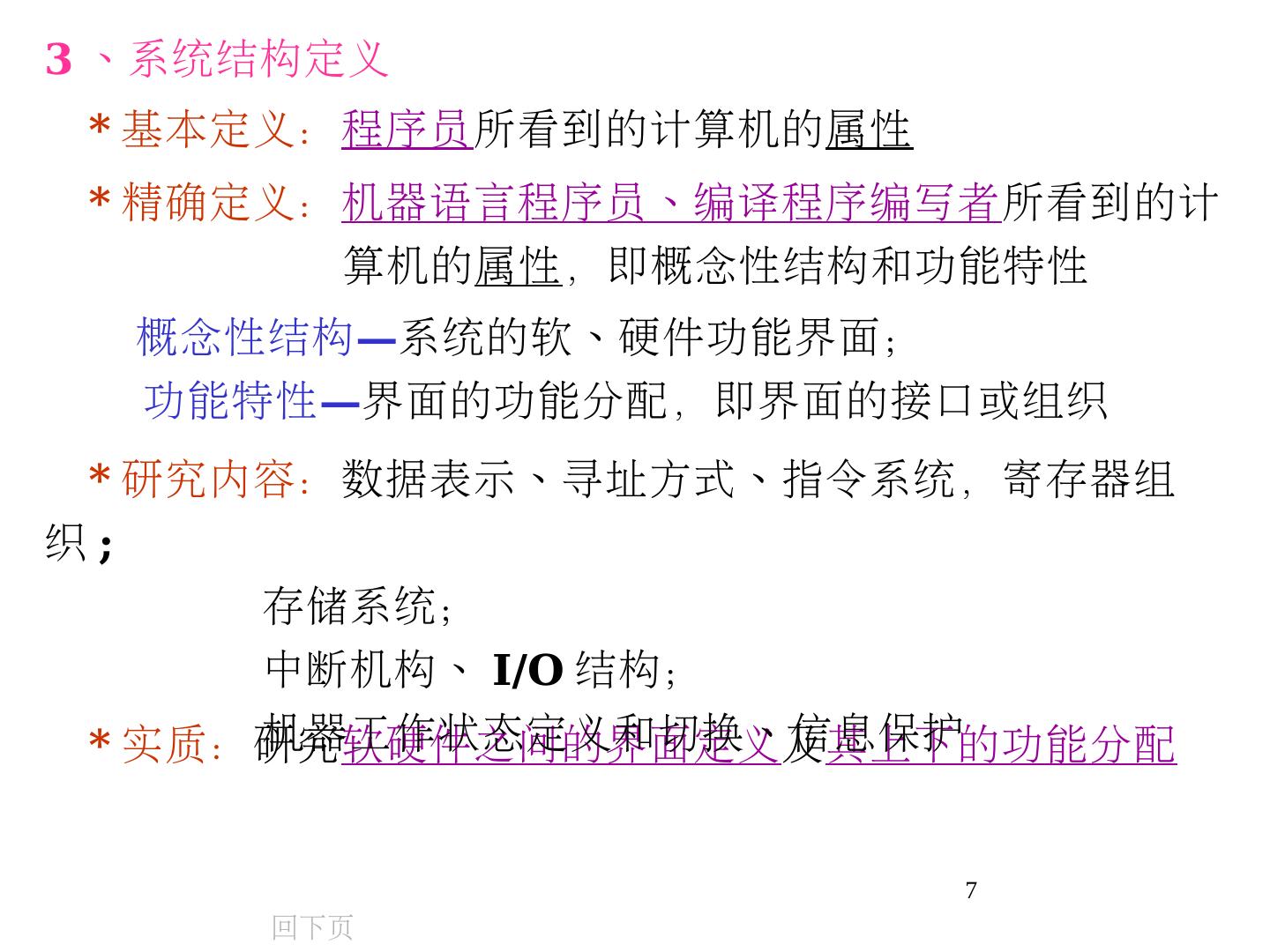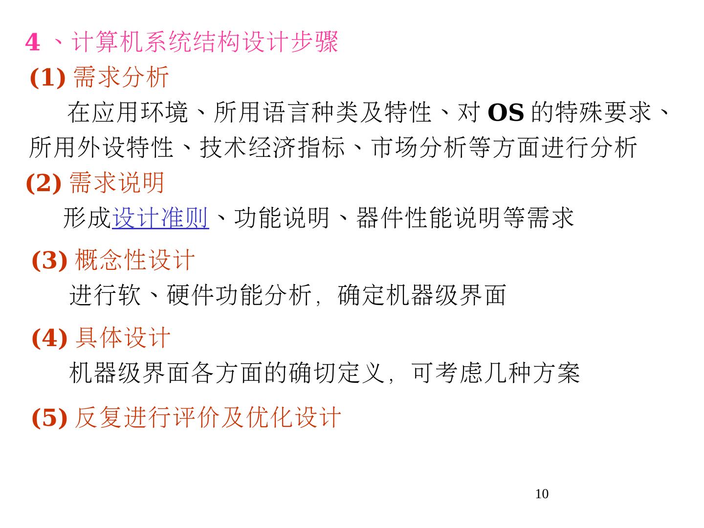 精确定义:机器语言程序员、编译程序编写者所看到的计算机的属性,即概念性结构和功能特性 .... 主存容量设计不应限制是否采用多体交叉存储器等. 3、所选方法应 ...