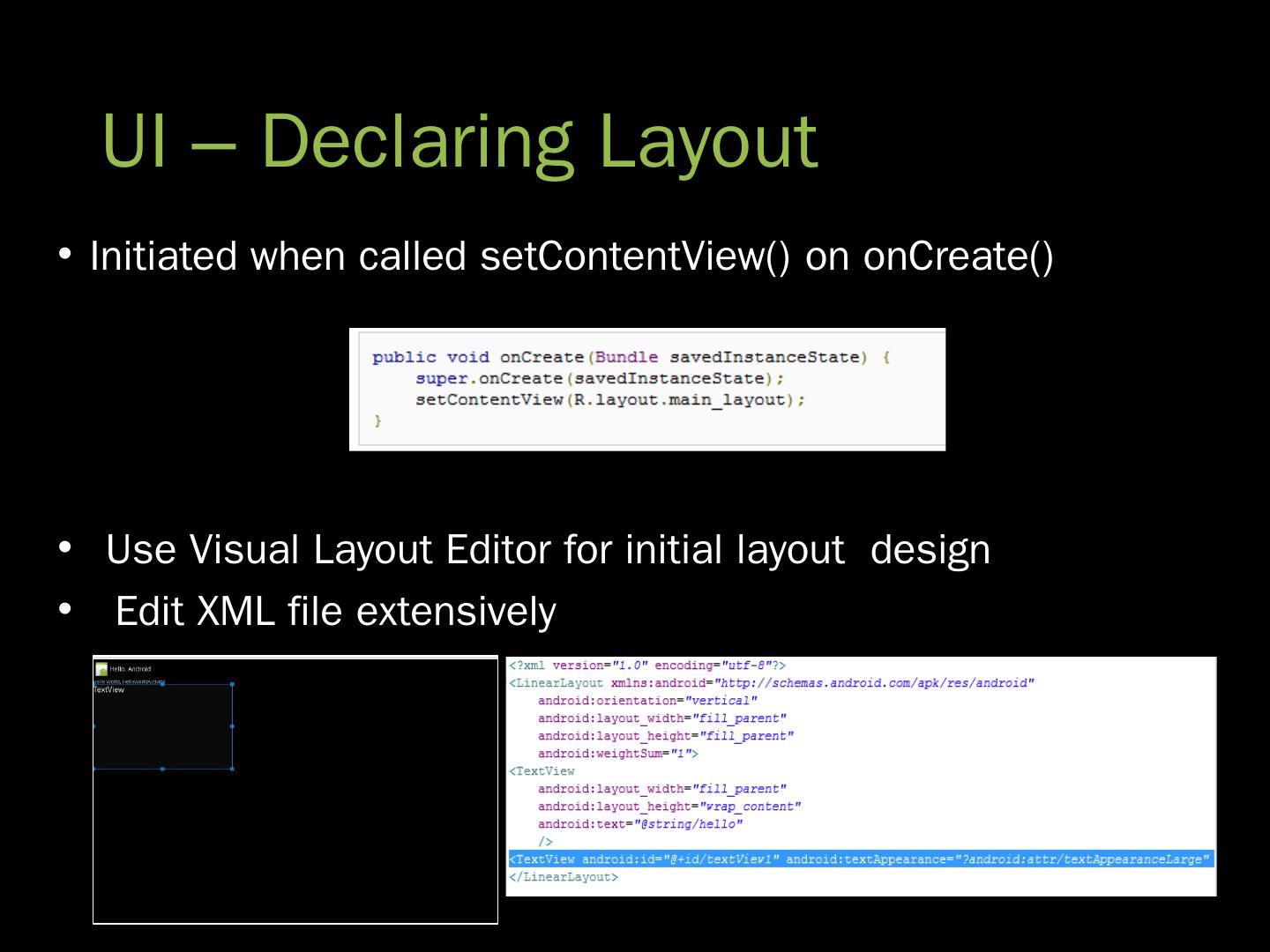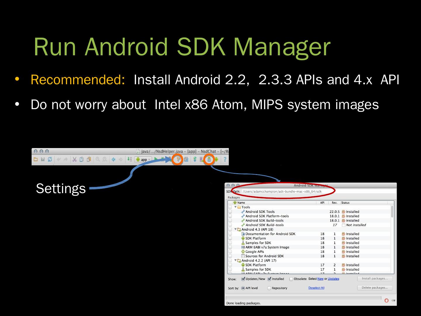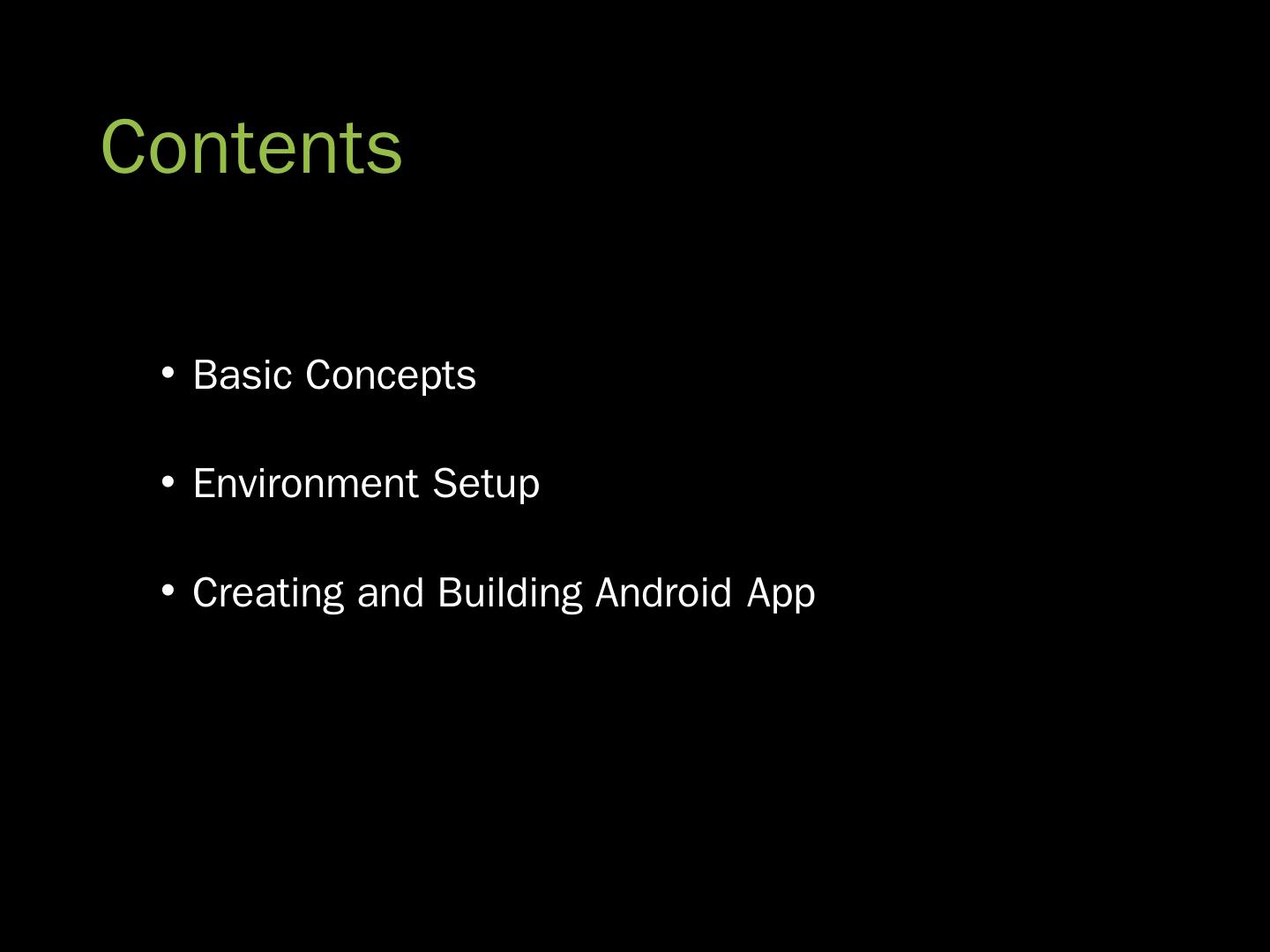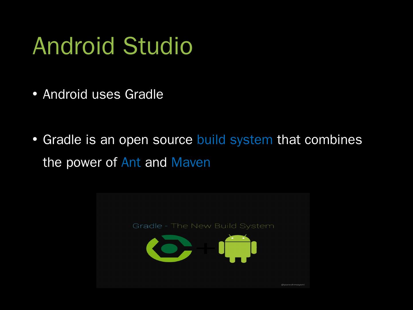 Eclipse IDE- Official IDE for Android development. Apache Ant for building projects. Android Development Environment based on IntelliJ IDEA. Android Studio.