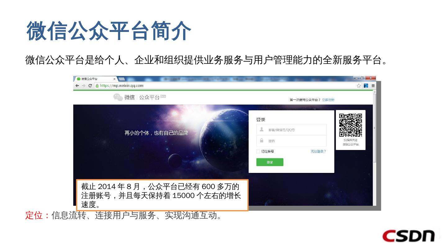 快速值机. 购物. 微信支付O2O闭环. 游戏. 多款经典. 社交游戏. 微信公众平台简介. 微信公众平台是给个人、企业和组织提供业务服务与用户管理能力的全新服务平台。