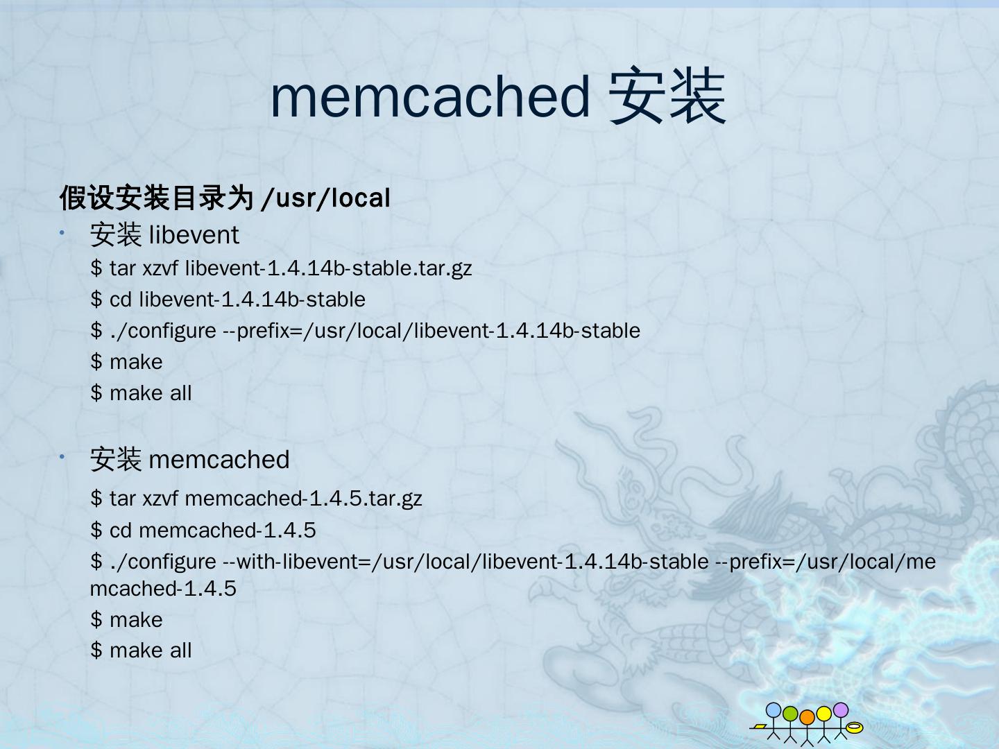 Memcached 是国外社区网站LiveJournal 的开发团队开发的高性能的分布式内存缓存服务器。一般的使用目的是,通过缓存数据库查询结果,减少数据库访问次数,以 ...