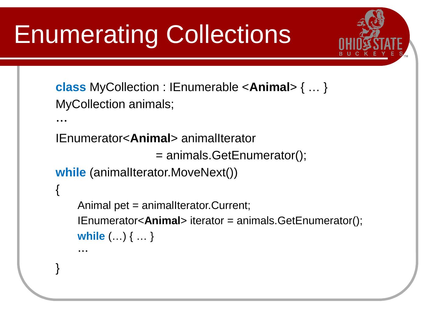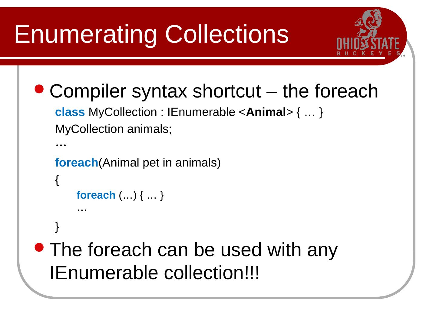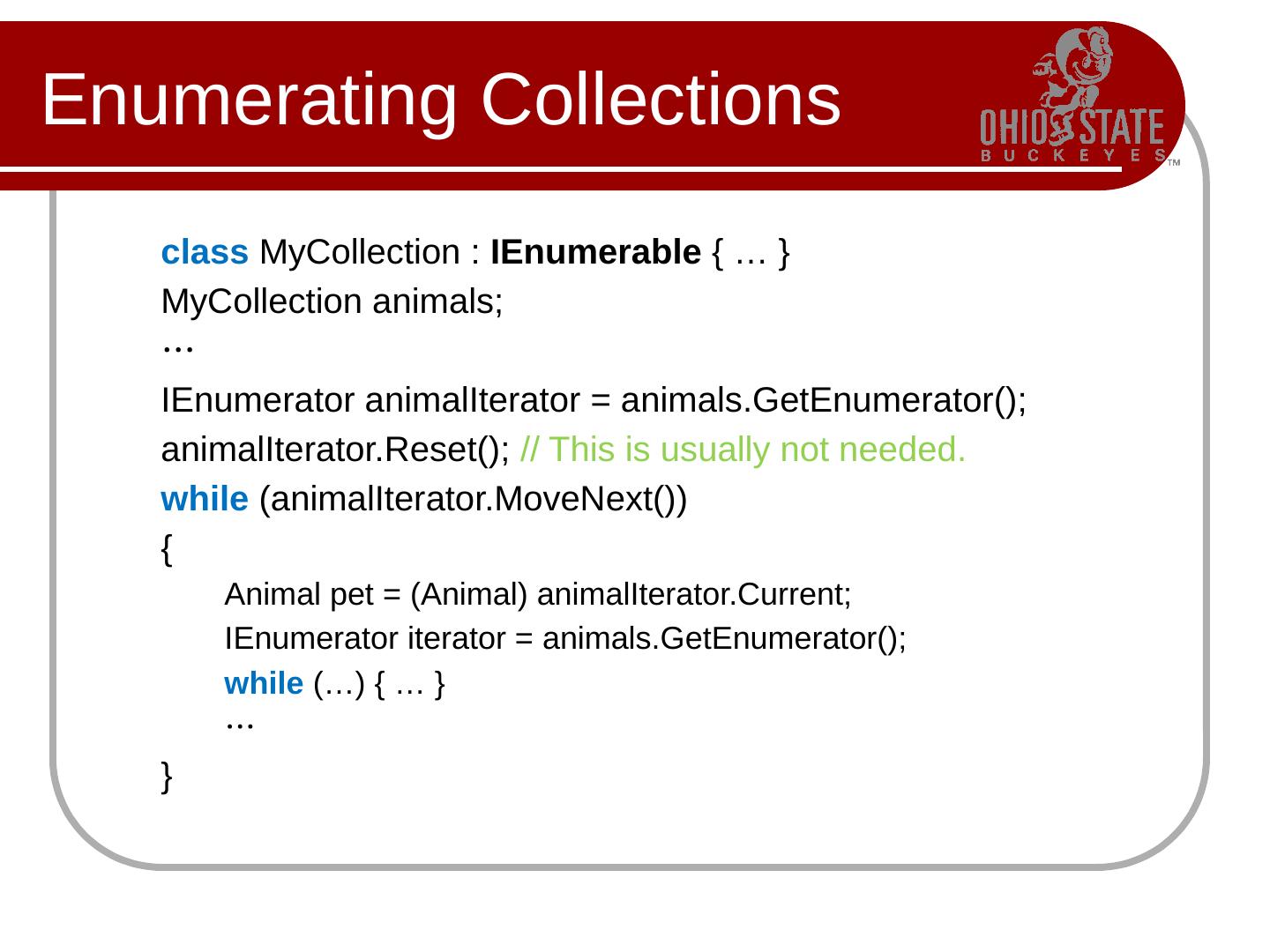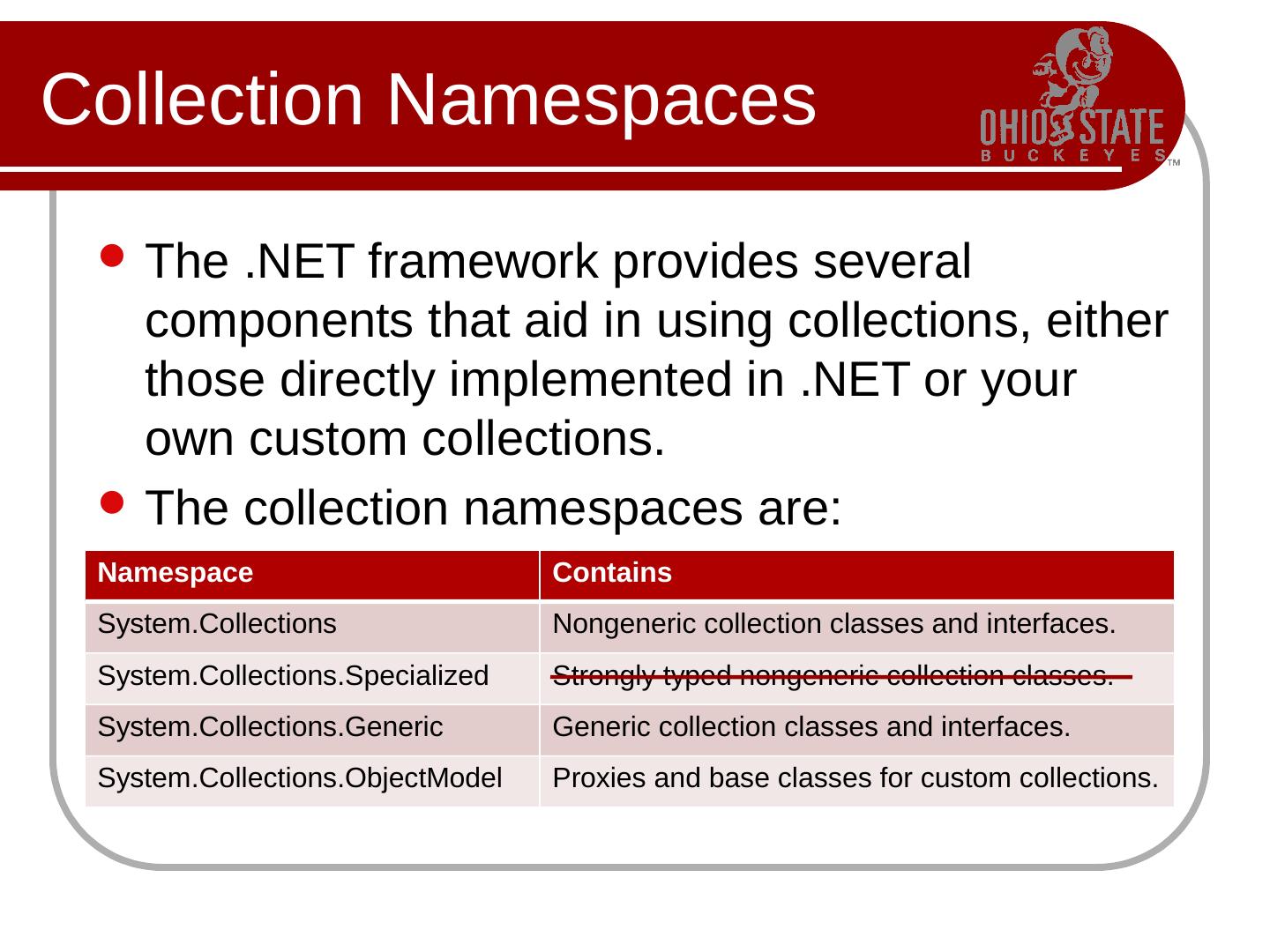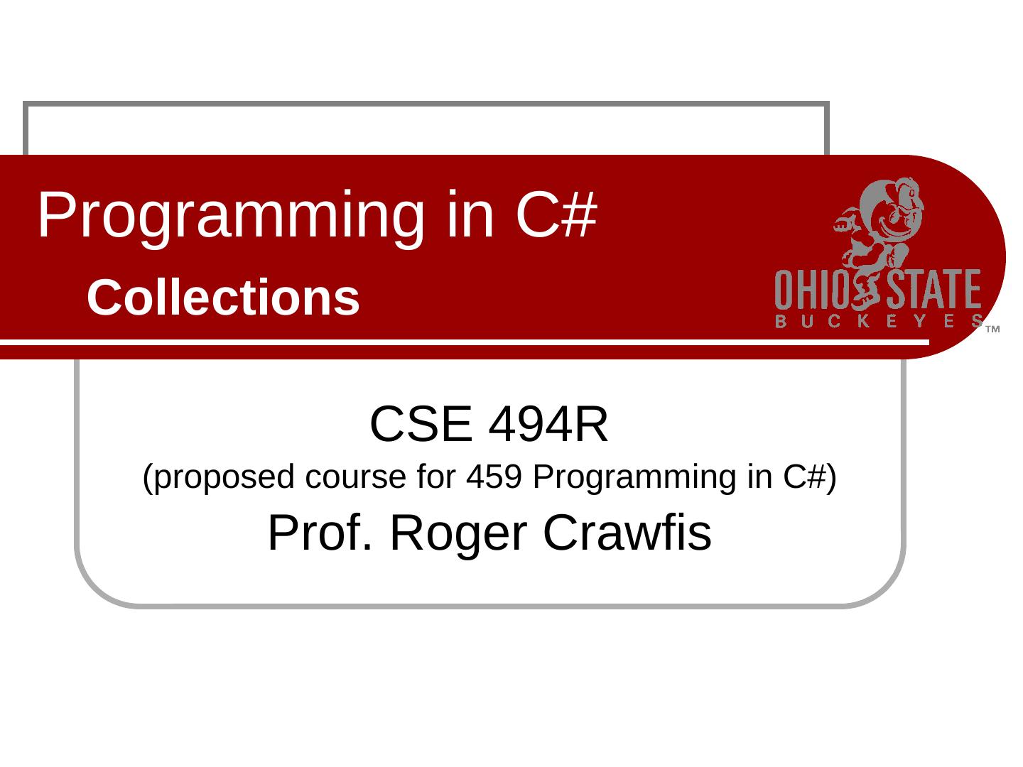 Programming in C# Collections. CSE 494R. (proposed course for 459 Programming in C#). Prof. Roger Crawfis. Collection Namespaces. The .NET framework ...