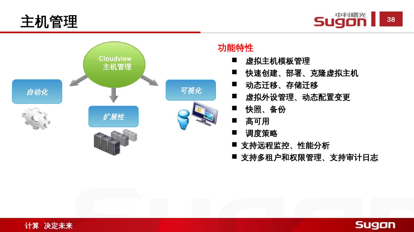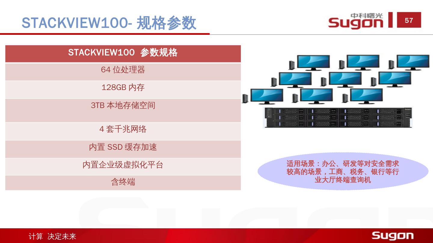 StackRack云柜,使用StackOne云控制器进行驱动,由TC5600提供丰富的CPU资源、 .... 网络规划; VPC支持; 存储系统管理与存储池化; 分布式块设备共享存储vDBS ... 价格低廉的云终端或BYOD设备就可以连接到数据中心中的Windows或者Linux ...