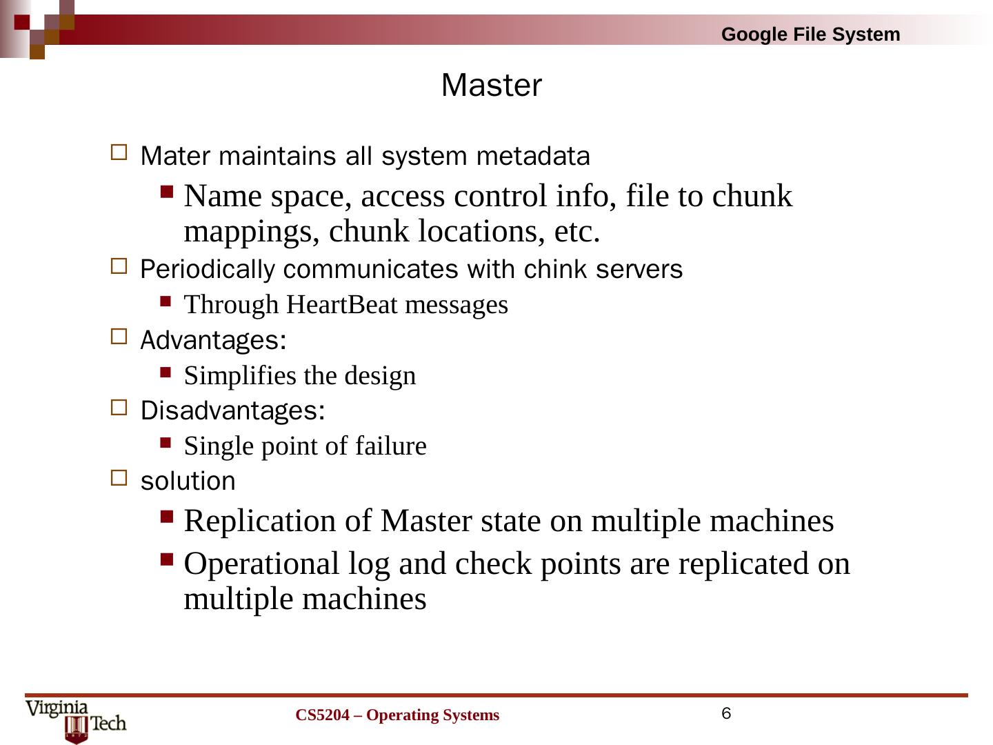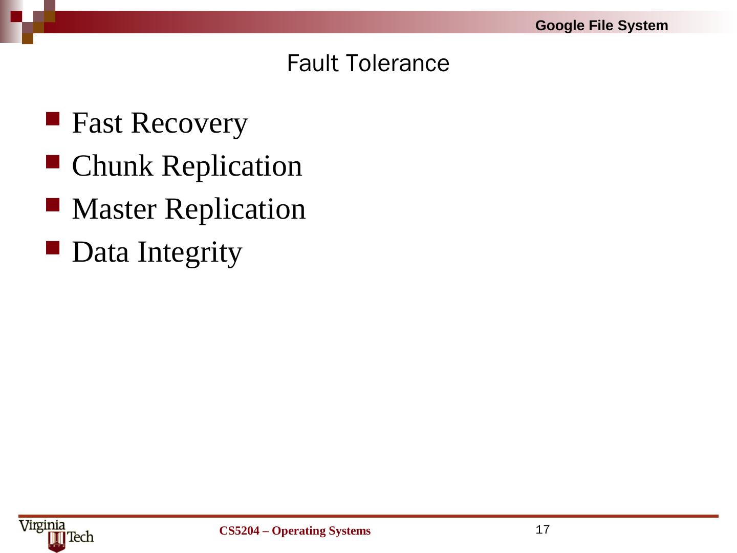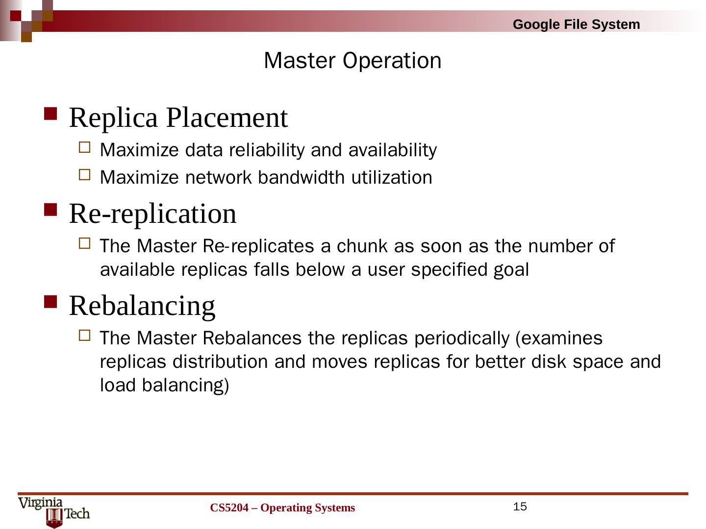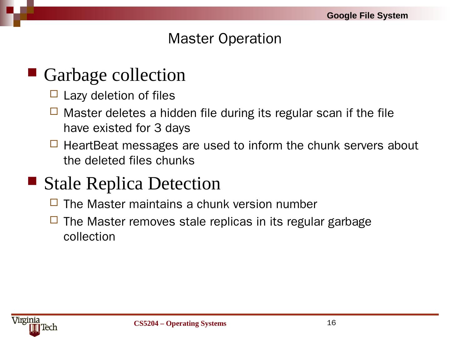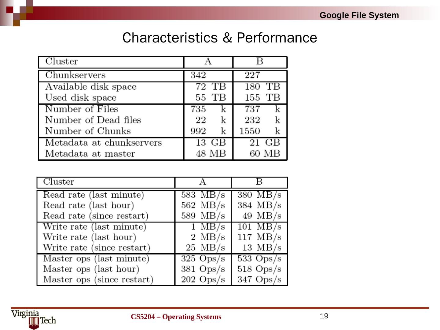 The Google File System. Authors : Sanjay Ghemawat, Howard Gobioff, Shun-Tak Leung. Presentation by: Vijay Kumar Chalasani. 1. CS5204 * Operating ...