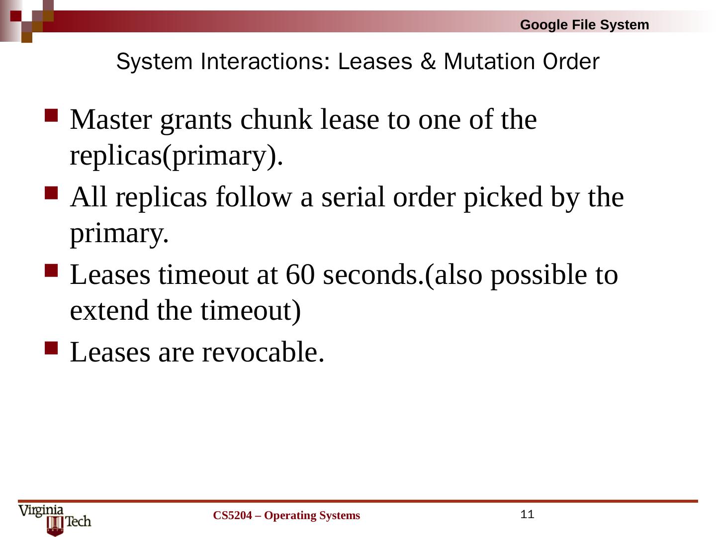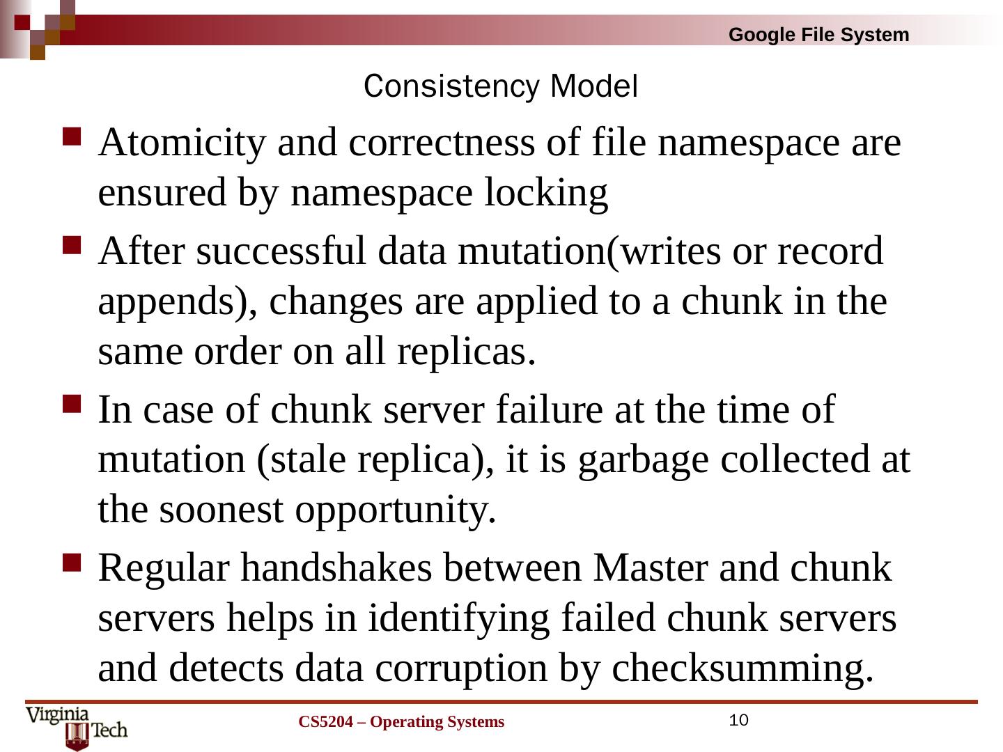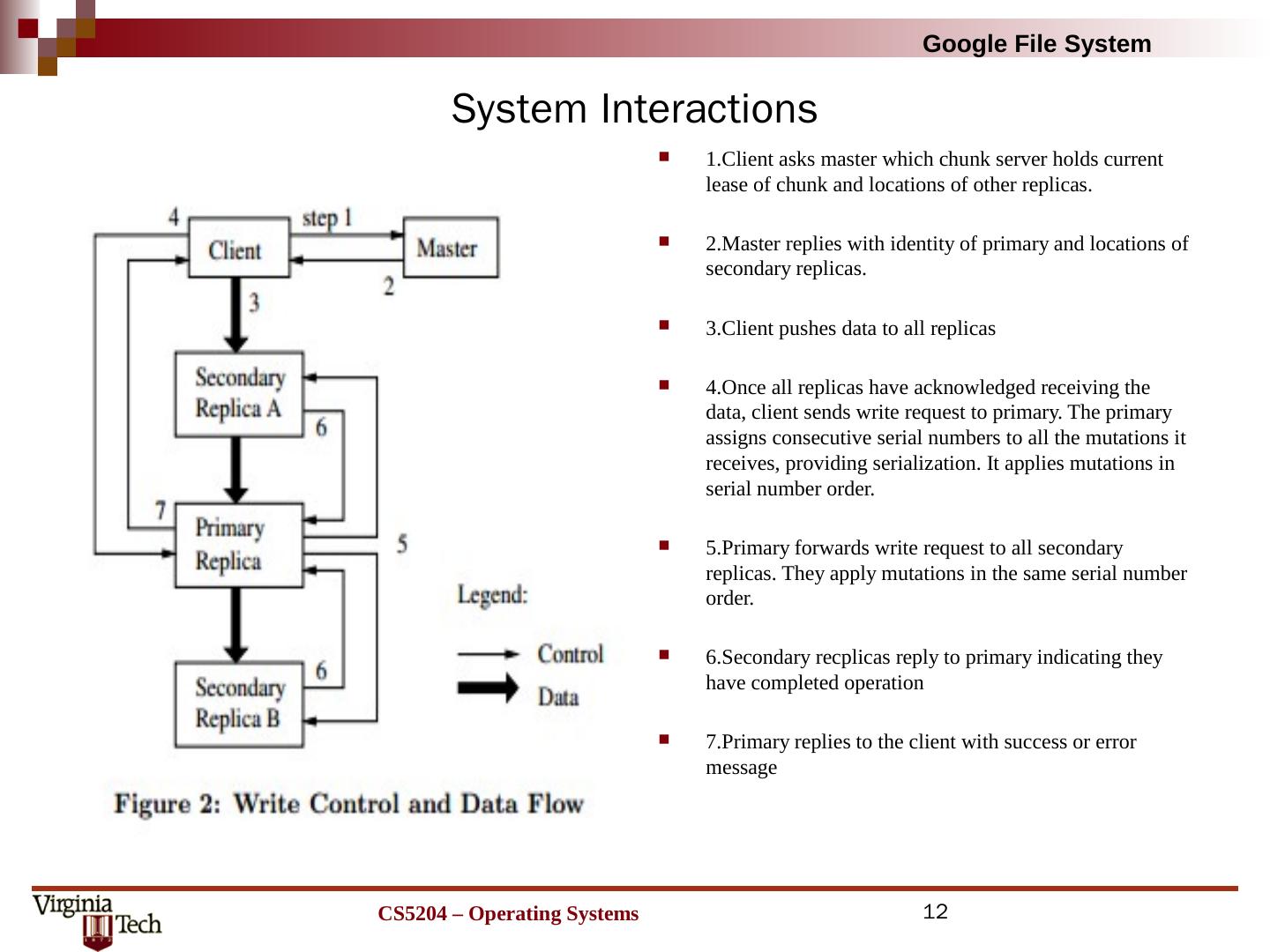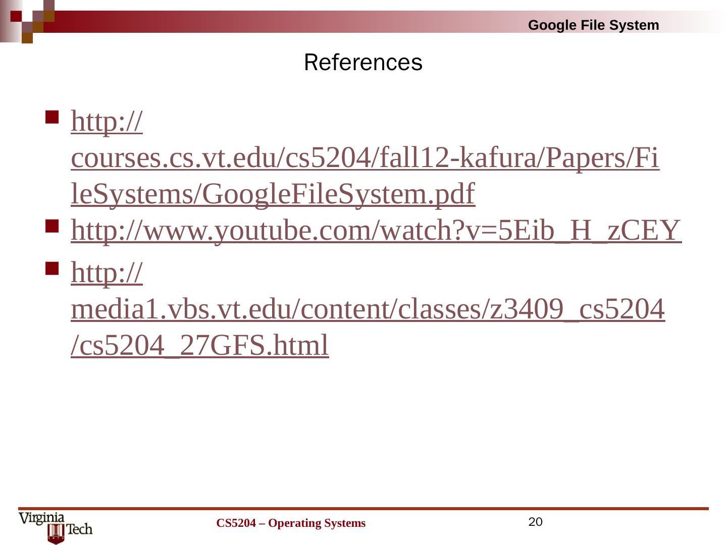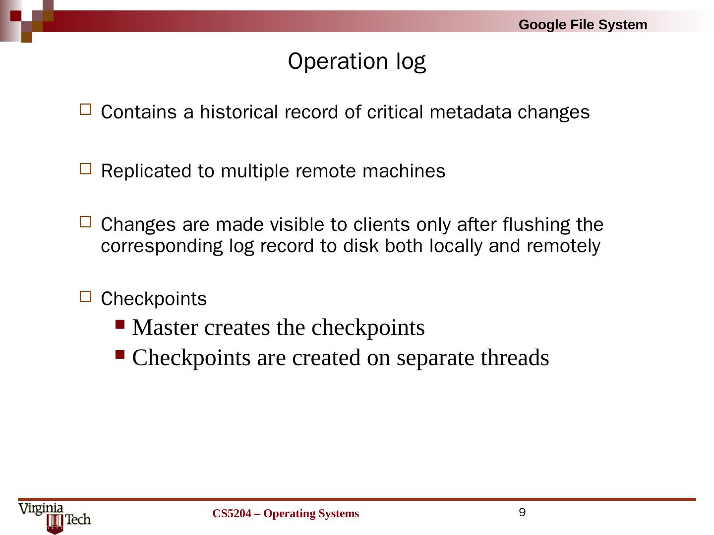 The Google File System. Authors : Sanjay Ghemawat, Howard Gobioff, Shun-Tak Leung. Presentation by: Vijay Kumar Chalasani. 1. CS5204 * Operating ...