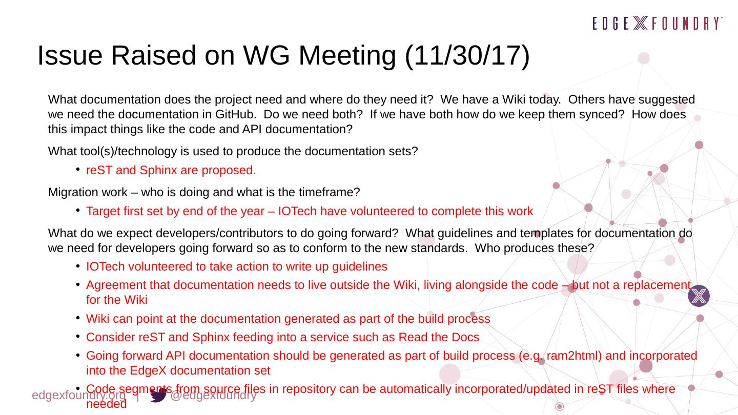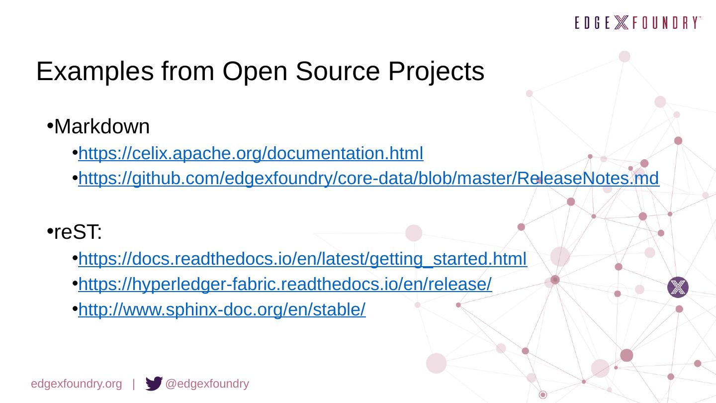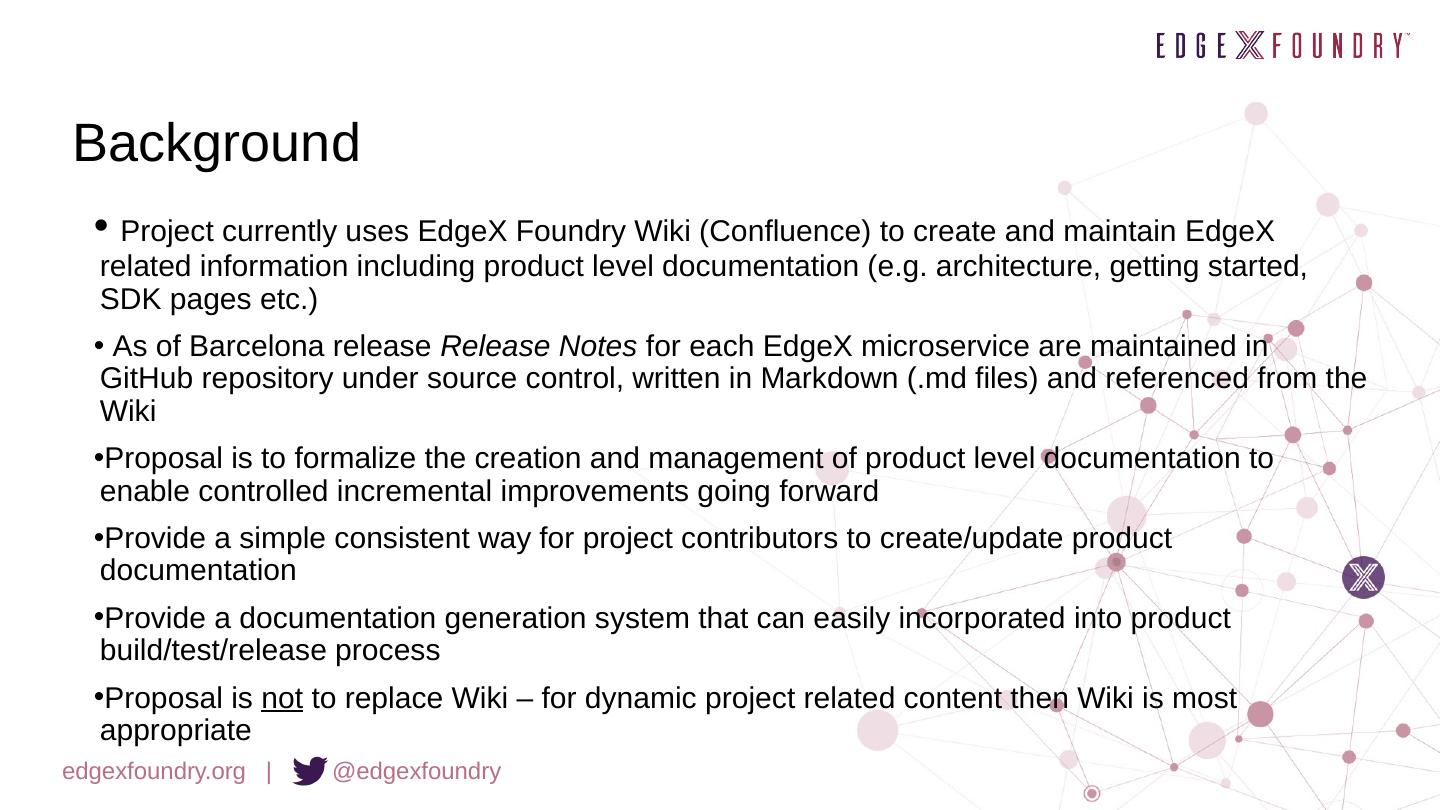 As of Barcelona release Release Notes for each EdgeX microservice are maintained in GitHub repository under source control, written in Markdown (.md files) ...