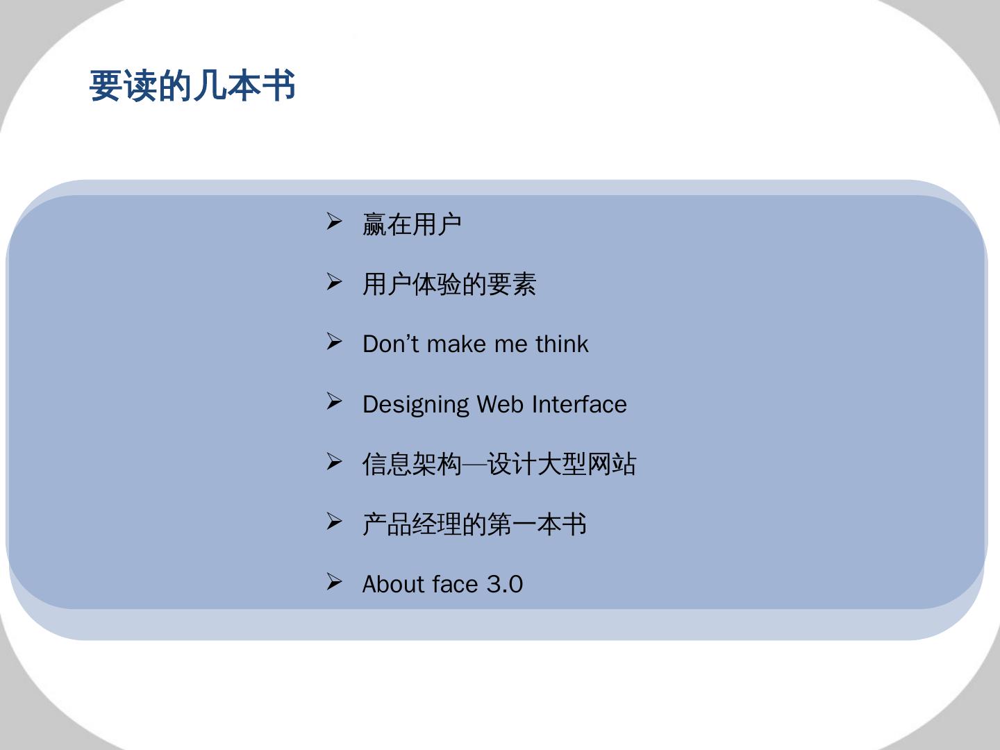 信息架构—设计大型网站. 产品经理的第一本书. About face 3.0. 第二部分 产品调研. 本部分主要分享产品的战略定位、竞争对手分析、. 用户调研、商业模式。 做产品要 ...