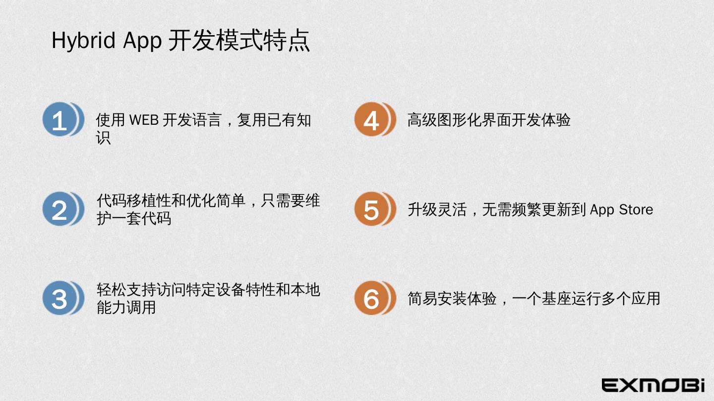 HTML5+CSS3+JS. UIXML引擎. XHTML+CSS+JS. 原生插件引擎. Object-C/JAVA/C#. JavaScript. JavaScript. Web View. Native View. 独创的客户端跨平台能力. 4.