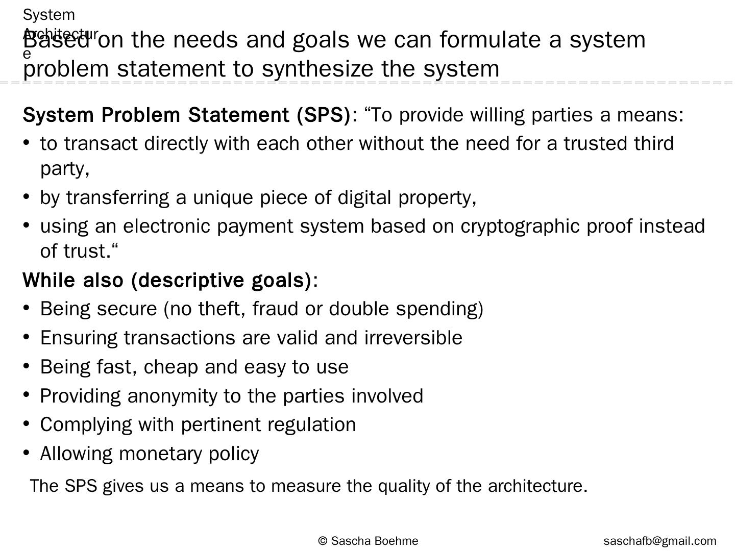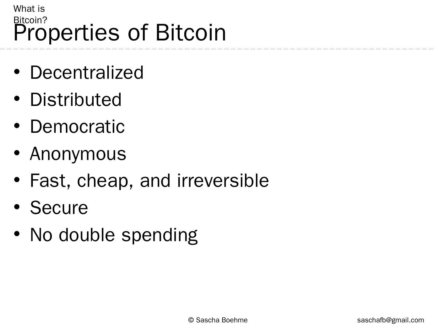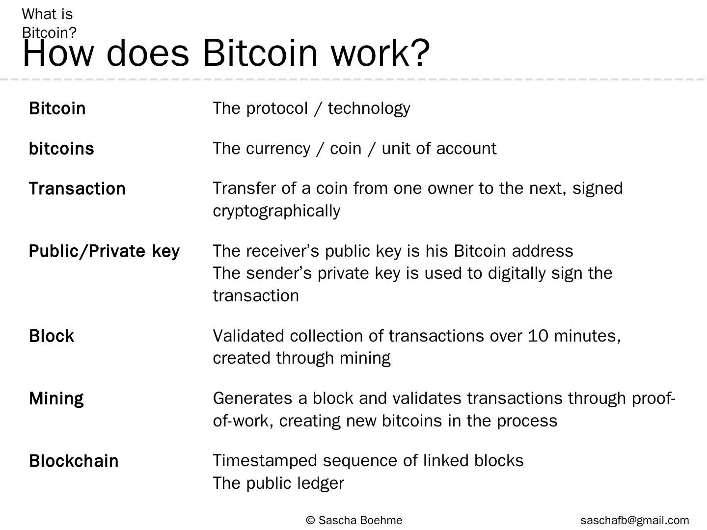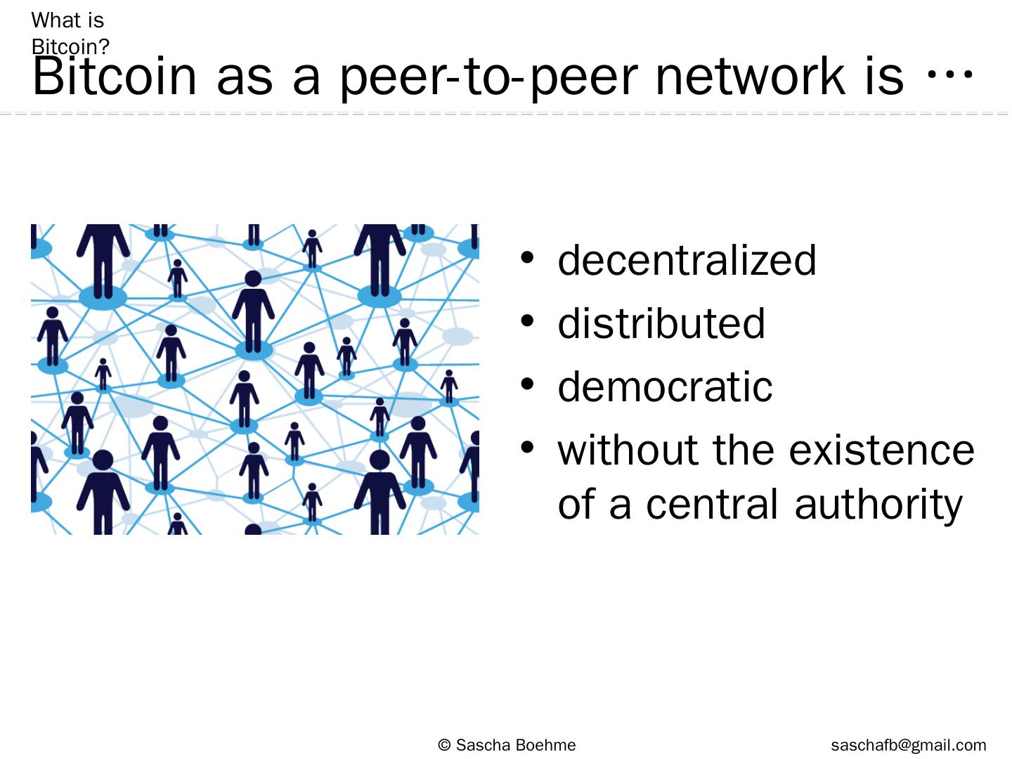 decentralized; distributed; democratic; without the existence of a ... Mining, Generates a block and validates transactions through proof-of-work, ...