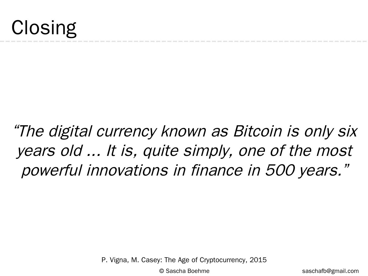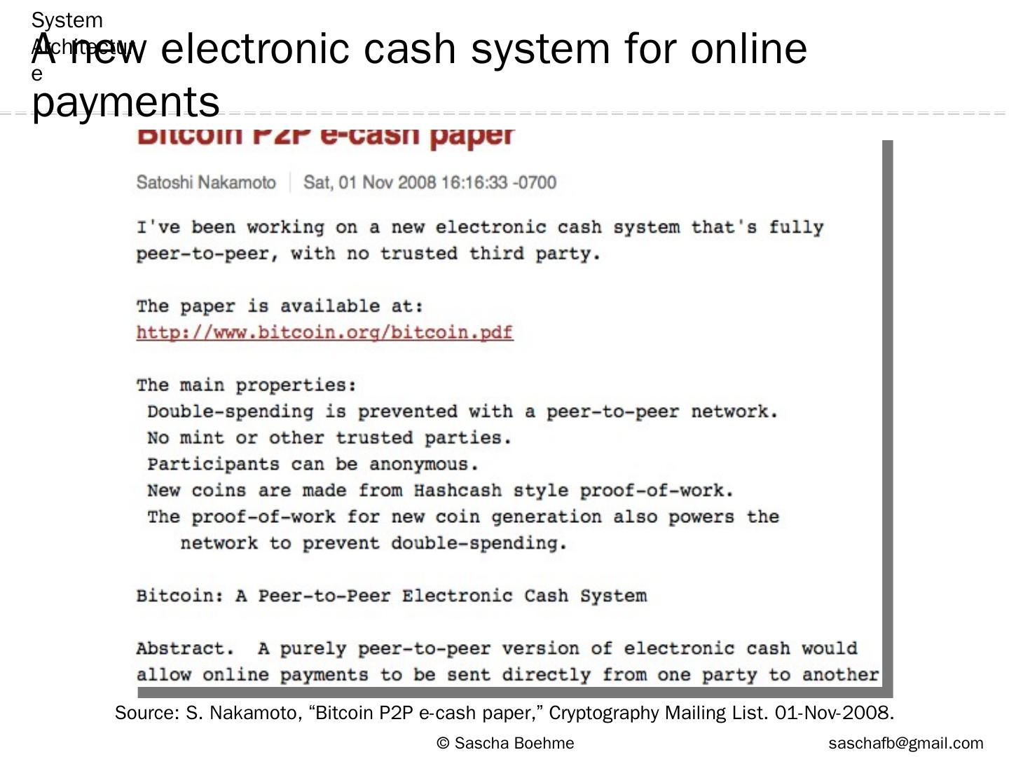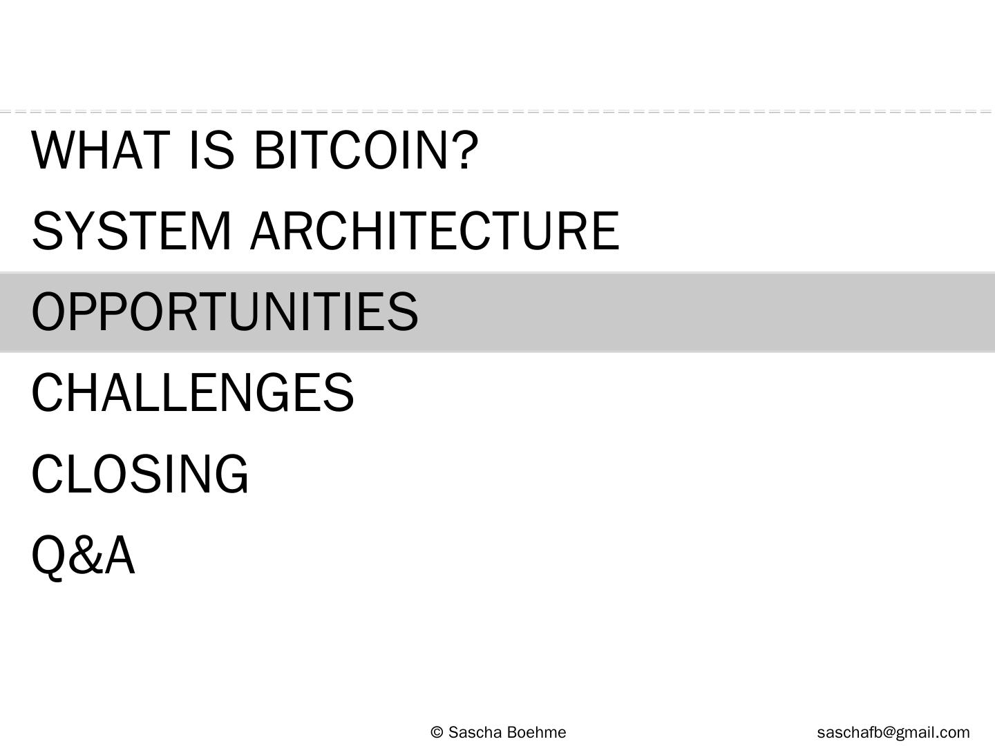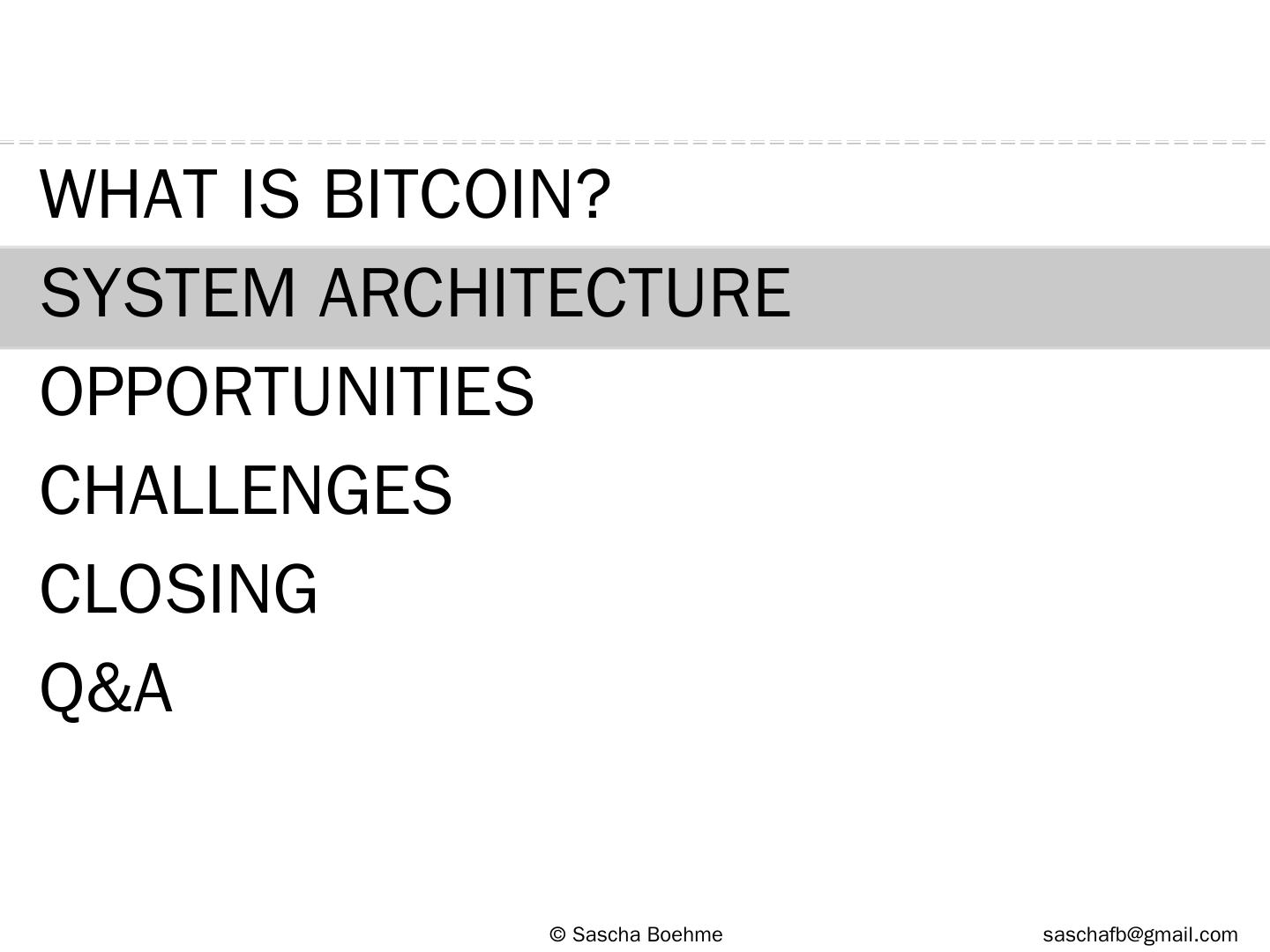 decentralized; distributed; democratic; without the existence of a ... Mining, Generates a block and validates transactions through proof-of-work, ...