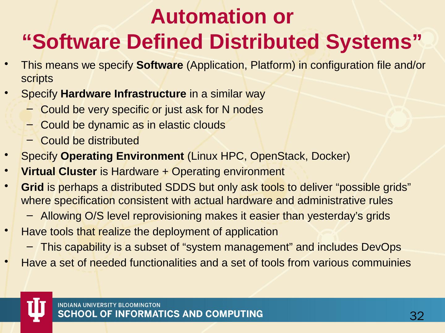 Specify Operating Environment (Linux HPC, OpenStack, Docker); Virtual Cluster is Hardware + Operating environment; Grid is perhaps a distributed SDDS but ...