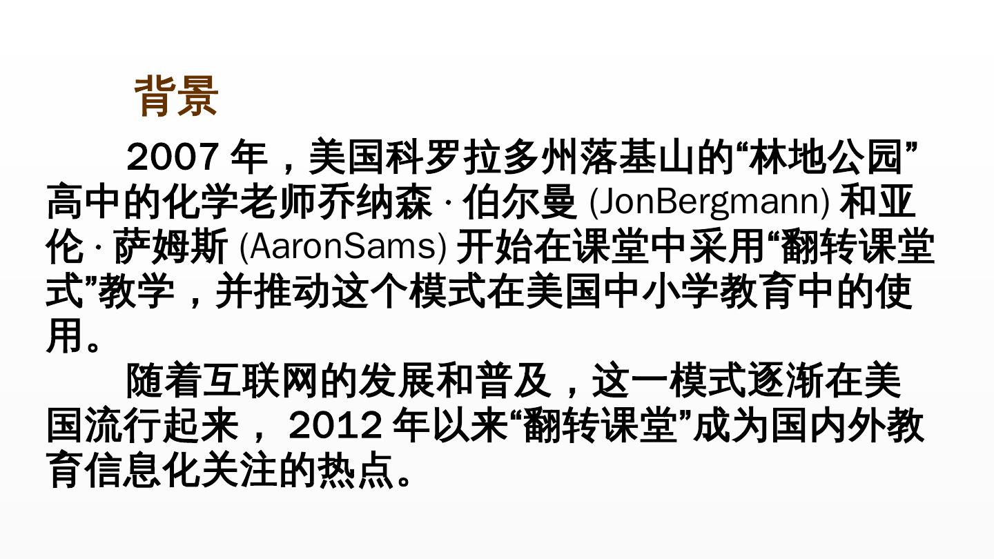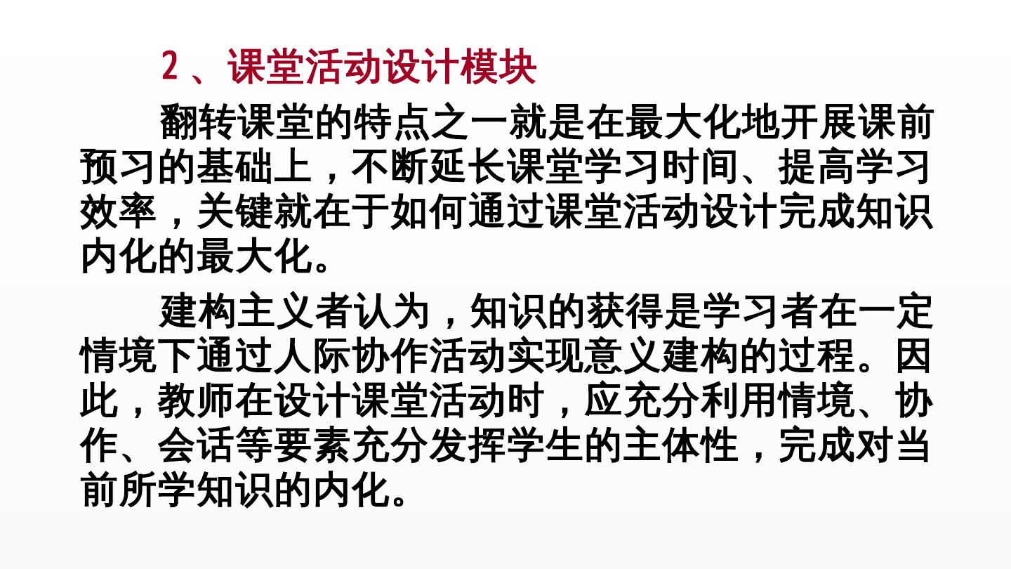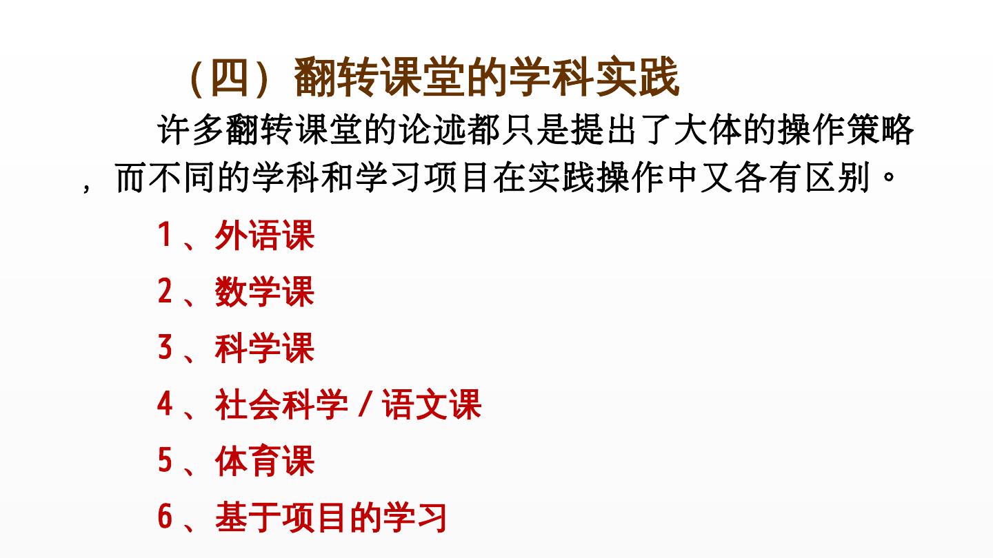 一个好的教师总能与学生建立良好的关系。 ... 要求学生能选择探究课题和研究方式;通过小组观察、记录、数据分析等手段从事意义建构;学会平等讨论问题,发展交往能力;在思想 ... 随着翻转课堂的实践者越来越多,一些有特色典型范式浮出水面。