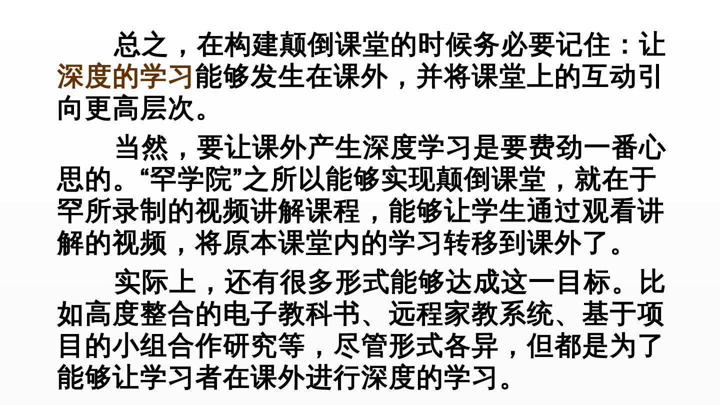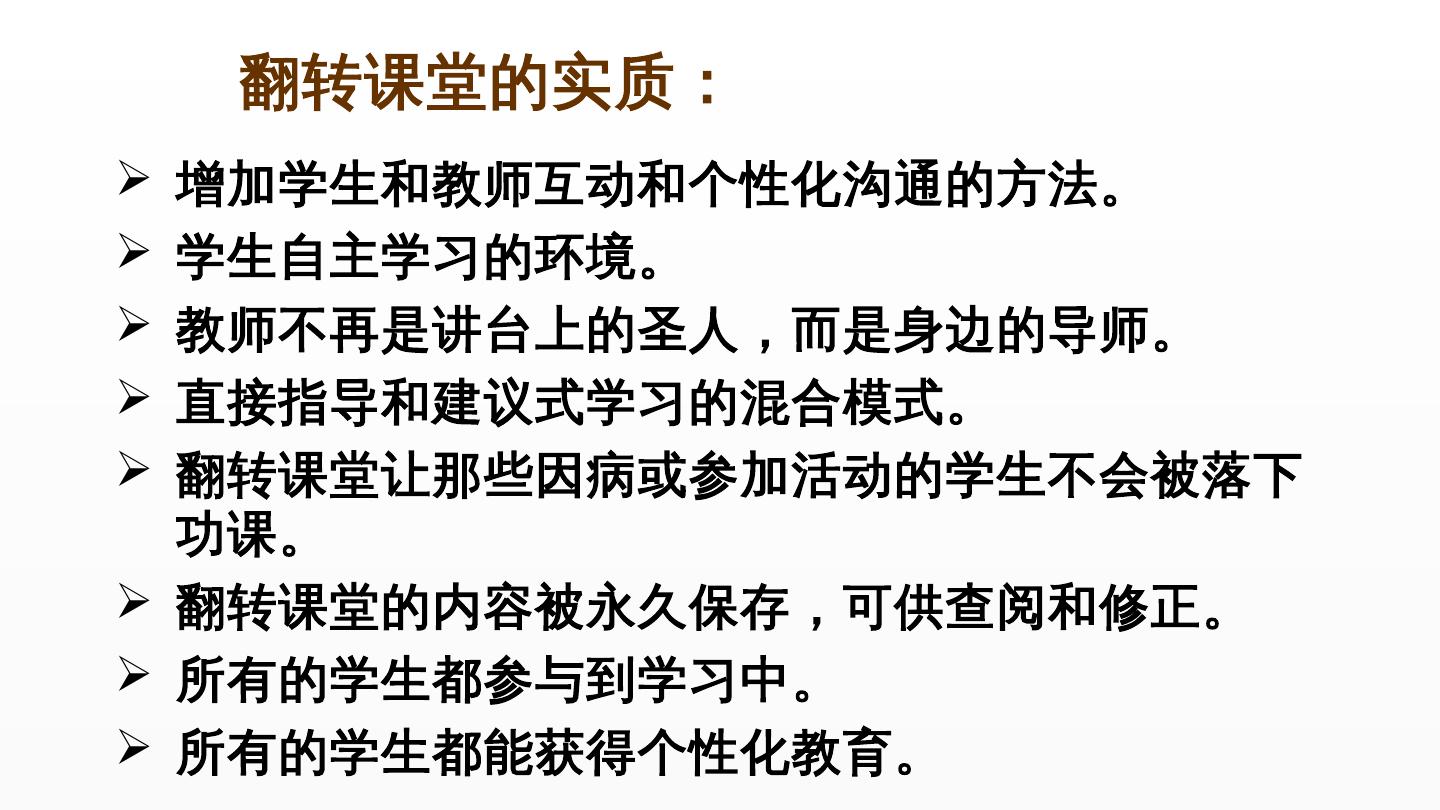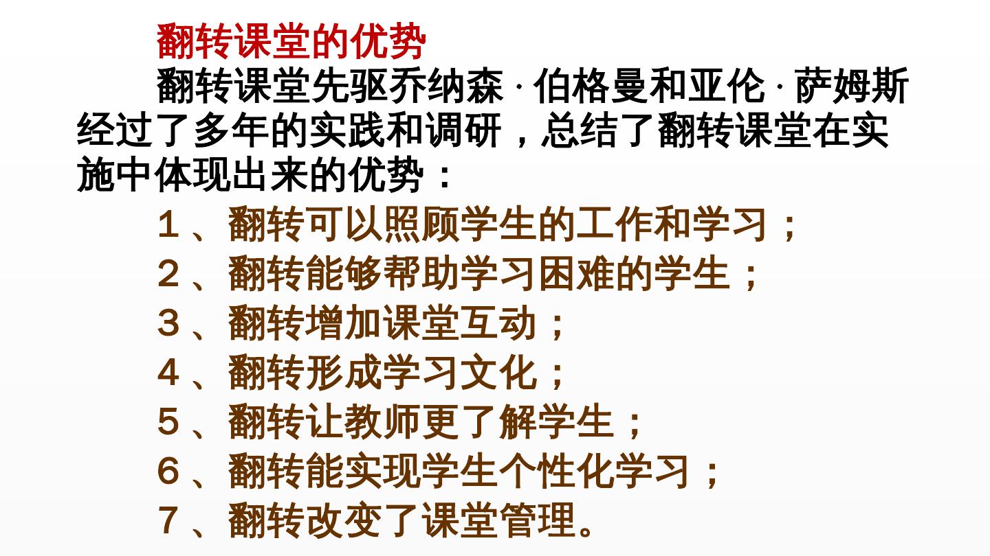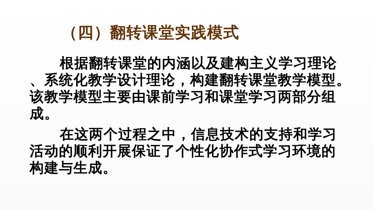 一个好的教师总能与学生建立良好的关系。 ... 要求学生能选择探究课题和研究方式;通过小组观察、记录、数据分析等手段从事意义建构;学会平等讨论问题,发展交往能力;在思想 ... 随着翻转课堂的实践者越来越多,一些有特色典型范式浮出水面。