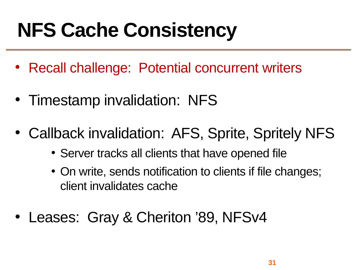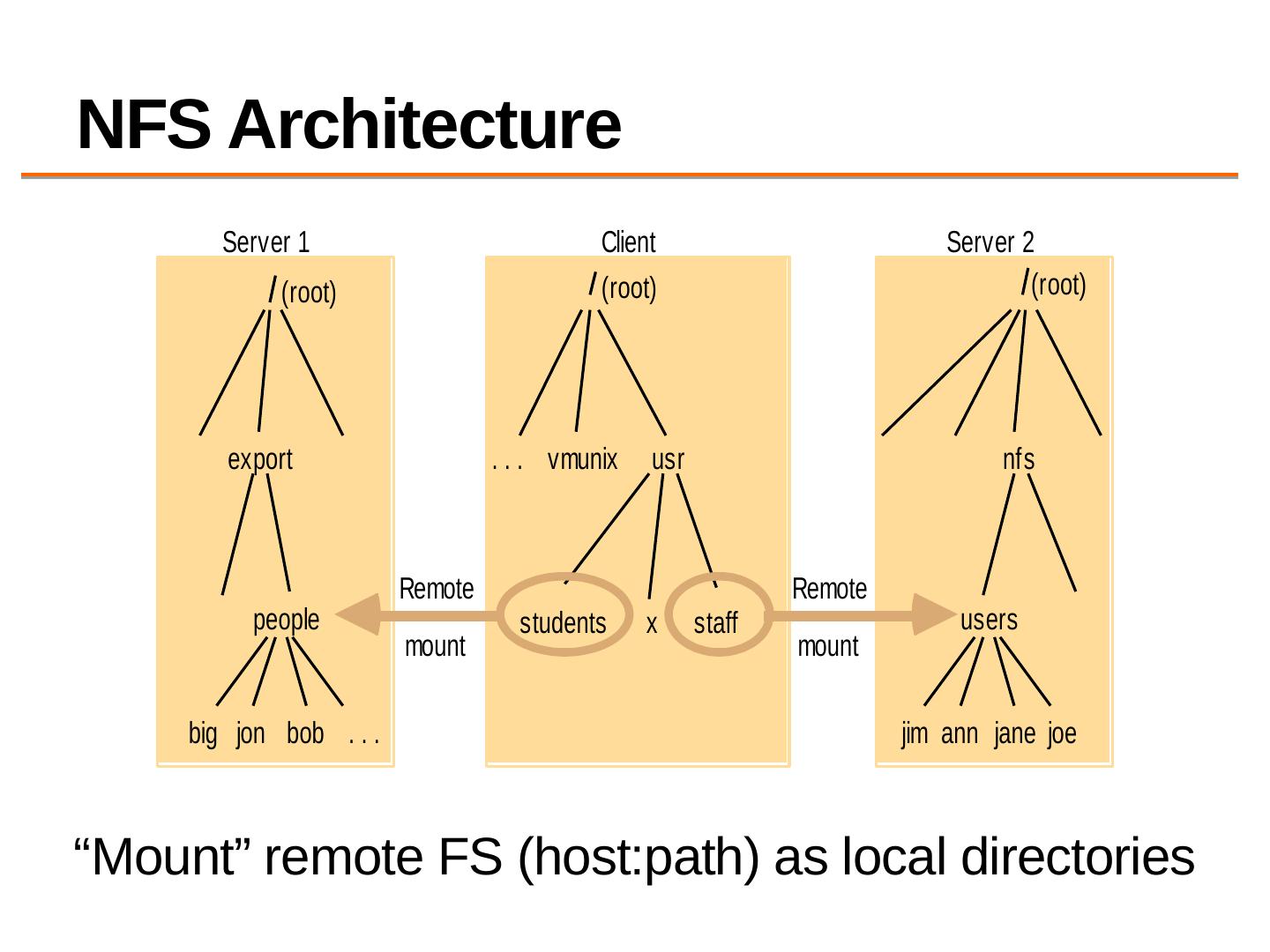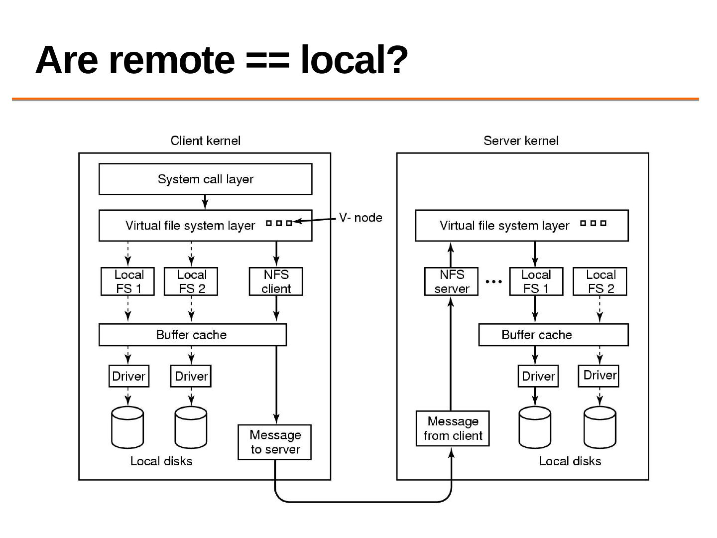 Make a remote file system look local; Today: NFS (Network File System). Developed ... Virtual File System enables transparency .... Google File System (GFS). 39.