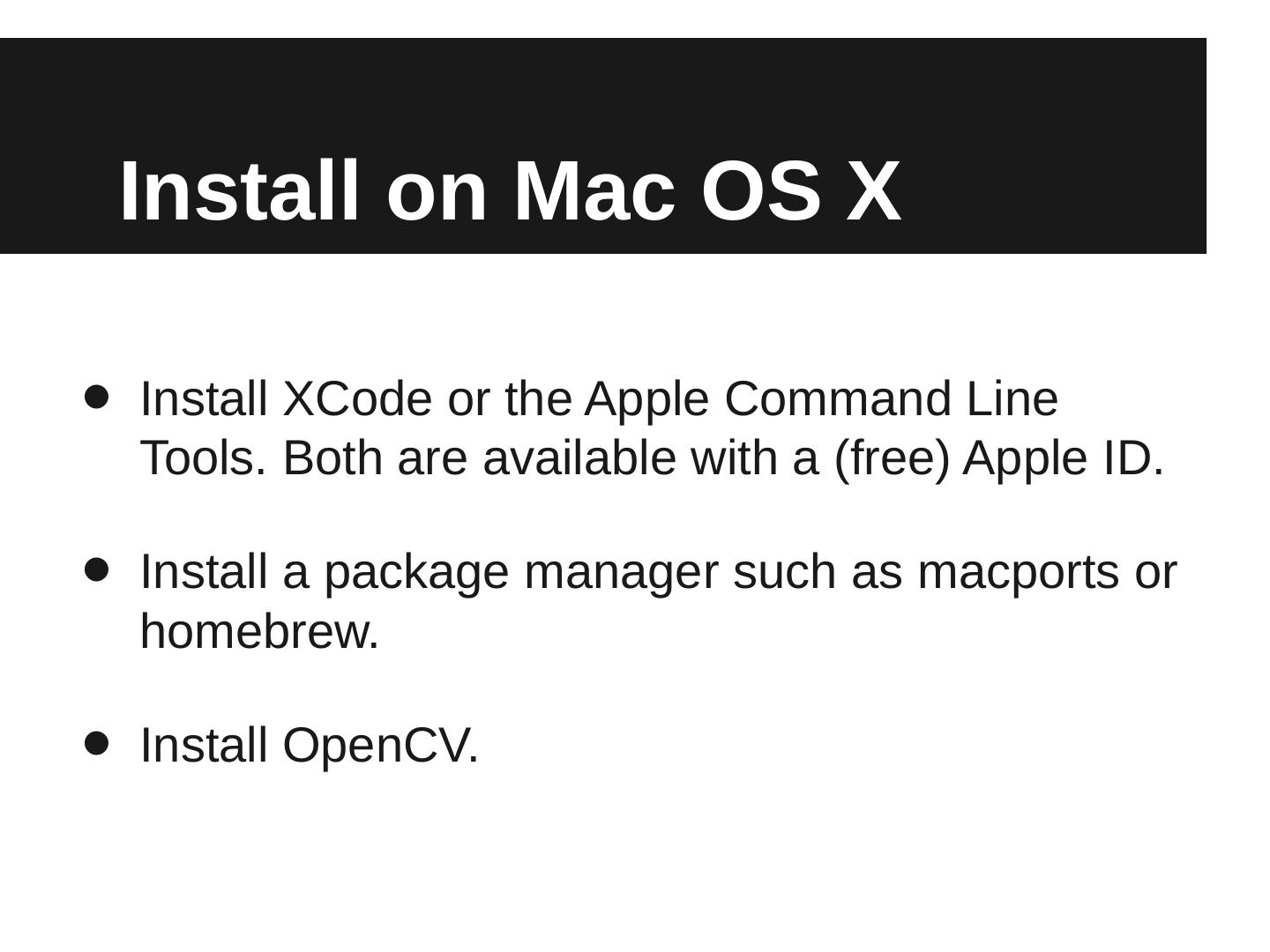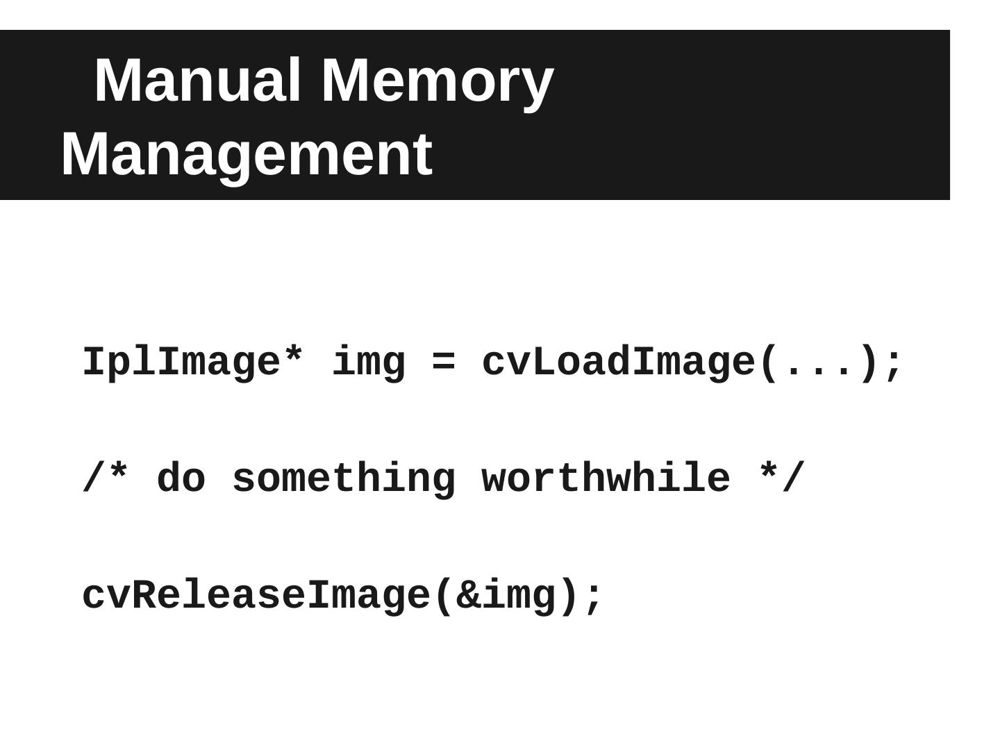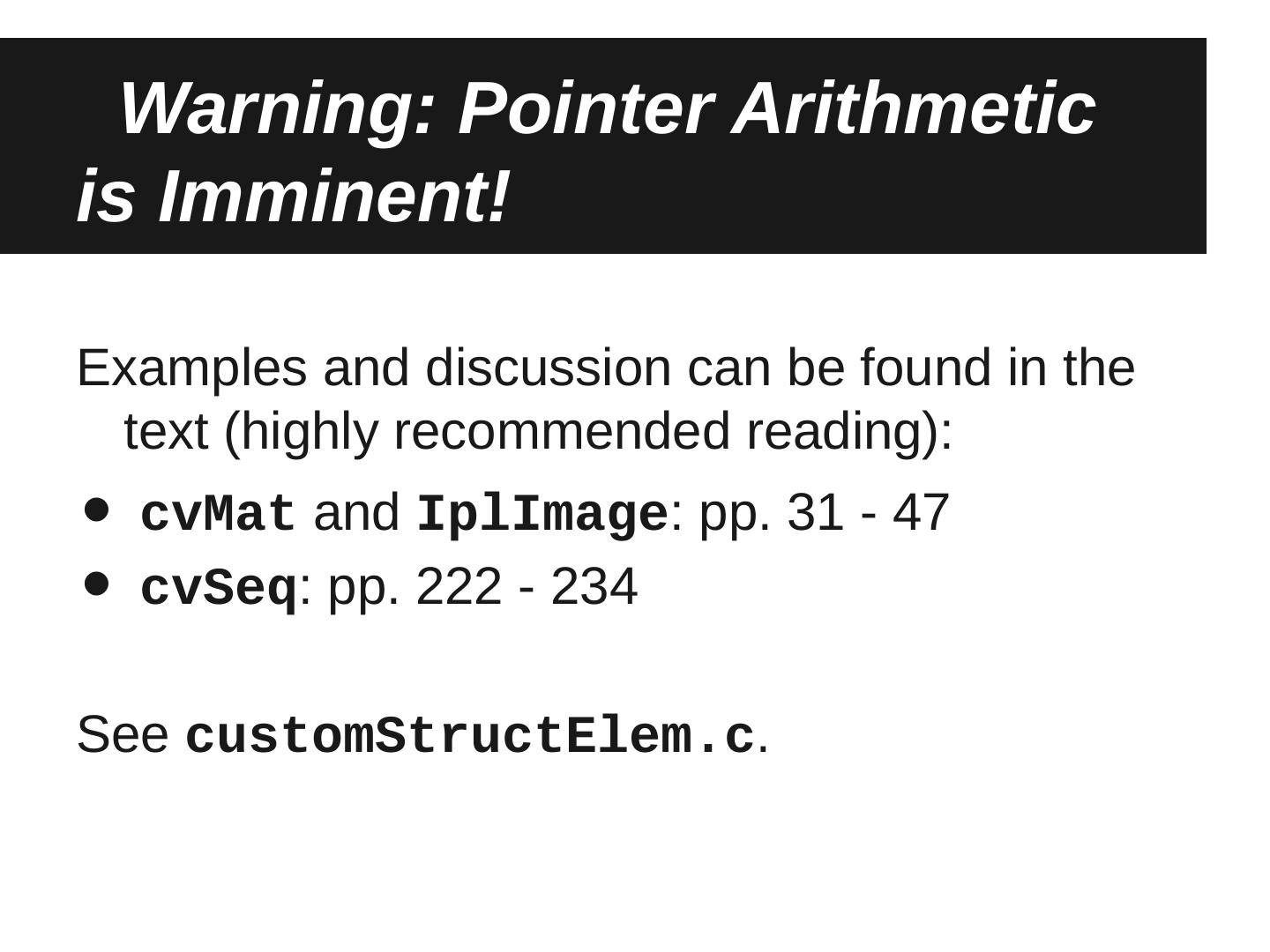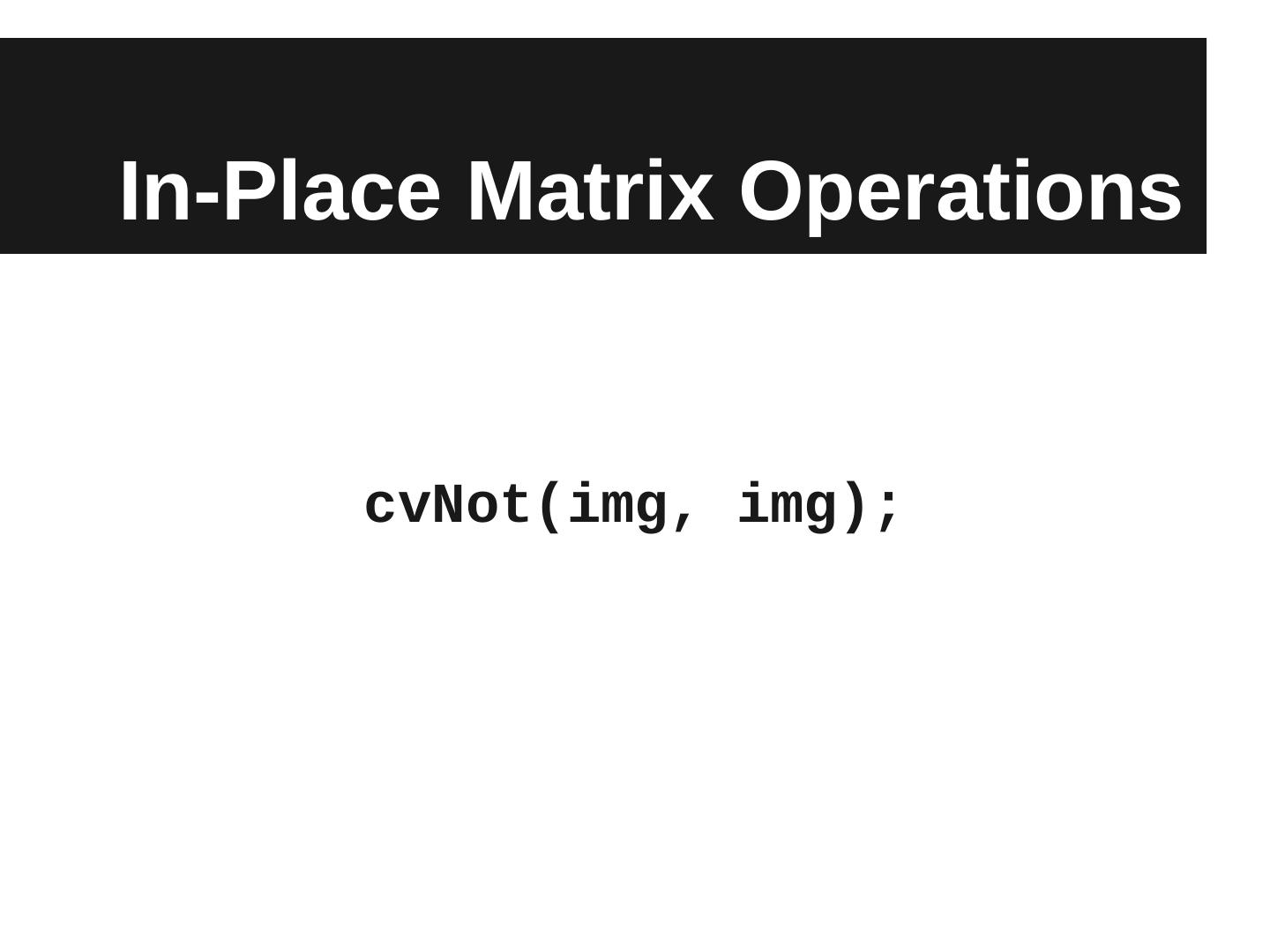 OpenCV API. A Quick Introduction to the C Interface. By David Johnston. Warning: API Version 1.x. Primary OpenCV Interfaces. The 1.x API is based on C.