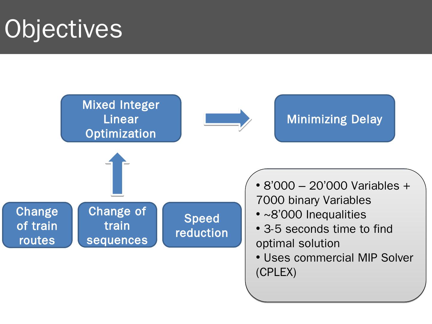 16 .Objectives Mixed Integer Linear Minimizing Delay Optimization Change Change of Speed of train train reduction routes sequences