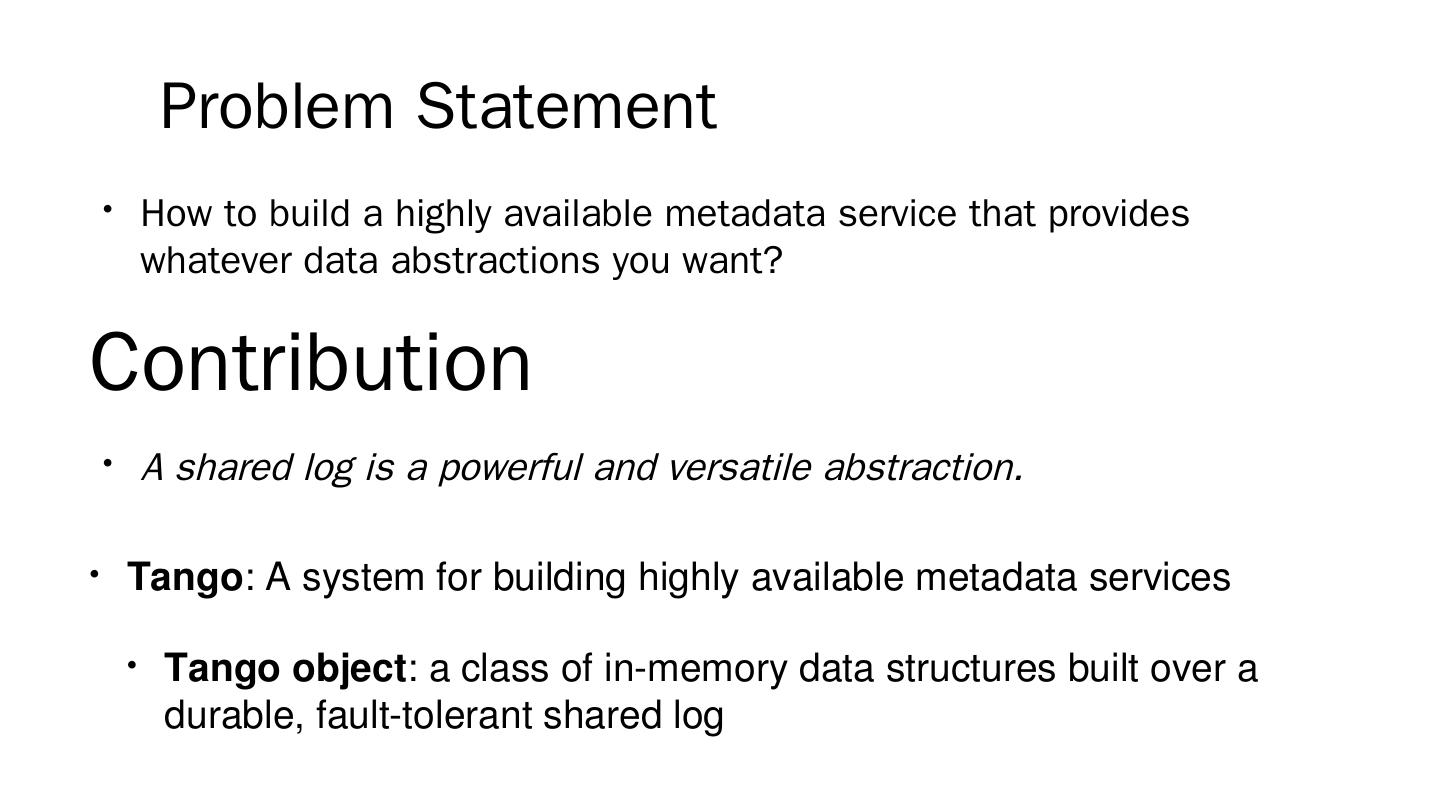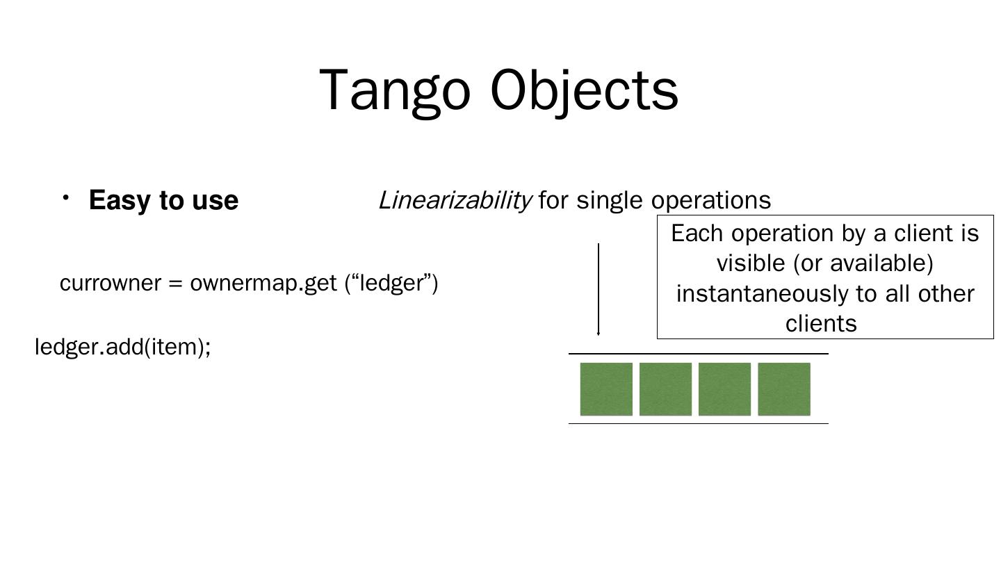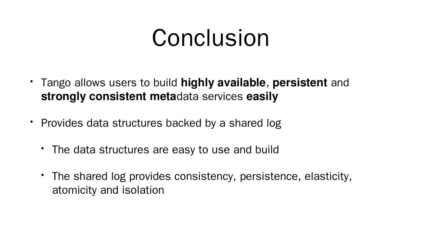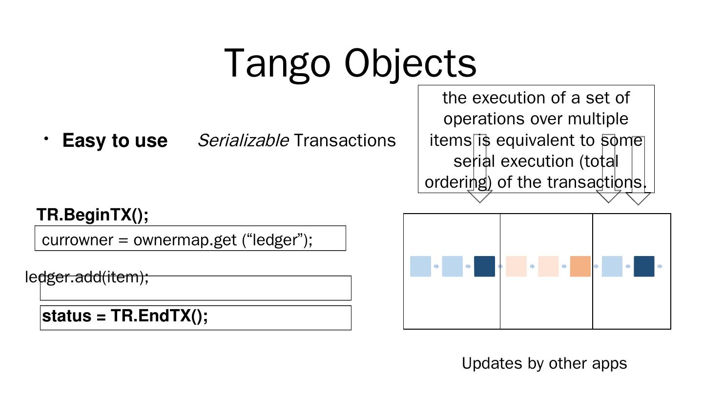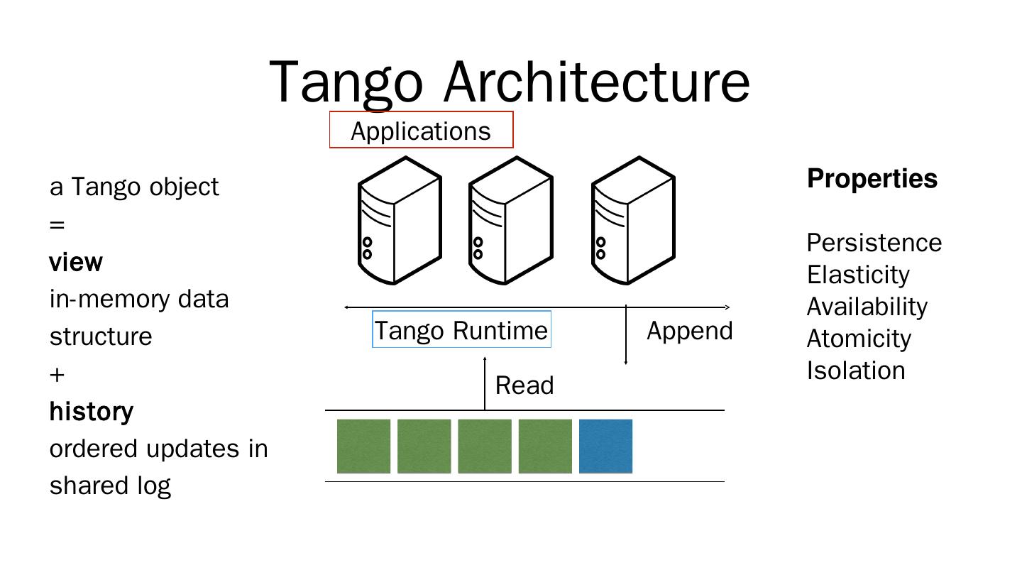 Tango: Distributed Data Structures over a Shared Log. Mahesh Balakrishnan, Dahlia Malkhi, Ted Wobber, Ming Wu, Vijayan Prabhakaran Michael Wei, John D.
