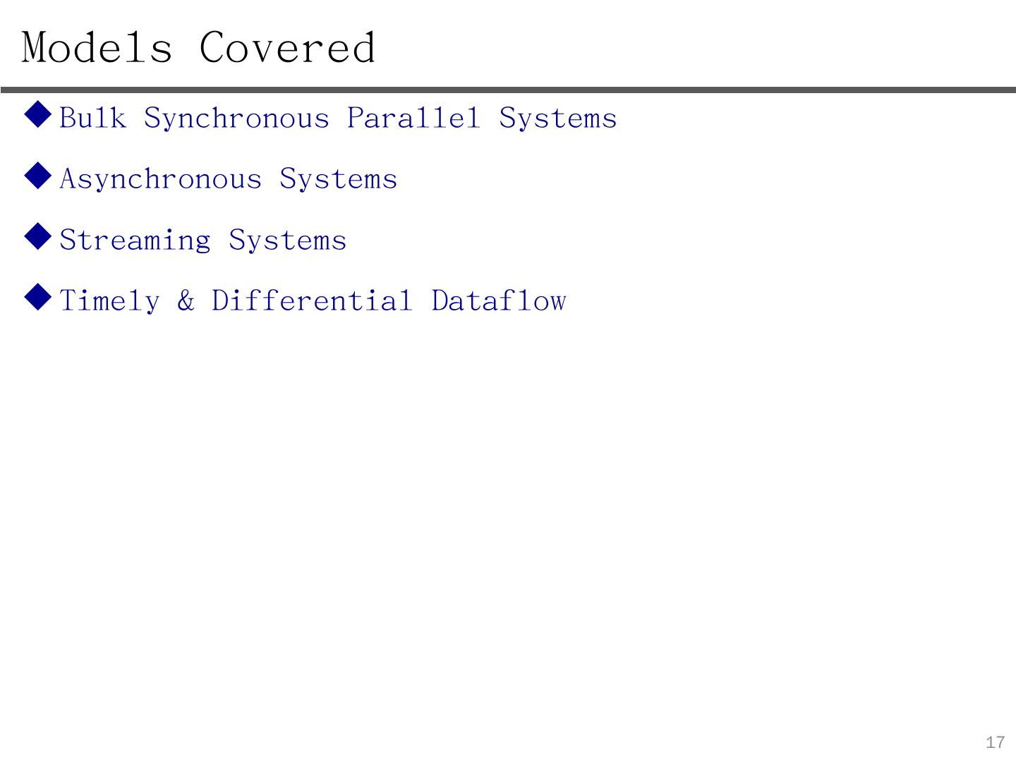 Dryad. Naiad. Stanford GPS. Pregel. Models. Of Computation. Data. Privacy & Security .... logInfo(s"Running Spark version ${org.apache.spark.