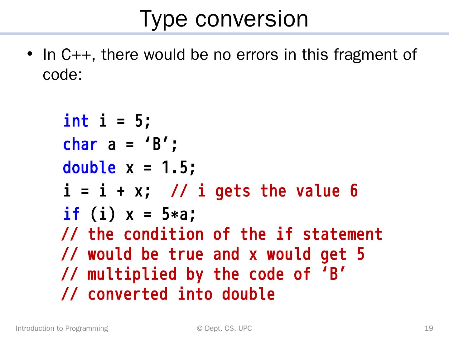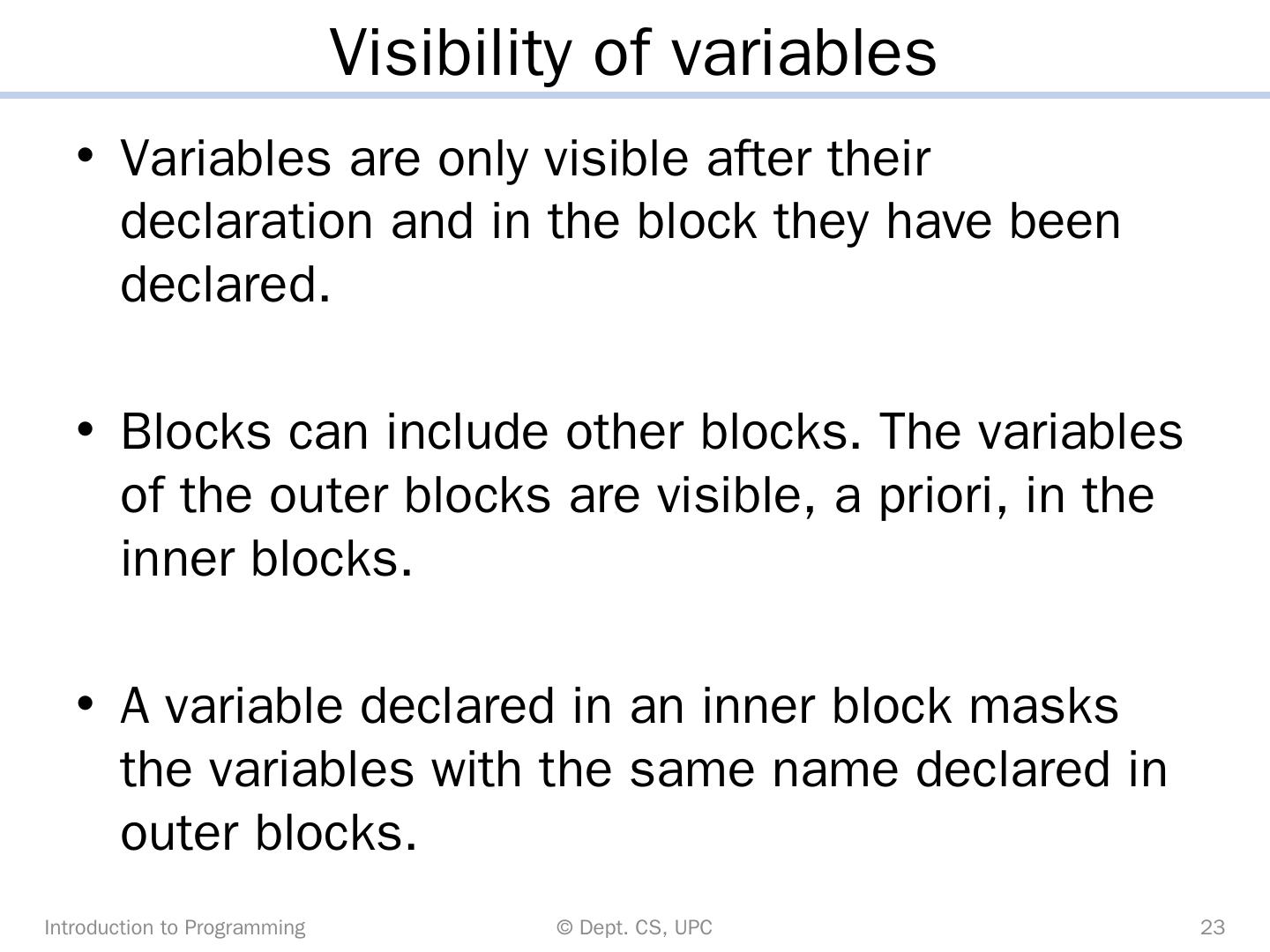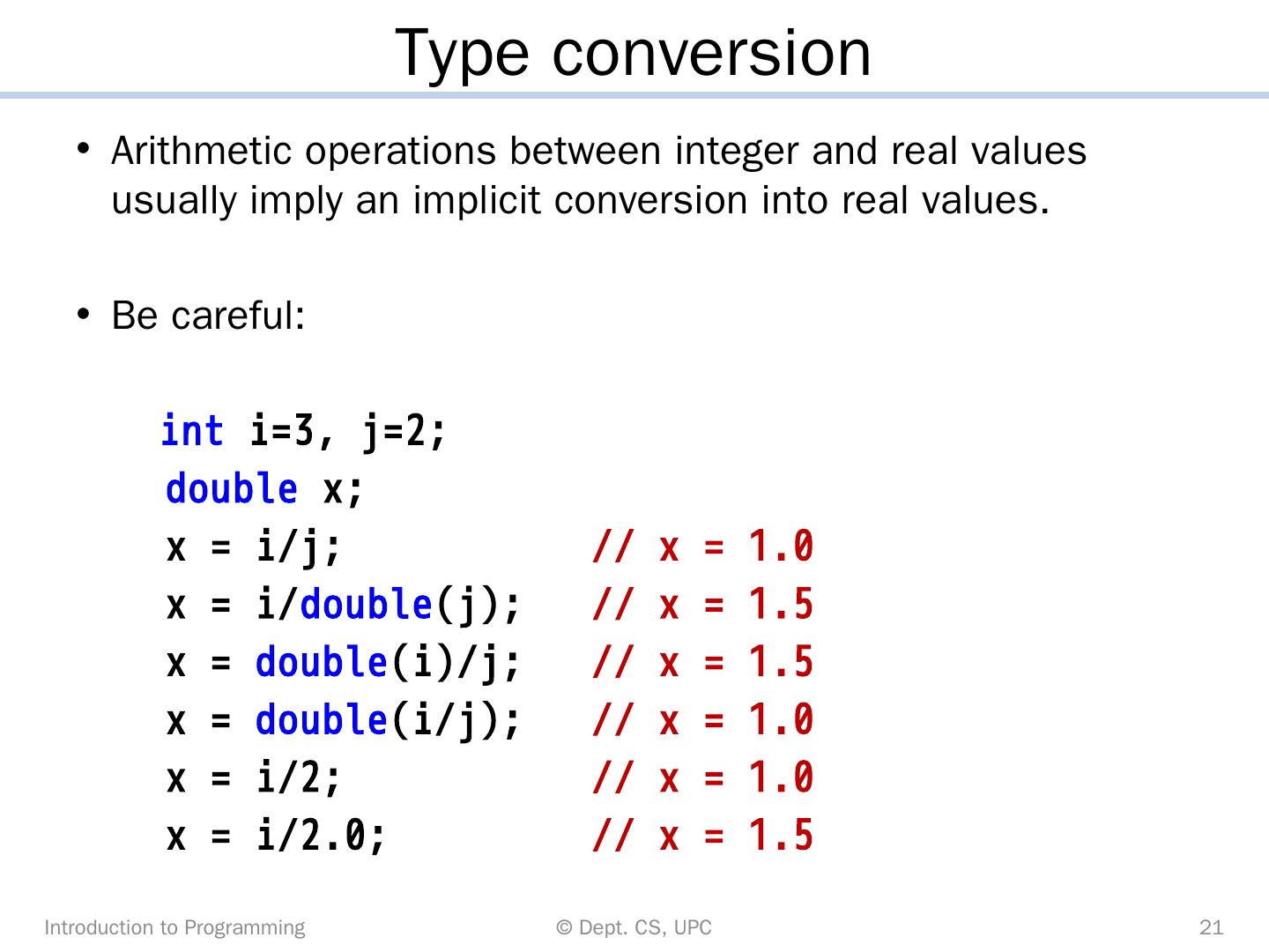 Introduction to Programming (in C++). Data types and visibility. Jordi Cortadella, Ricard Gavaldà, Fernando Orejas ... Basic data types in C++ (int). Integer (int).