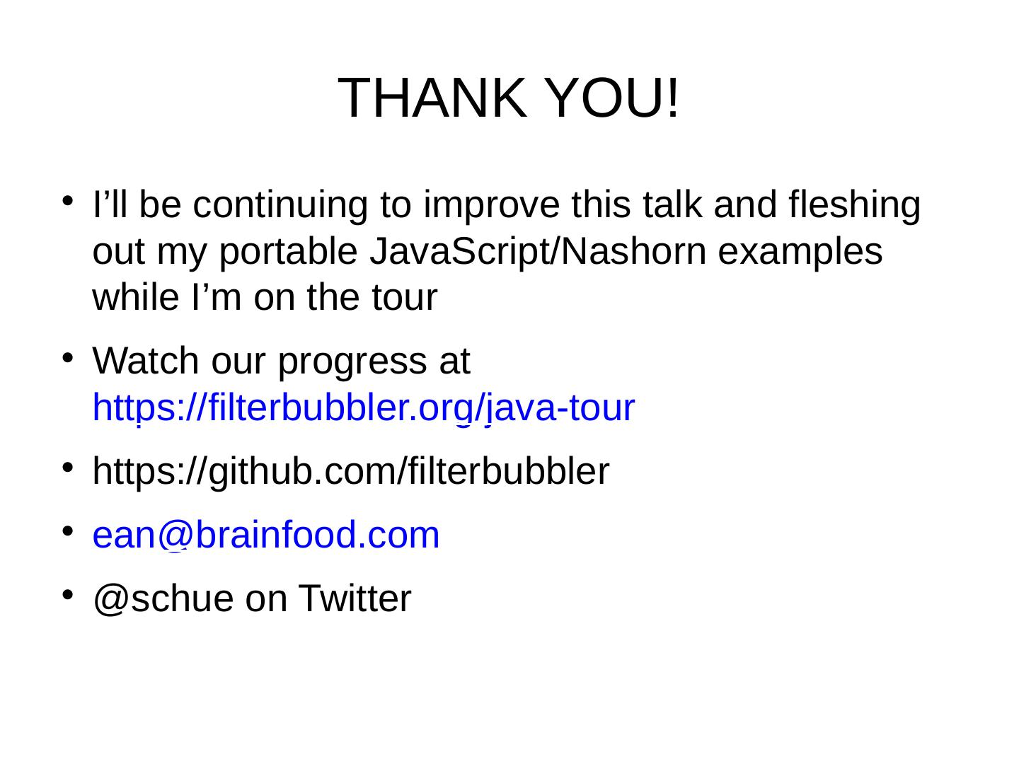 An introduction to WebExtensions; “Isomorphic applications” and Java's Nashorn; JavaScript frameworks like ReactJS and VueJS; The FilterBubbler ...