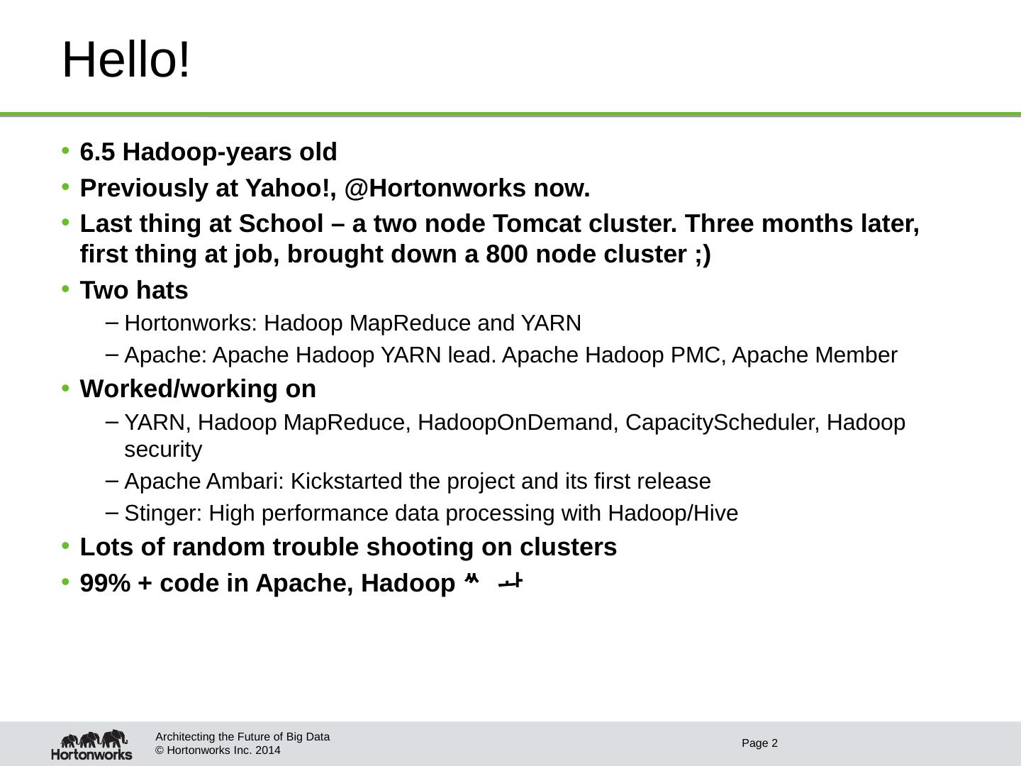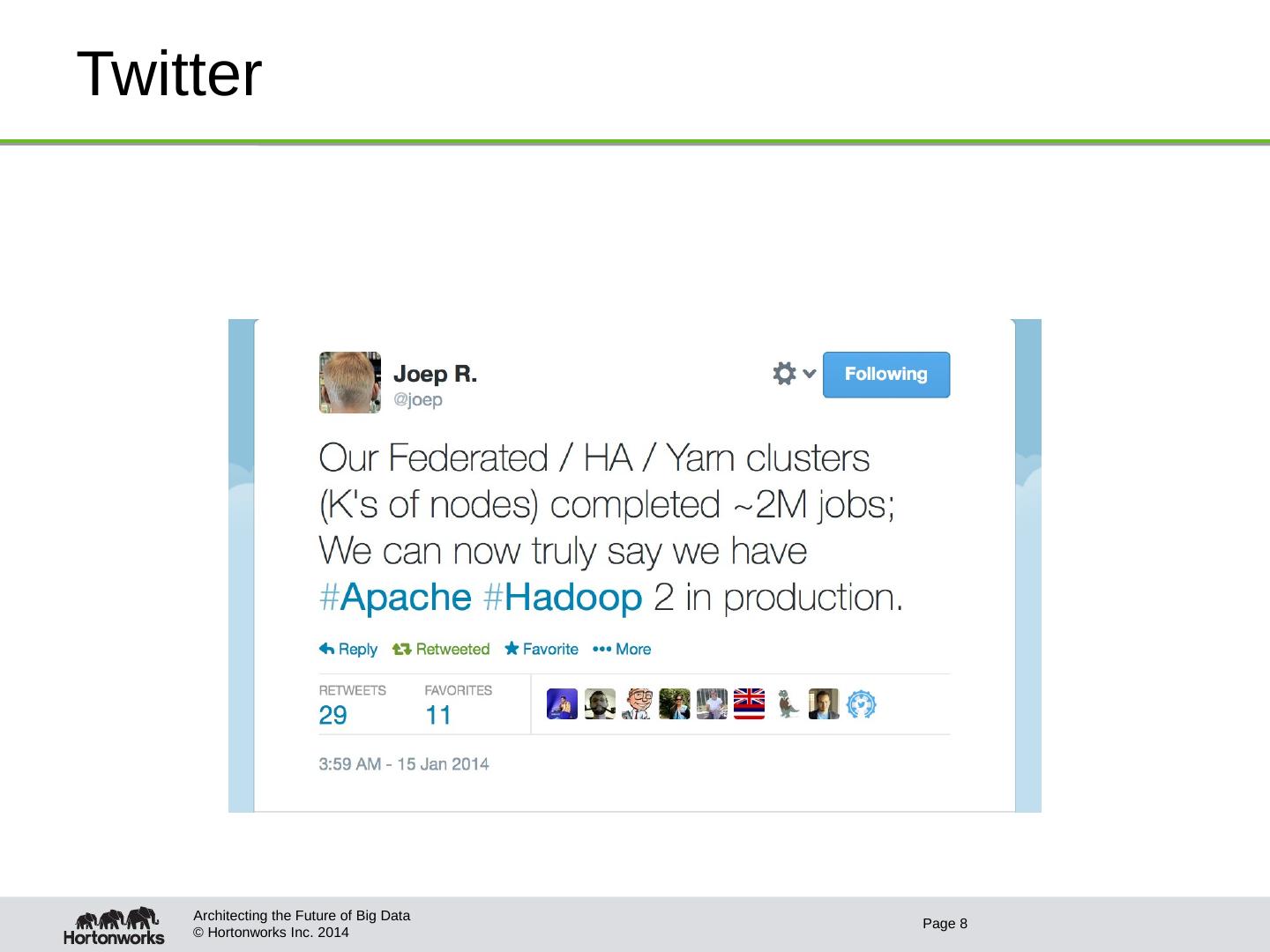 Hortonworks: Hadoop MapReduce and YARN; Apache: Apache Hadoop ... Apache Hadoop PMC, Apache Member ..... Apache Samza – Stream Processing.
