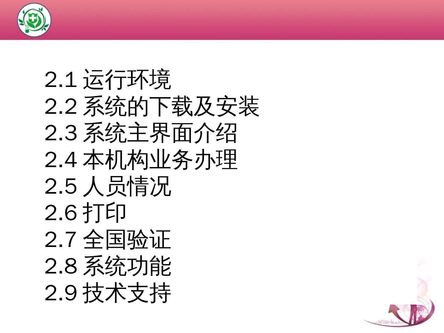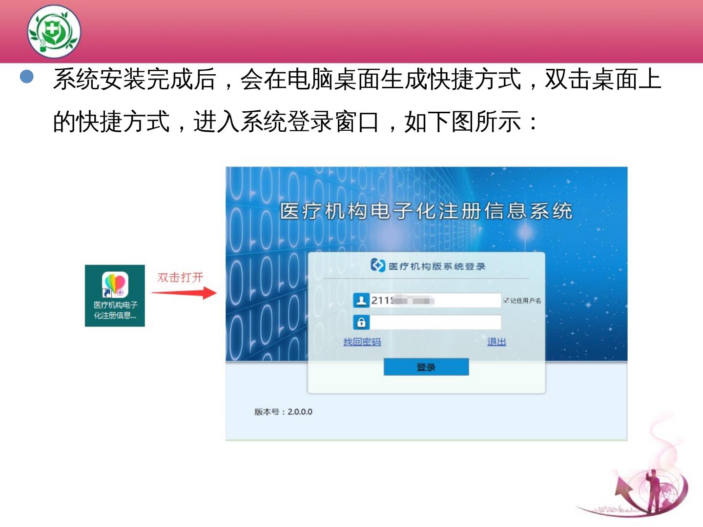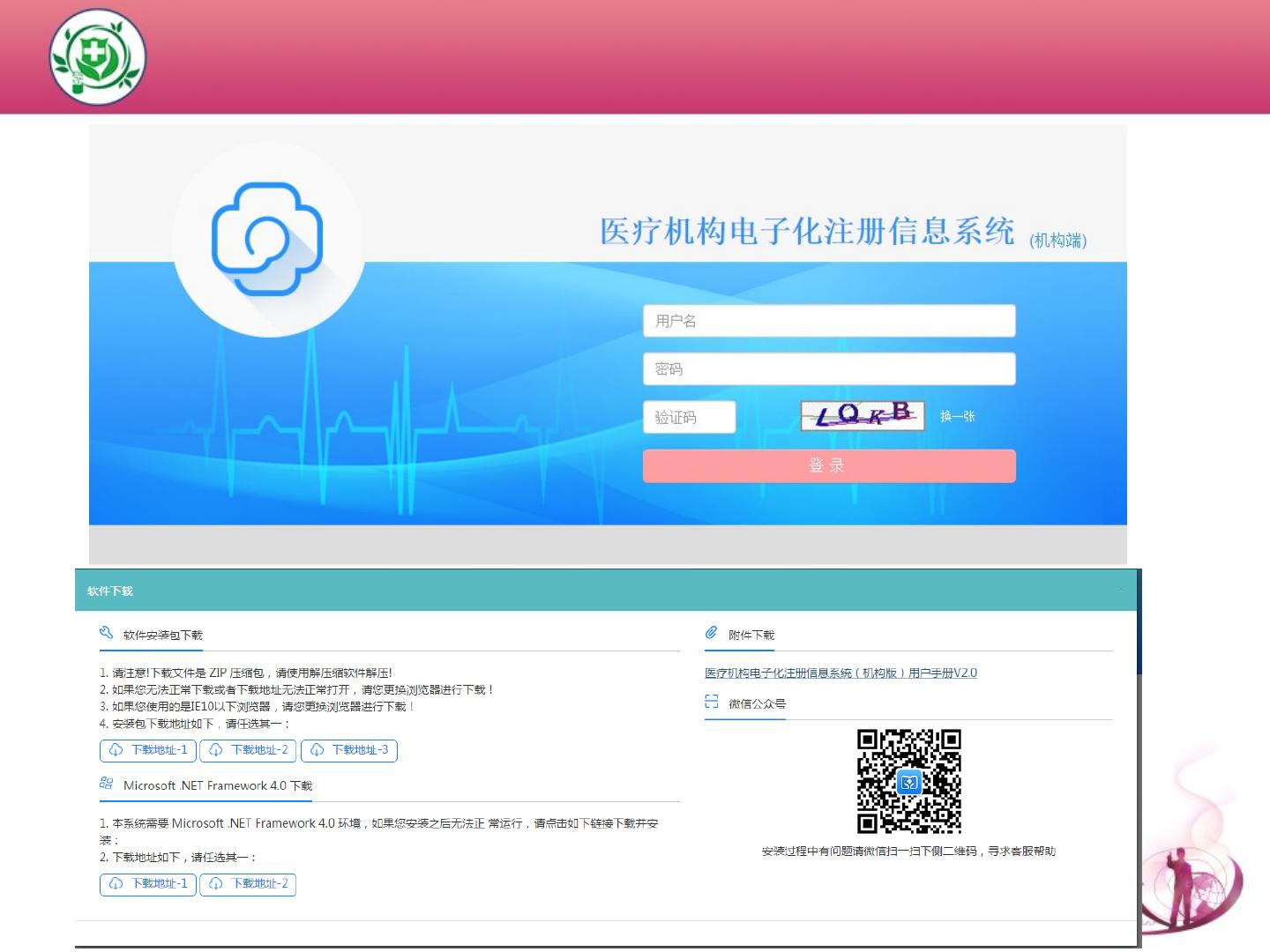 第二章 医疗机构电子化注册信息系统. 功能介绍 ... 运行此系统的电脑操作系统推荐使用WIN7及以上版本的操作系统,不建议使用WIN XP操作系统。
