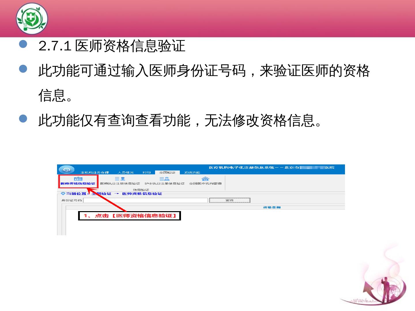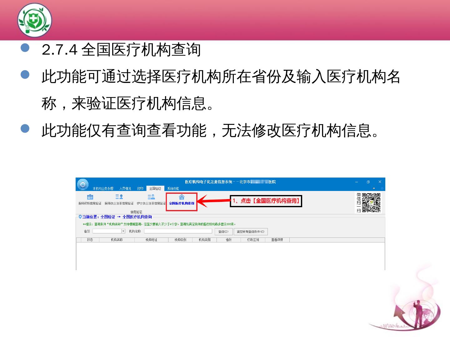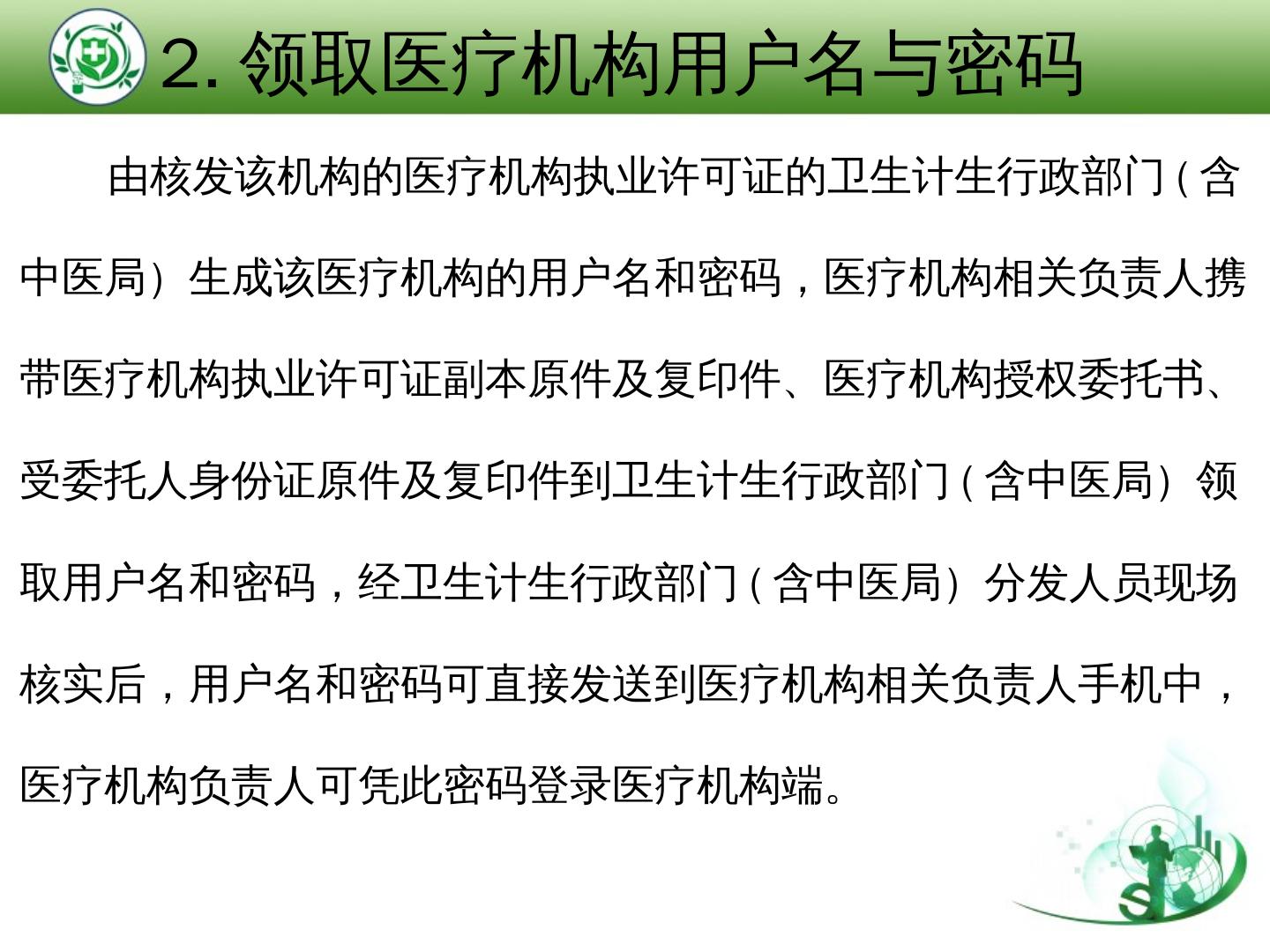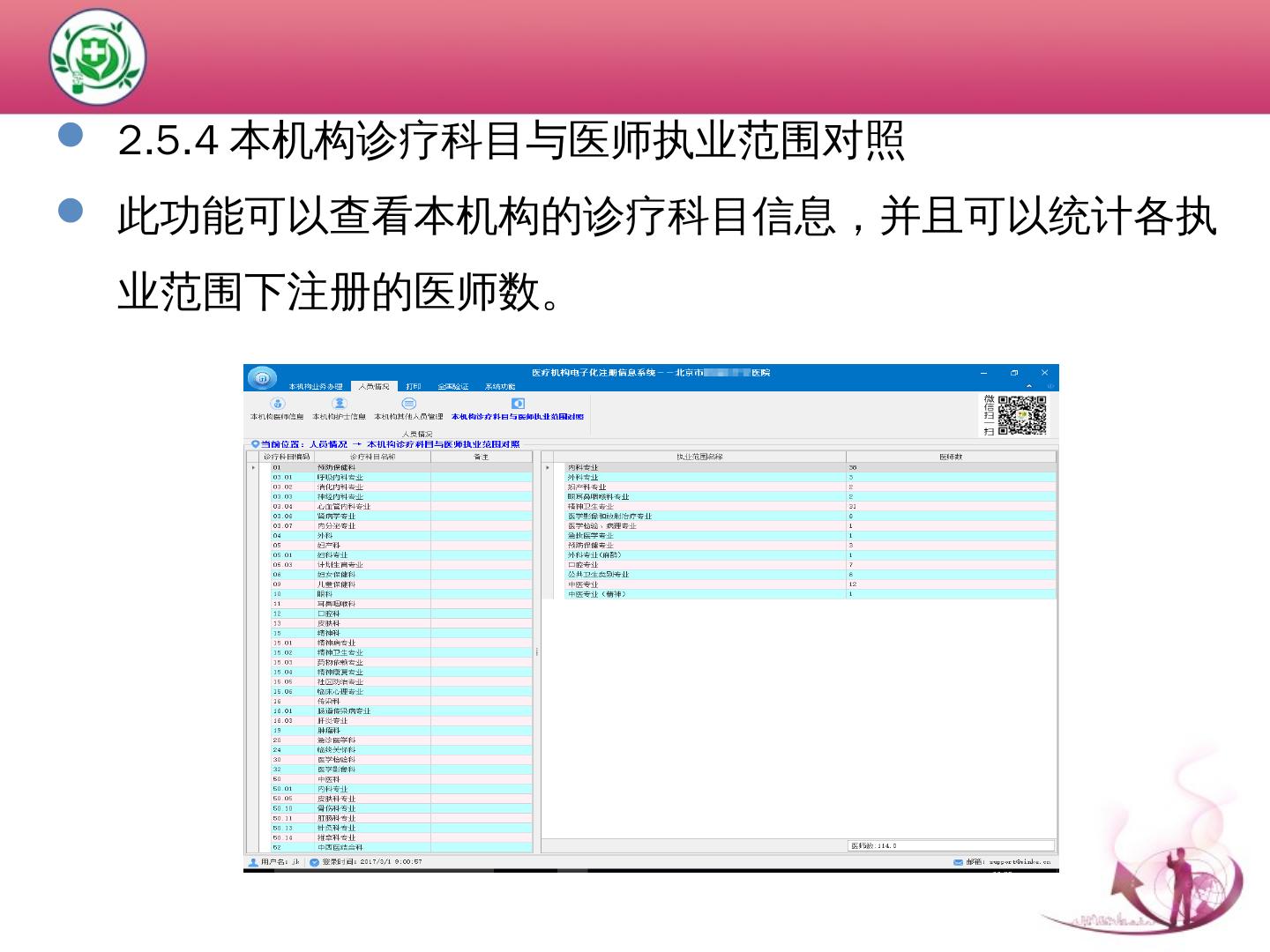 第二章 医疗机构电子化注册信息系统. 功能介绍 ... 运行此系统的电脑操作系统推荐使用WIN7及以上版本的操作系统,不建议使用WIN XP操作系统。