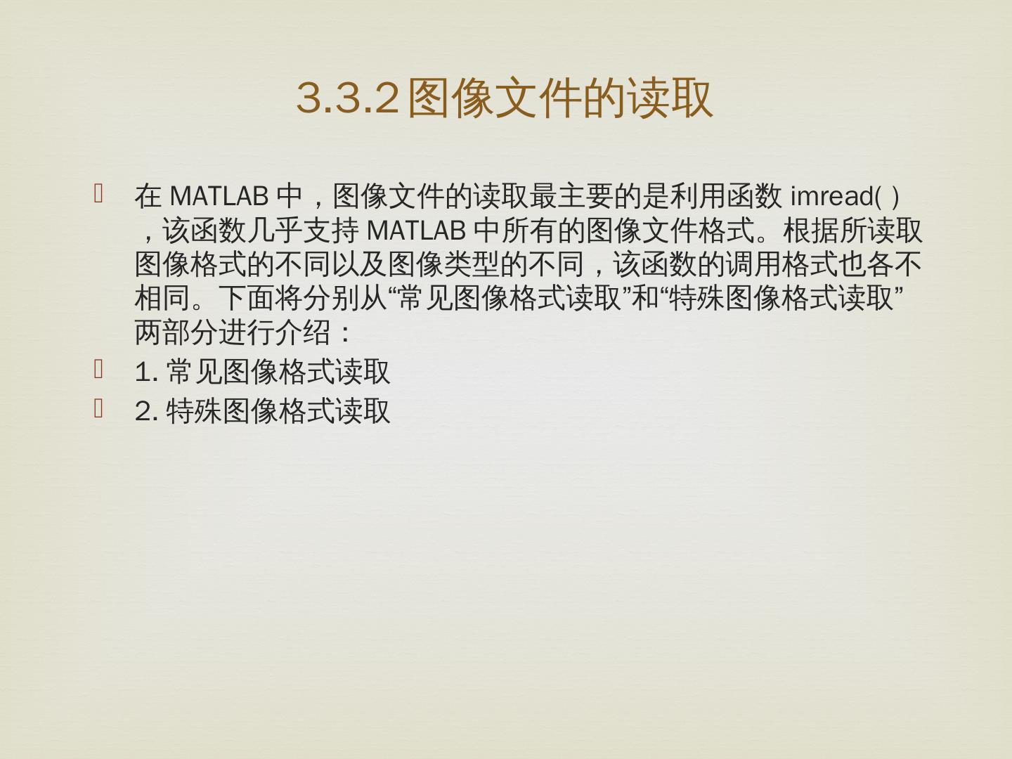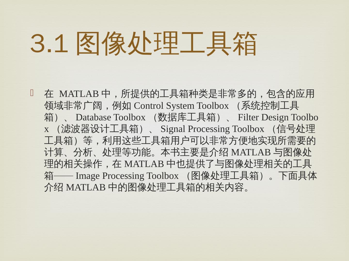 本章主要介绍利用MATLAB来实现数字图像处理的基本操作,主要包括以下几个方面的内容:MATLAB图像处理工具箱,图像类型的转换,图像文件的读写,图像文件的 ...