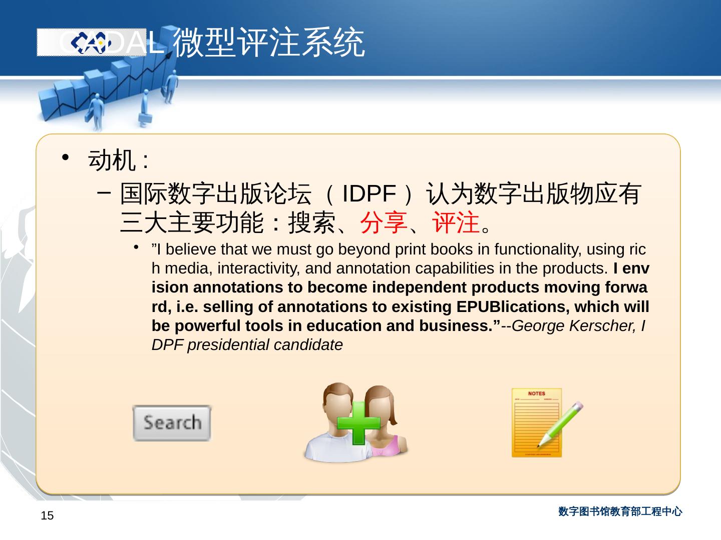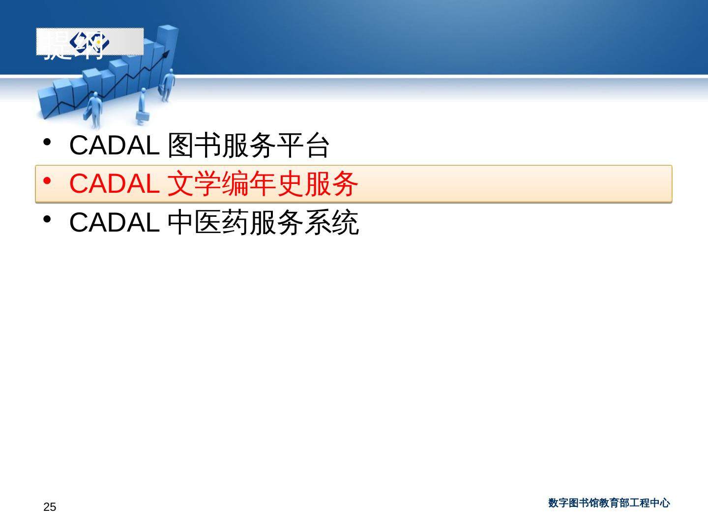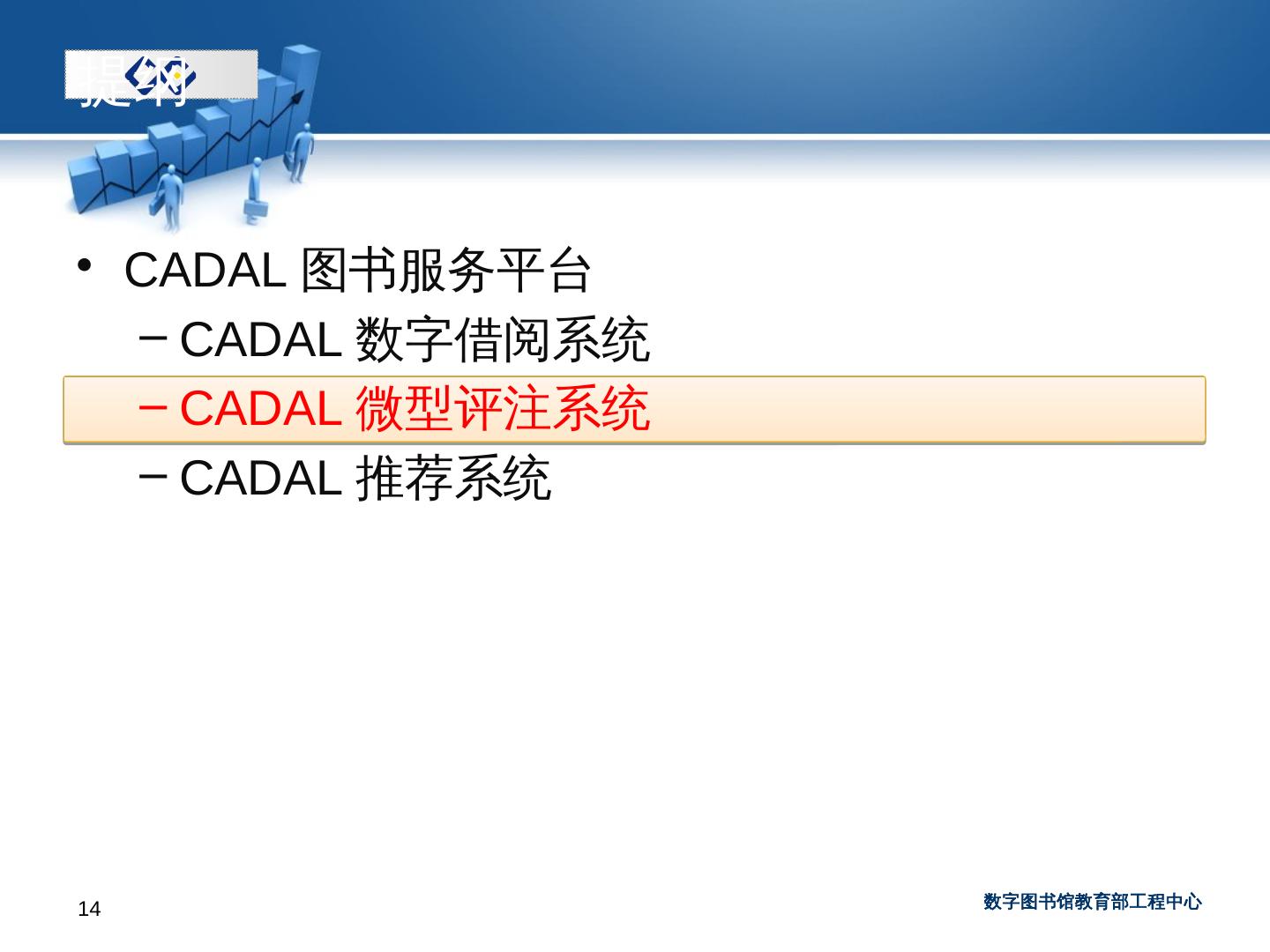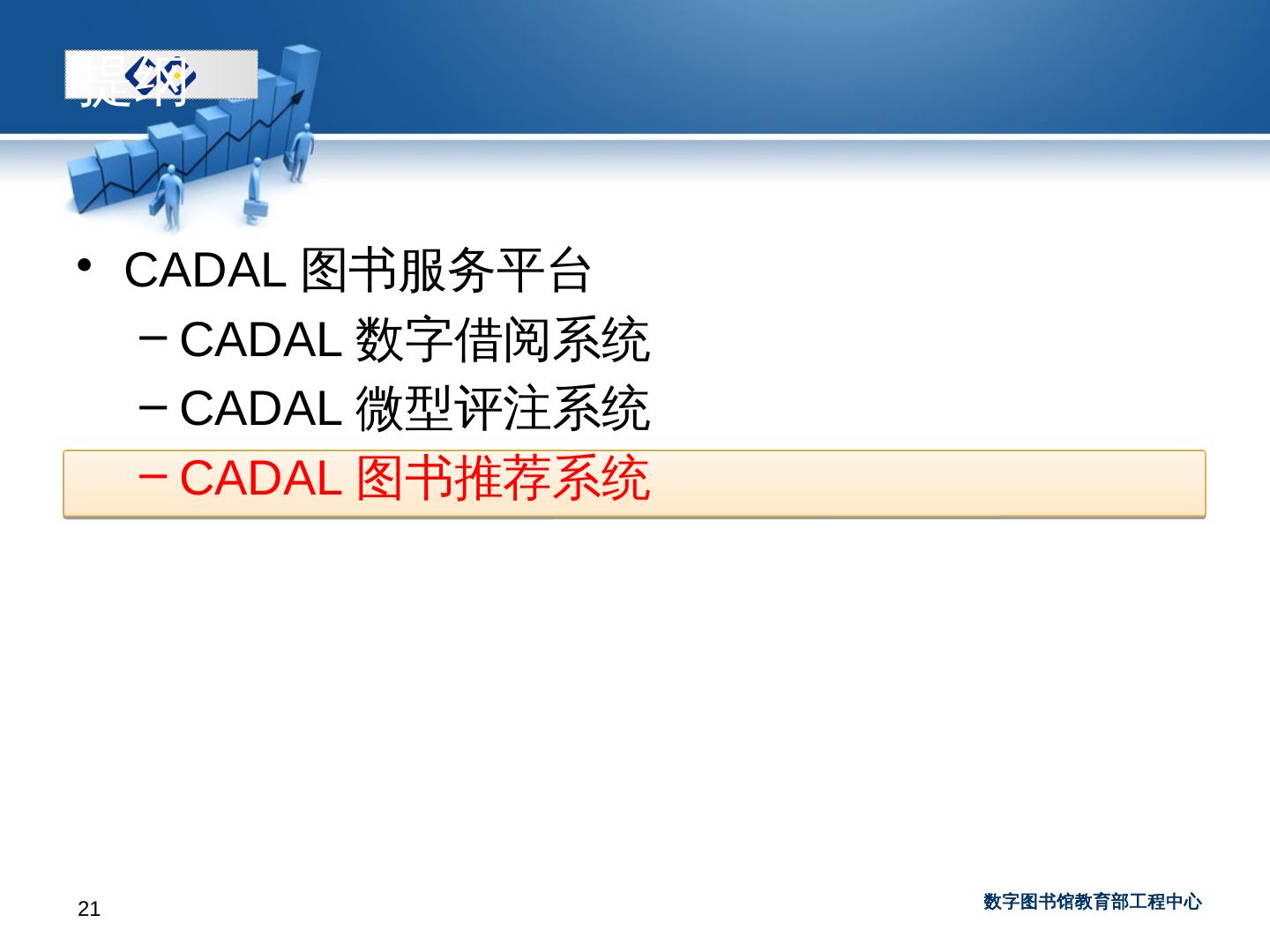 CADAL数字借阅系统; CADAL微型评注系统; CADAL图书推荐系统. 3. 数字图书馆教育部工程中心. 资源受限的瘦客户端. CADAL图书服务平台.