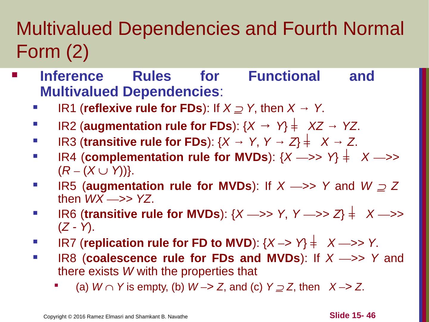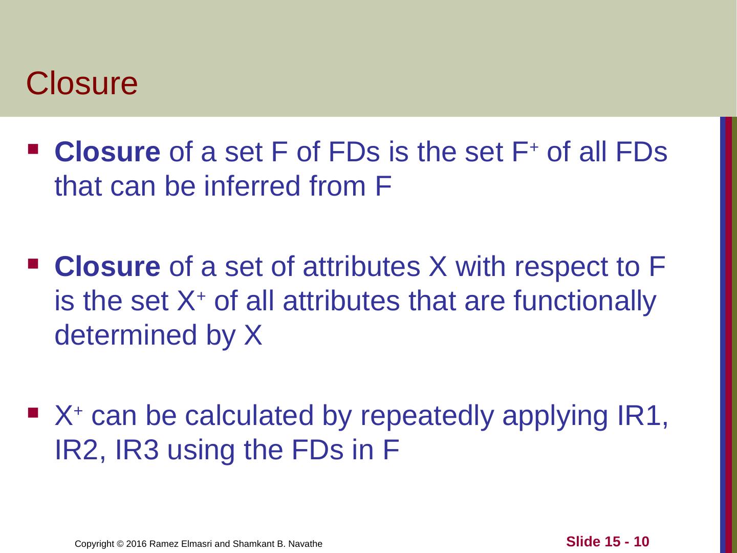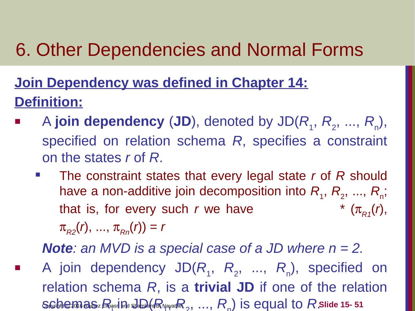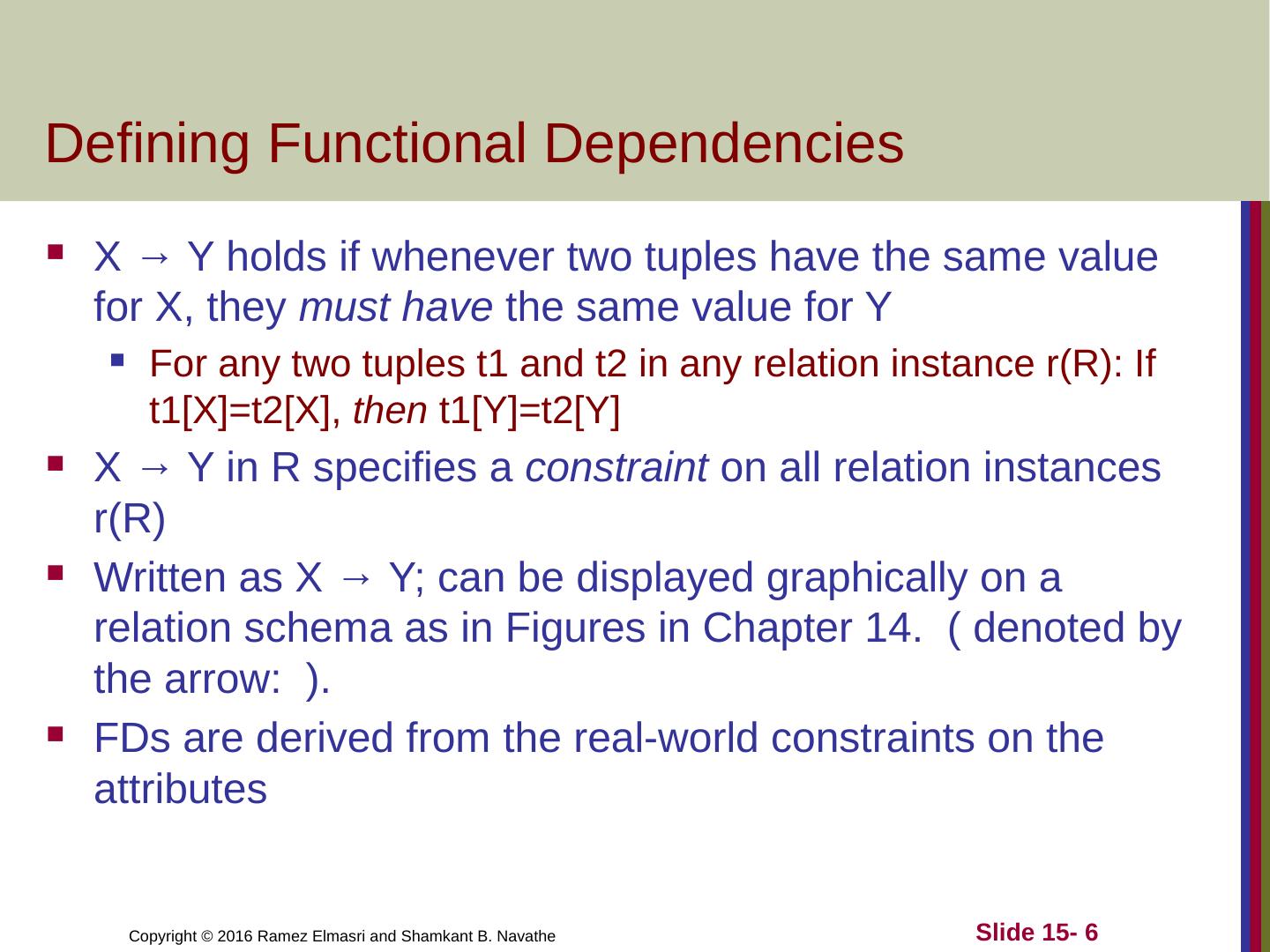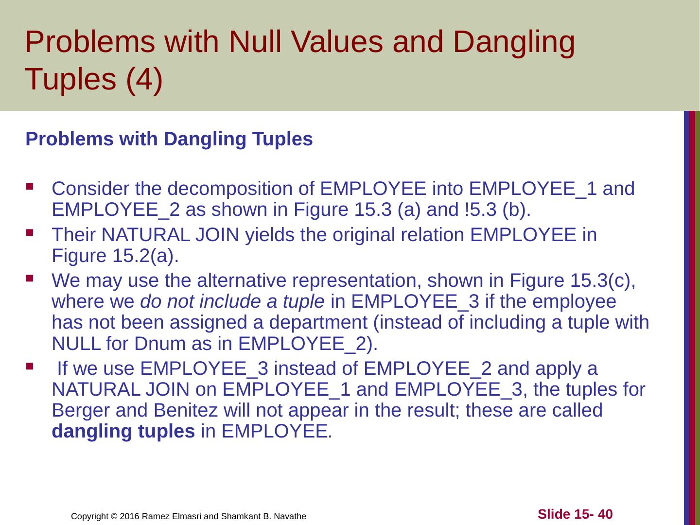 3. Algorithms for Relational Database Schema Design (1). Design of 3NF Schemas: Algorithm 15.4 Relational Synthesis into 3NF with Dependency Preservation ...