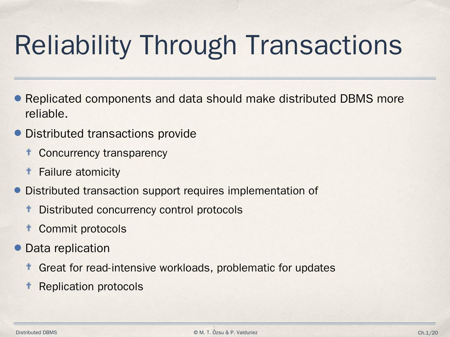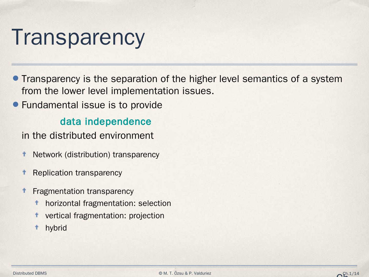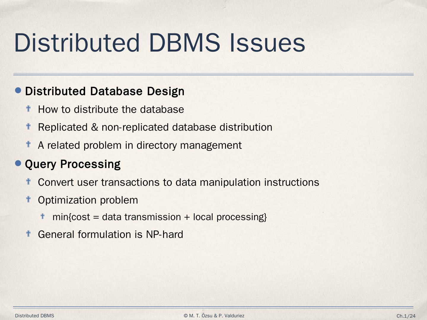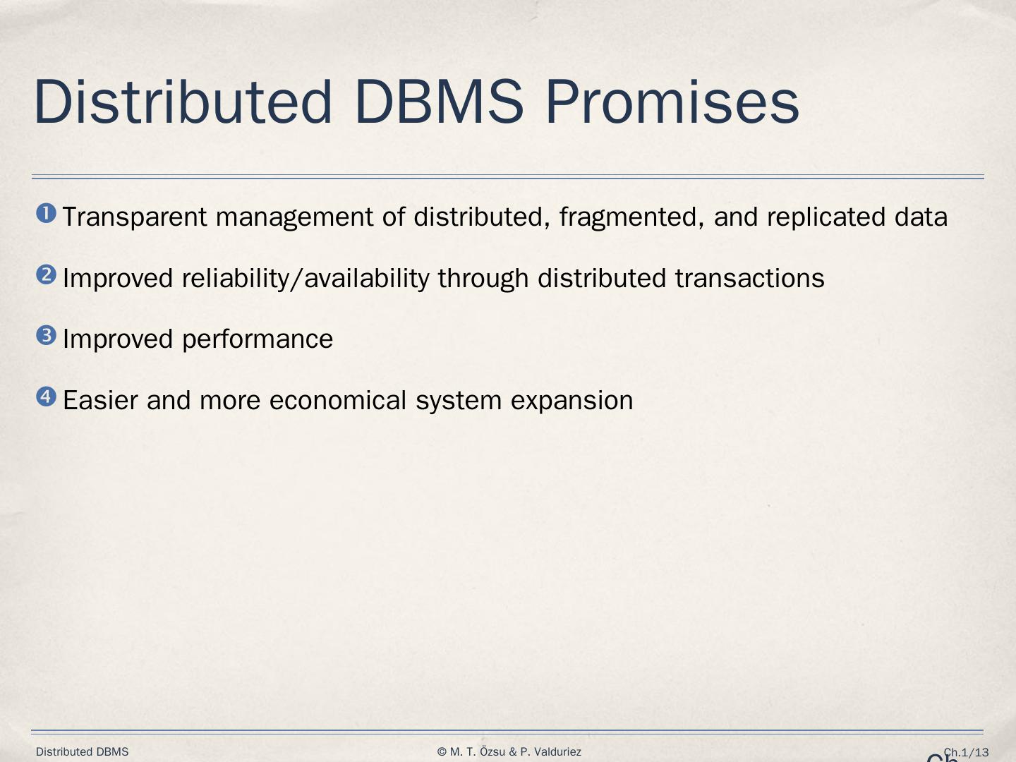 A distributed database management system (D–DBMS) is the software that manages the DDB and provides an access mechanism that makes this distribution ...