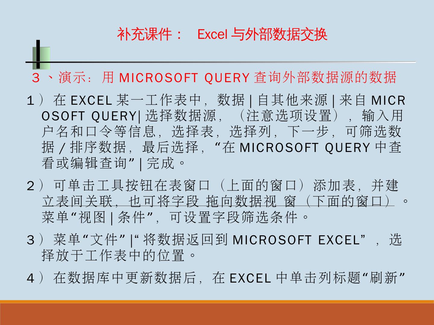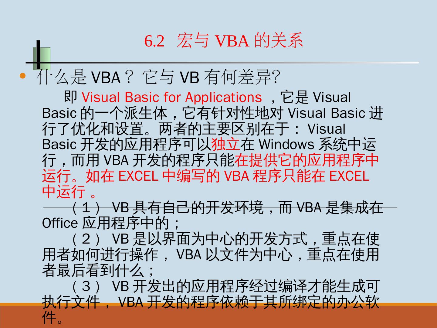 1、数据透视表是一种对大量数据快速汇总和建立交叉列表的交互式表格,是一个 ..... (3)VB开发出的应用程序经过编译才能生成可执行文件,VBA开发的程序依赖于其 ...