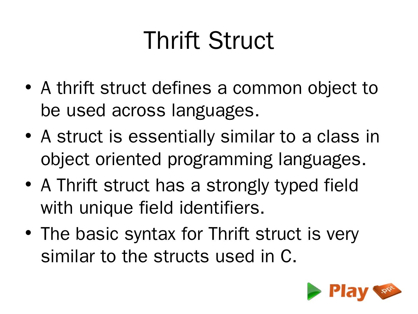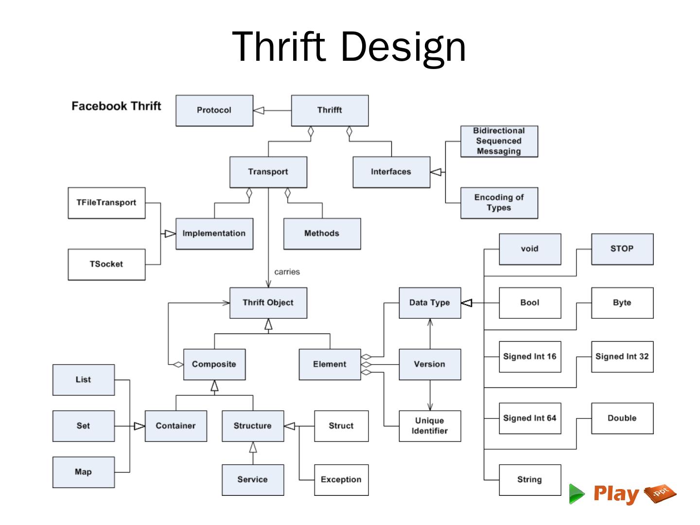This file is called as Thrift Interface Definition Logic File or Thrift IDL File. ... Finally Thrift has been added to Apache Software Foundation as the Apache Thrift ...