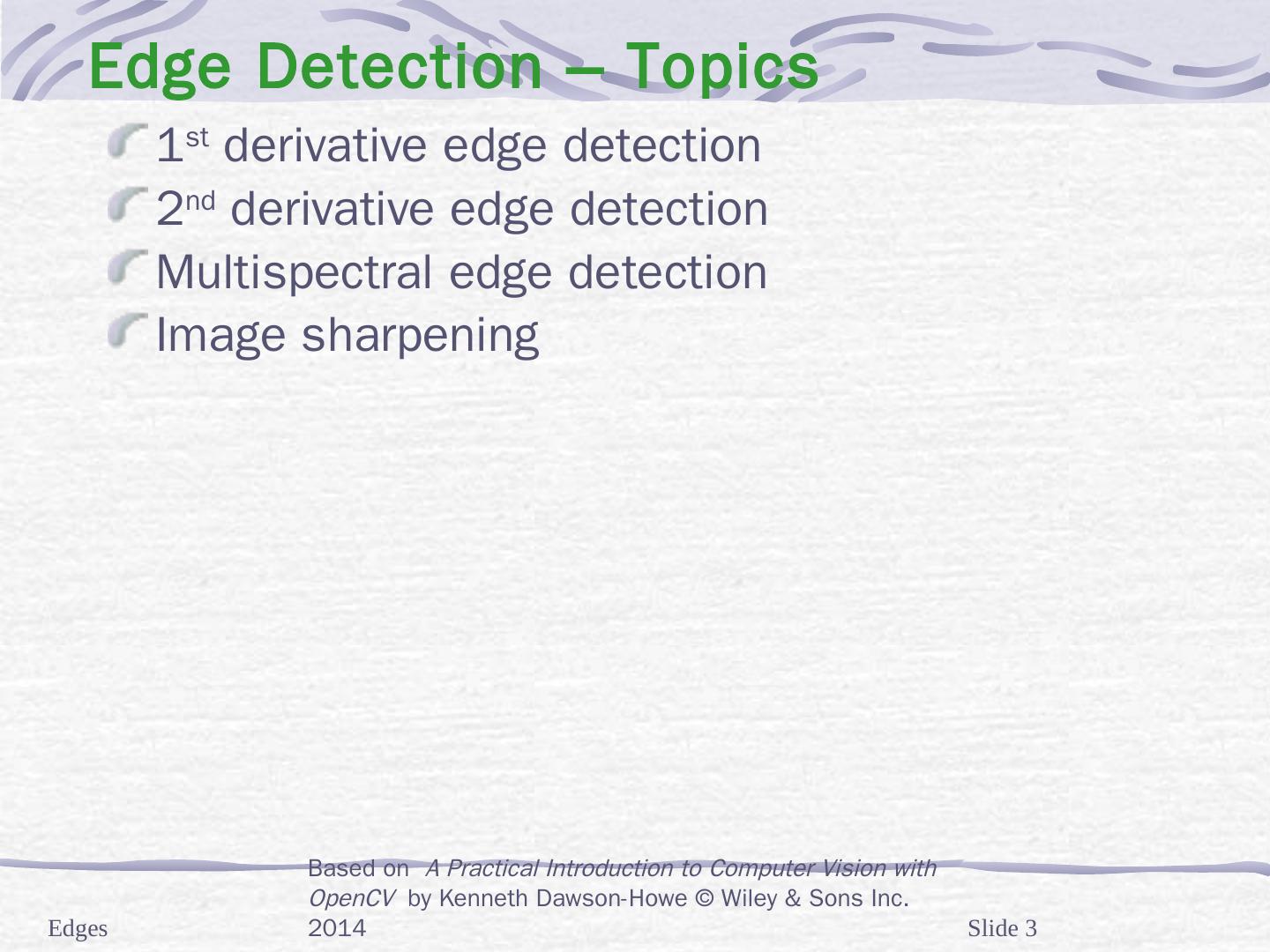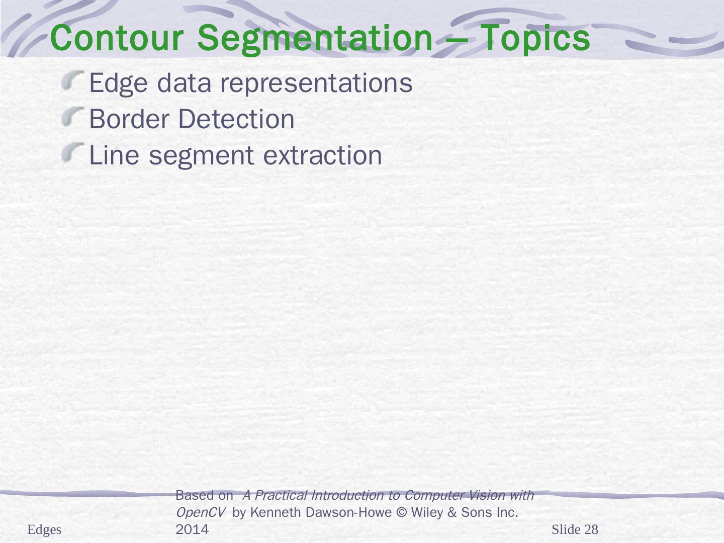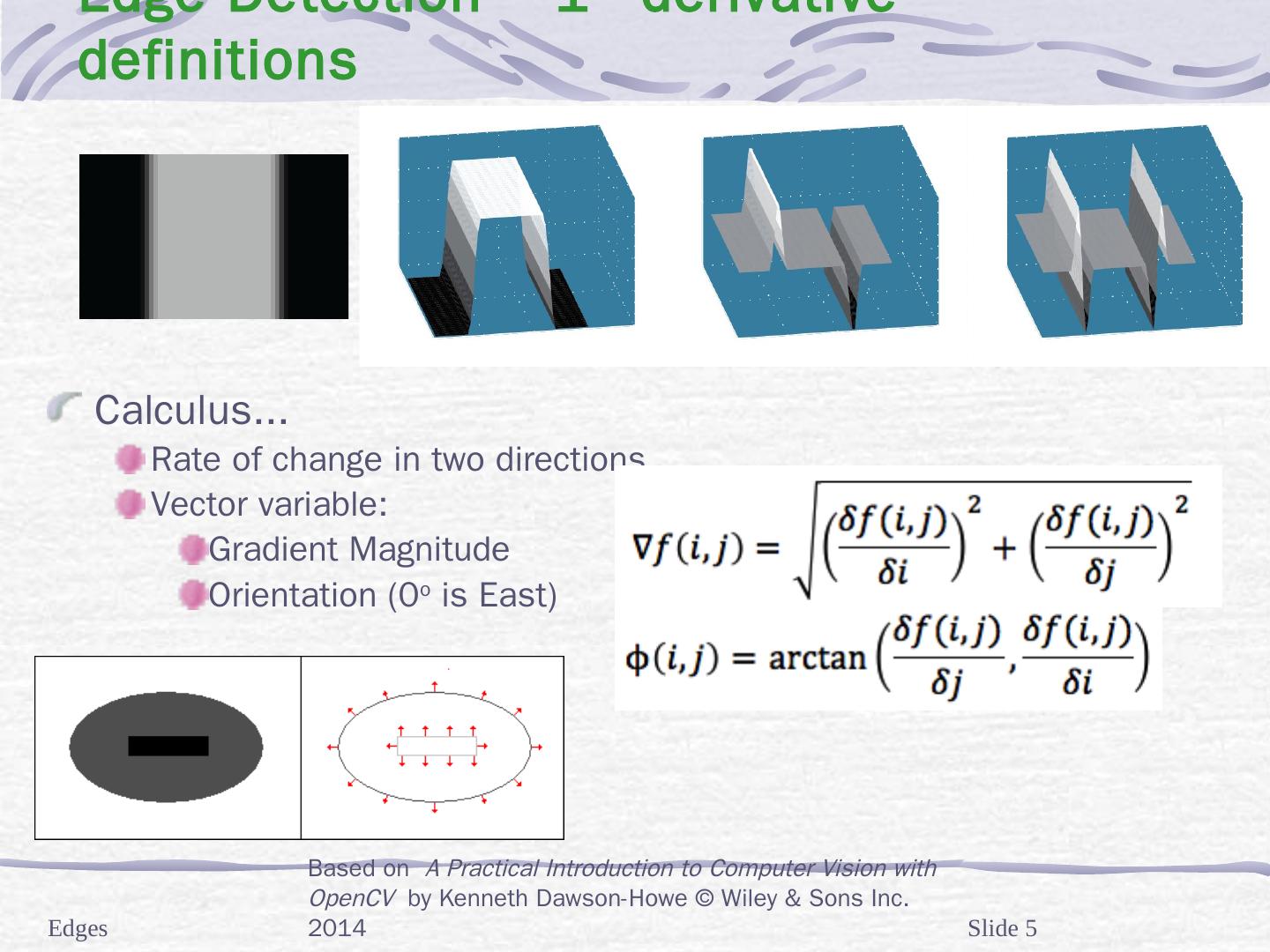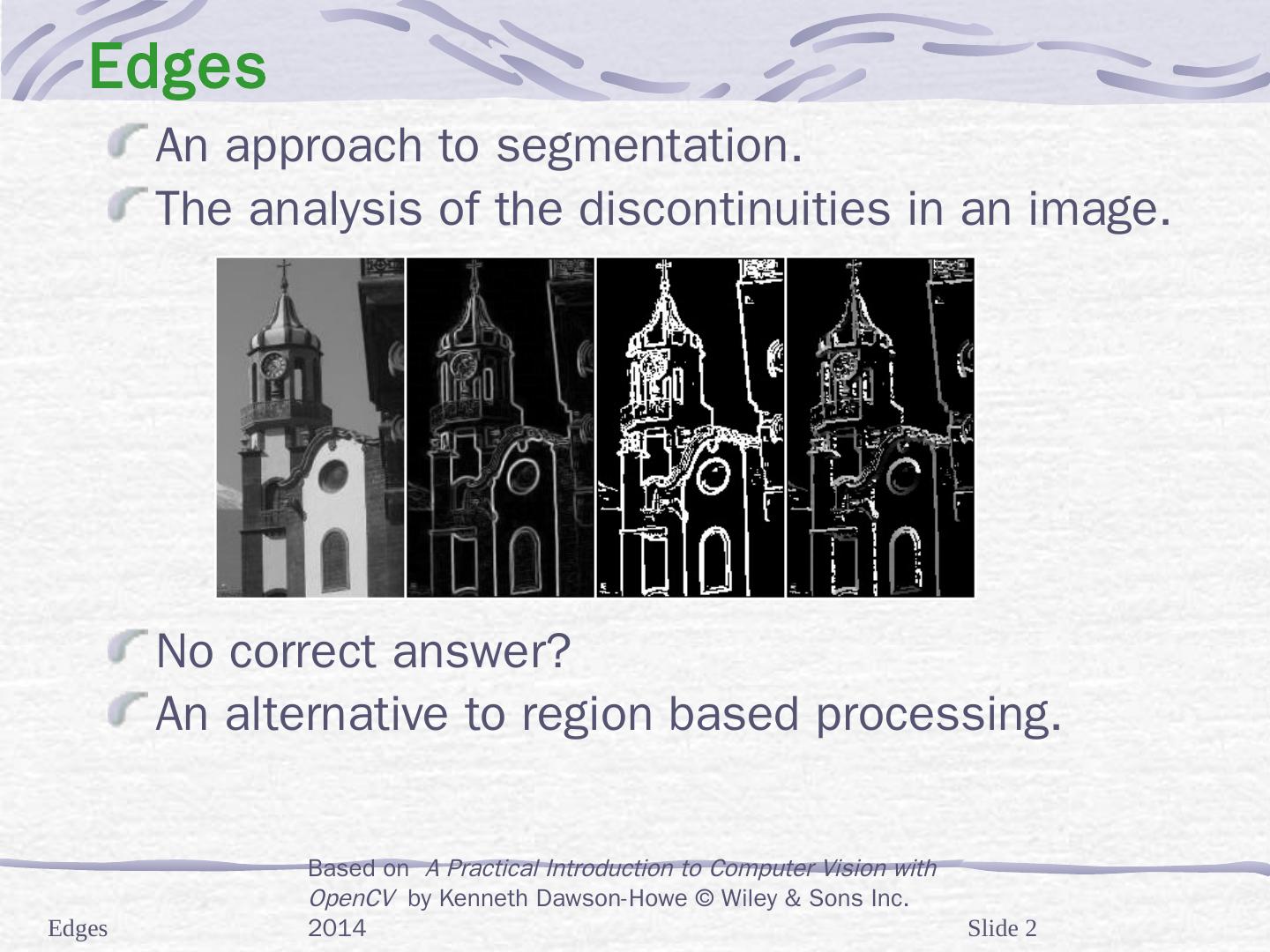 Based on A Practical Introduction to Computer Vision with OpenCV by Kenneth Dawson-Howe © Wiley & Sons Inc. 2014. Edge Detection – What is an edge?