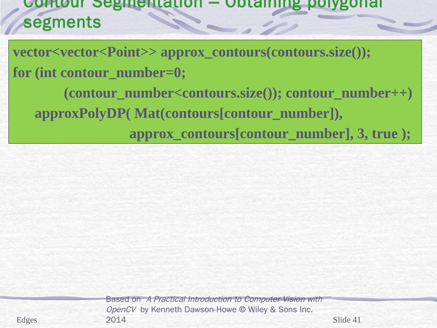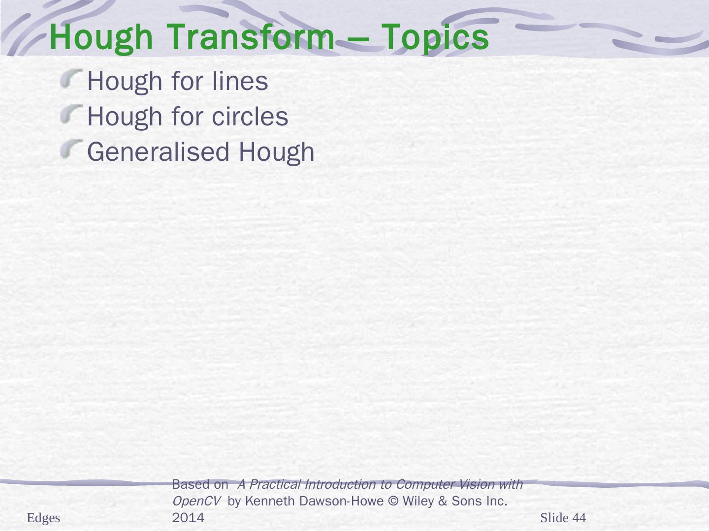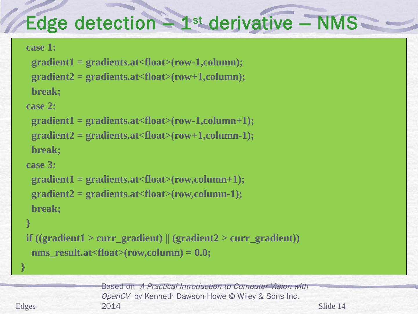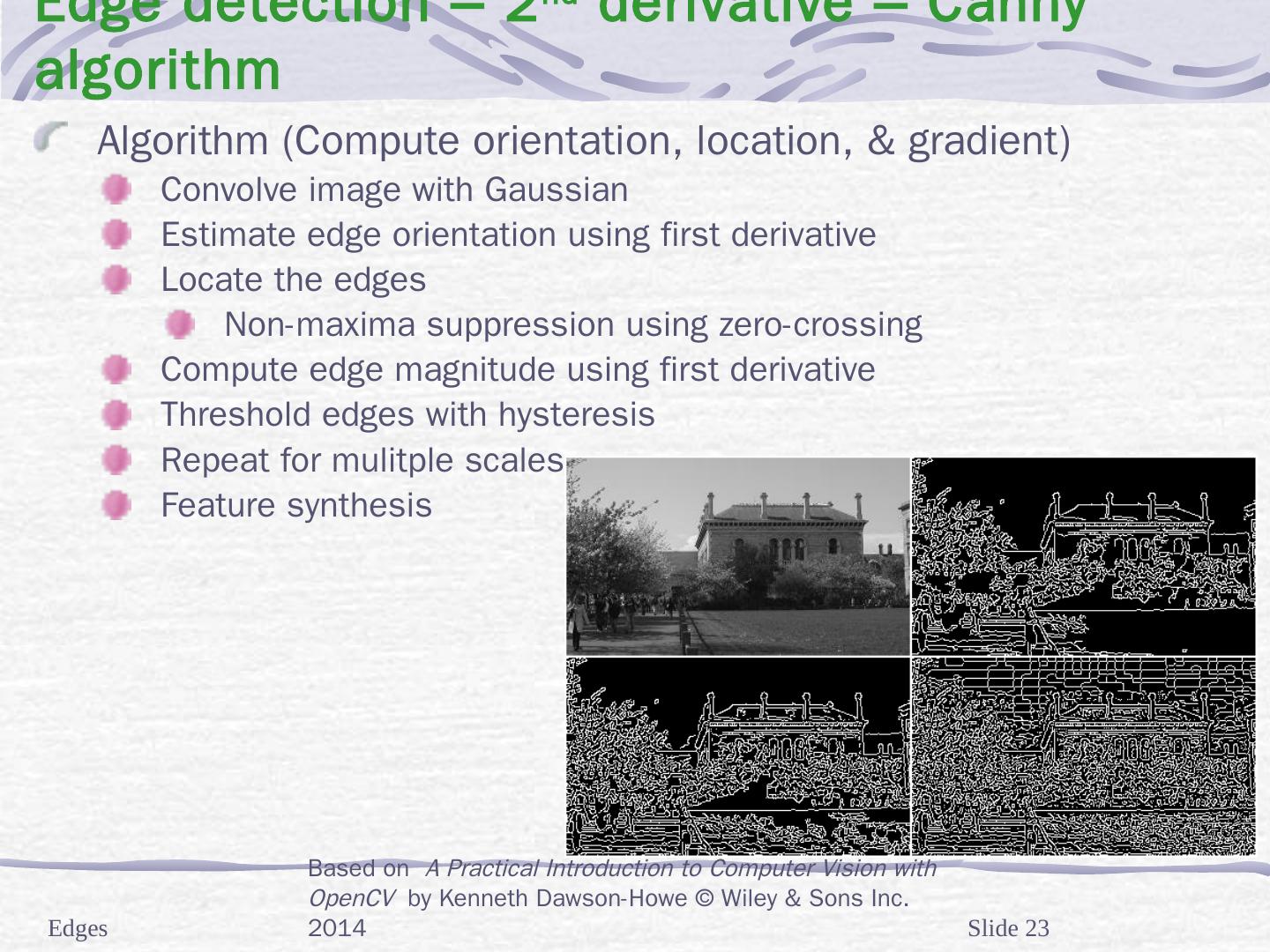 Based on A Practical Introduction to Computer Vision with OpenCV by Kenneth Dawson-Howe © Wiley & Sons Inc. 2014. Edge Detection – What is an edge?