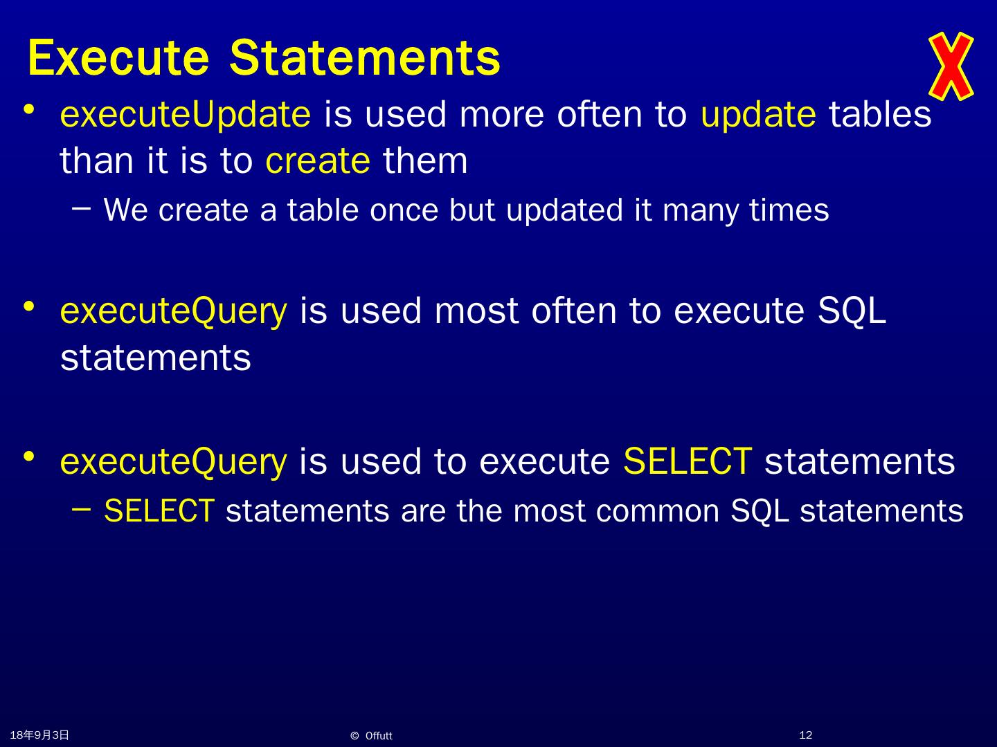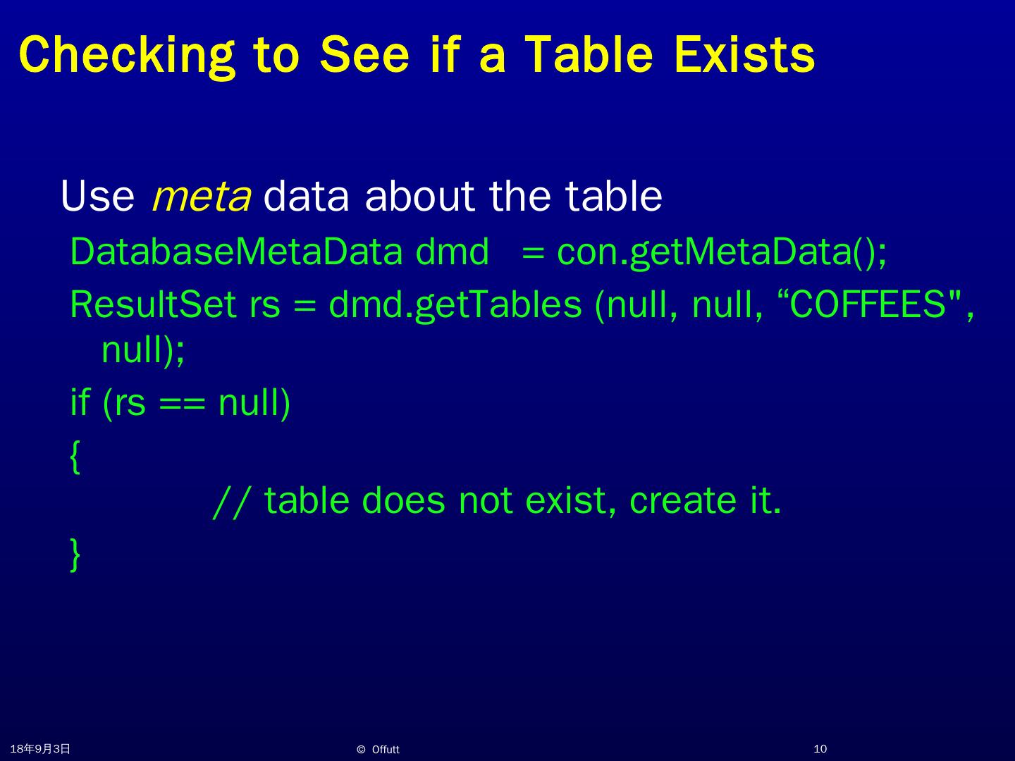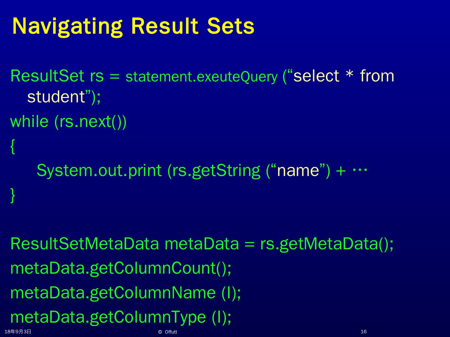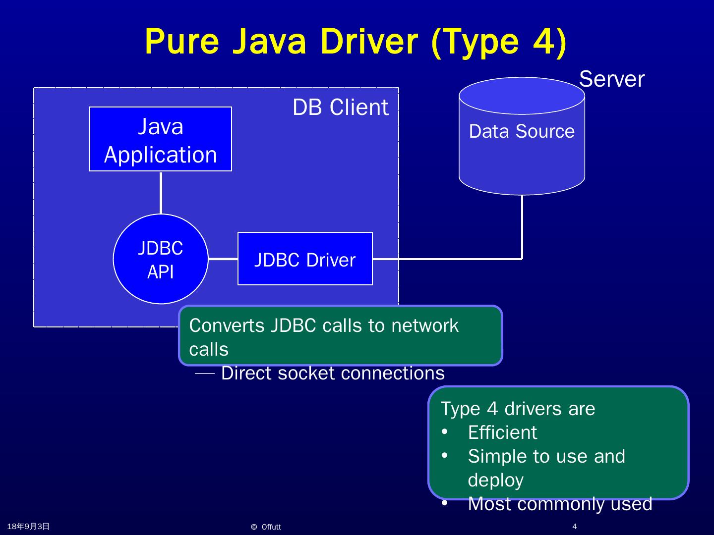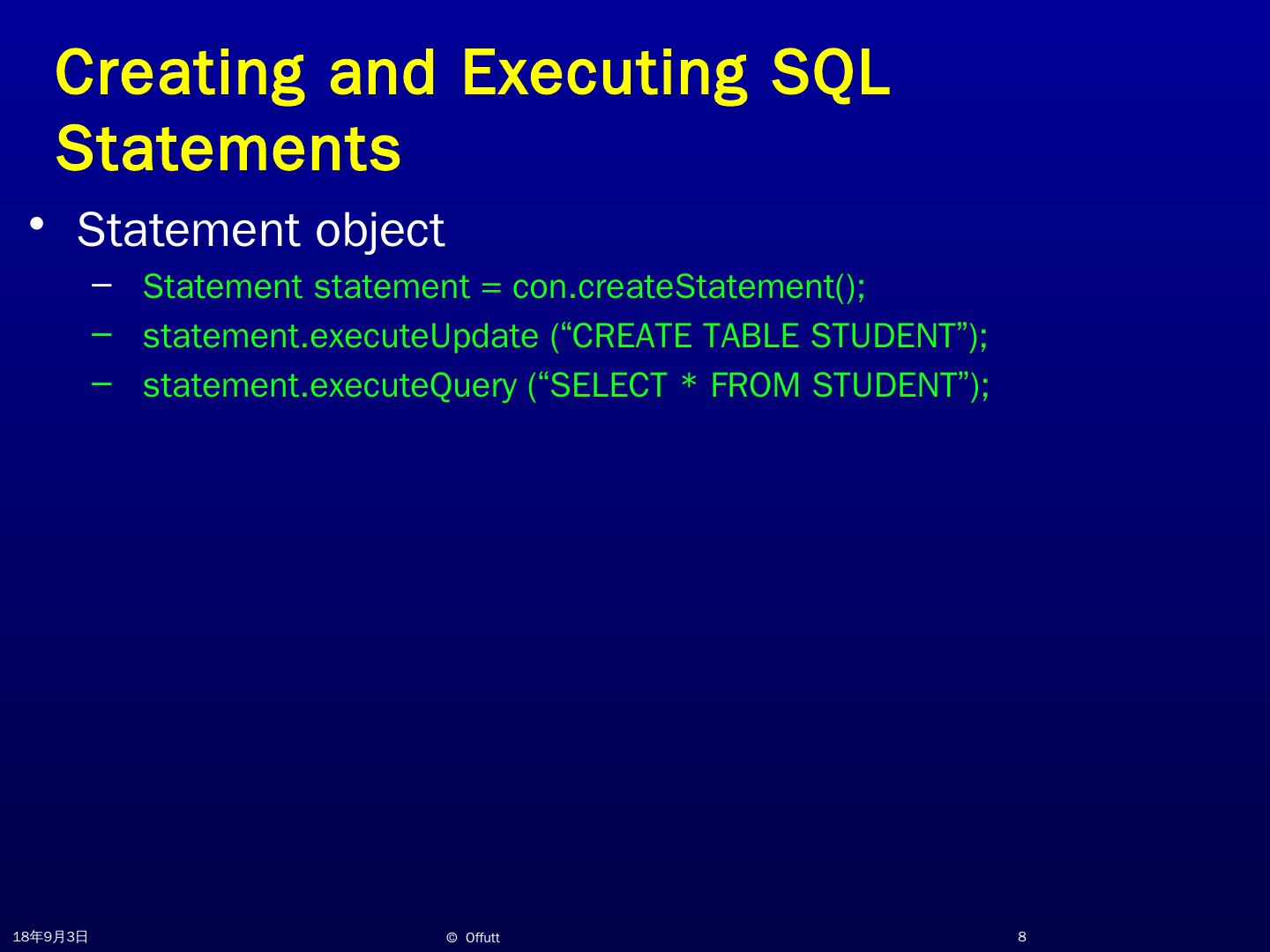 JDBC Overview. Jeff Offutt. http://www.cs.gmu.edu/~offutt/. SWE 432. Design and Implementation of Software for the Web. JDBC. JDBC (Java Database ...