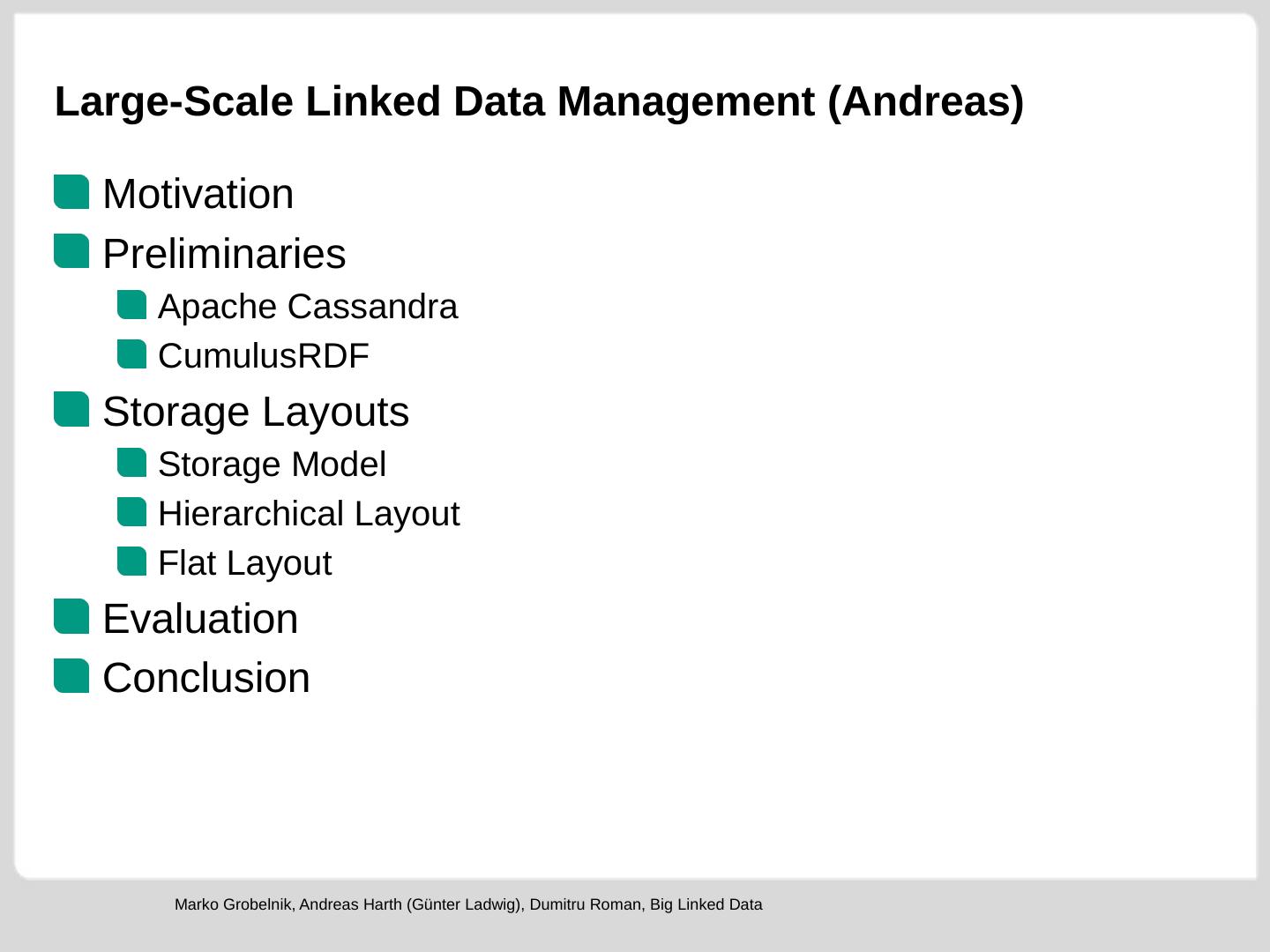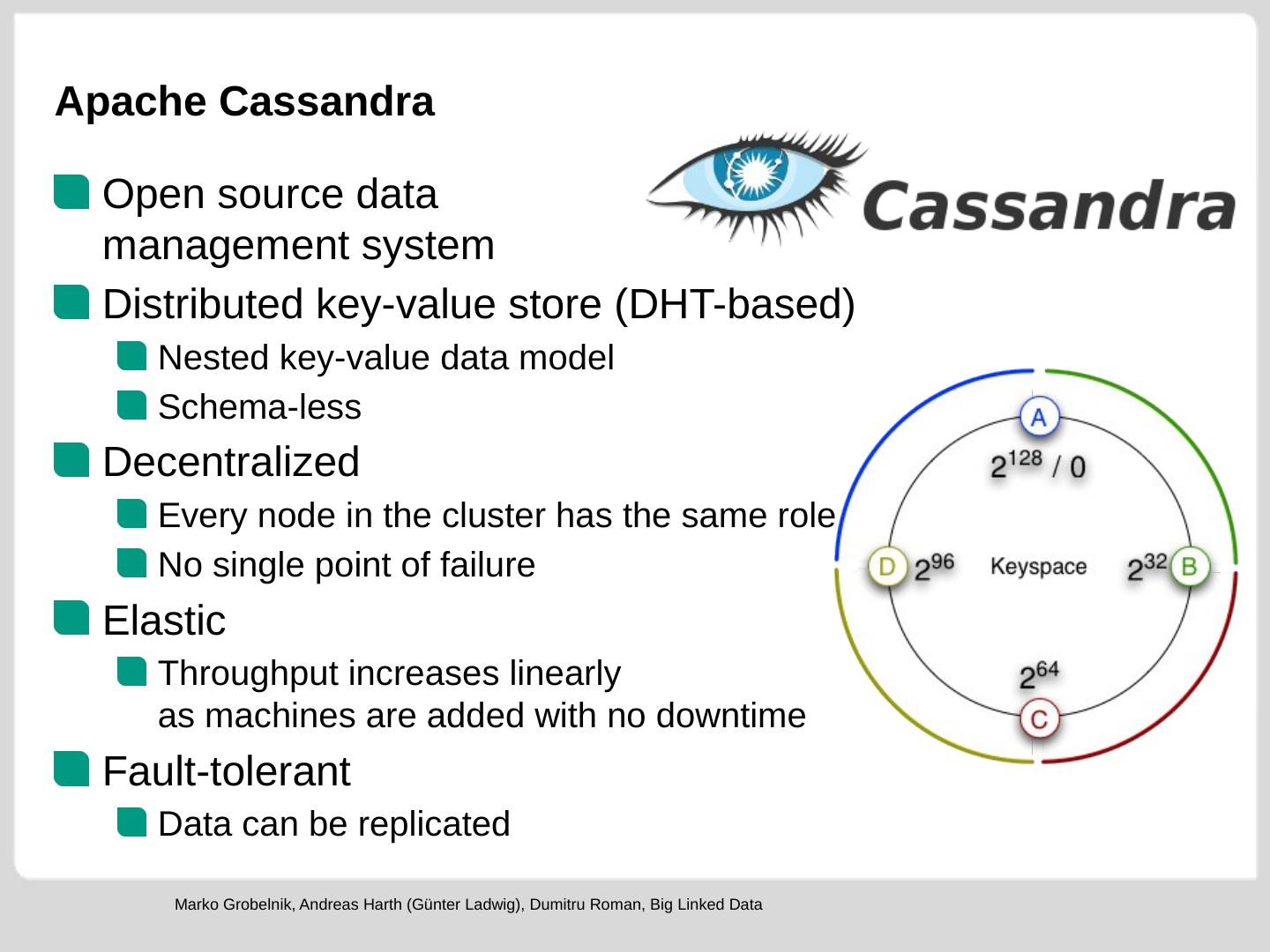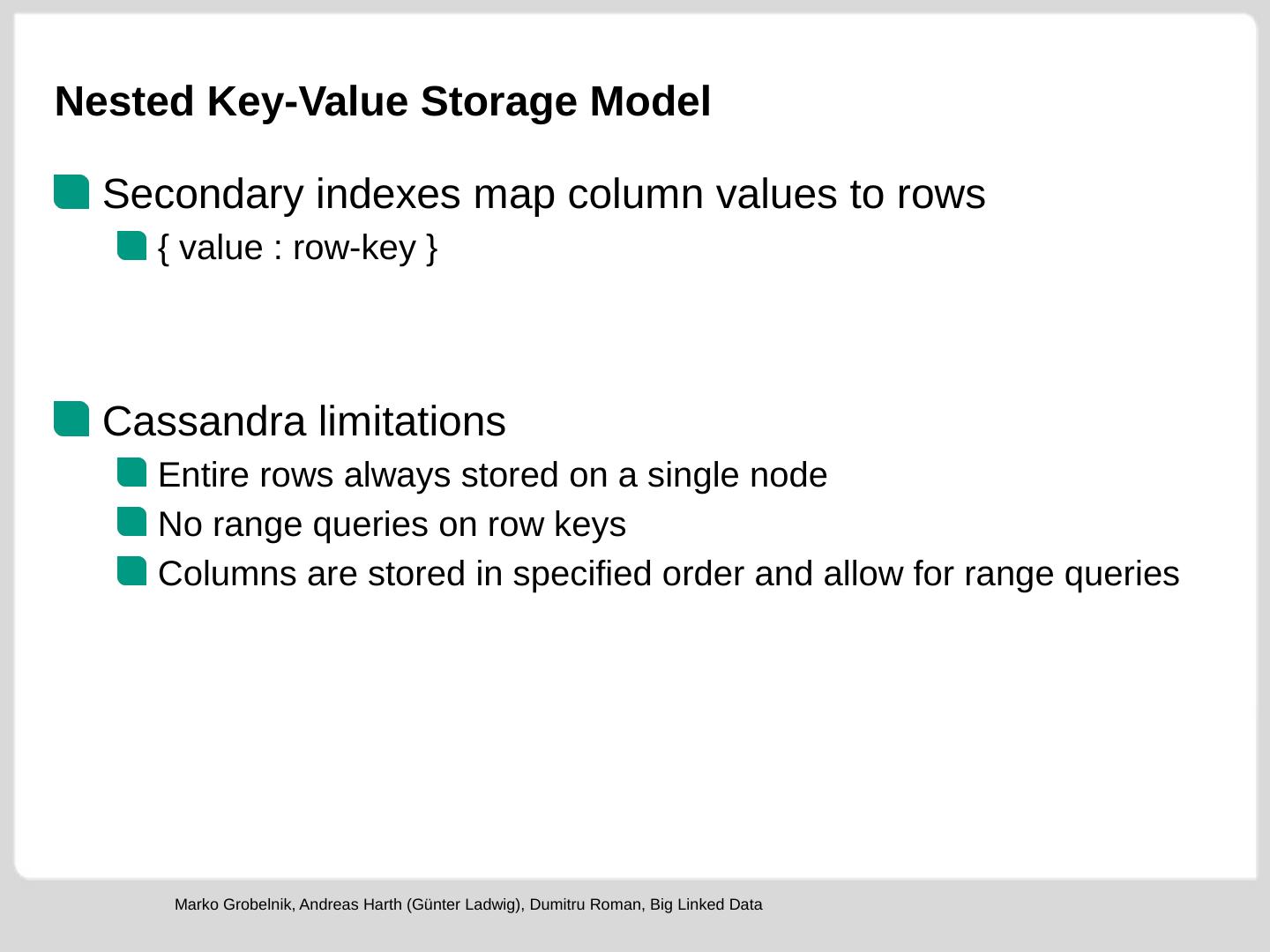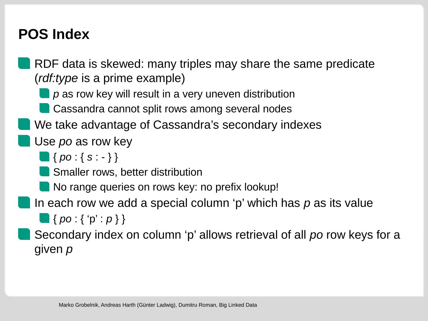 Linked Data Storage and Retrieval at Scale. Algorithmic. complexity. Size. Index Lookups. SPARQL. Reasoning. MB. GB. TB. CumulusRDF. (Apache Cassandra).