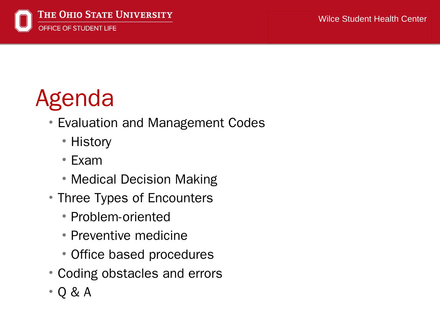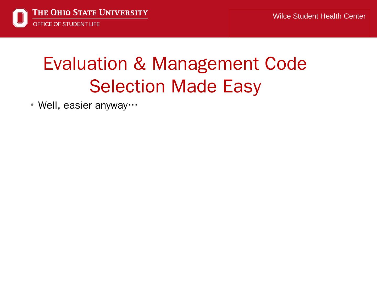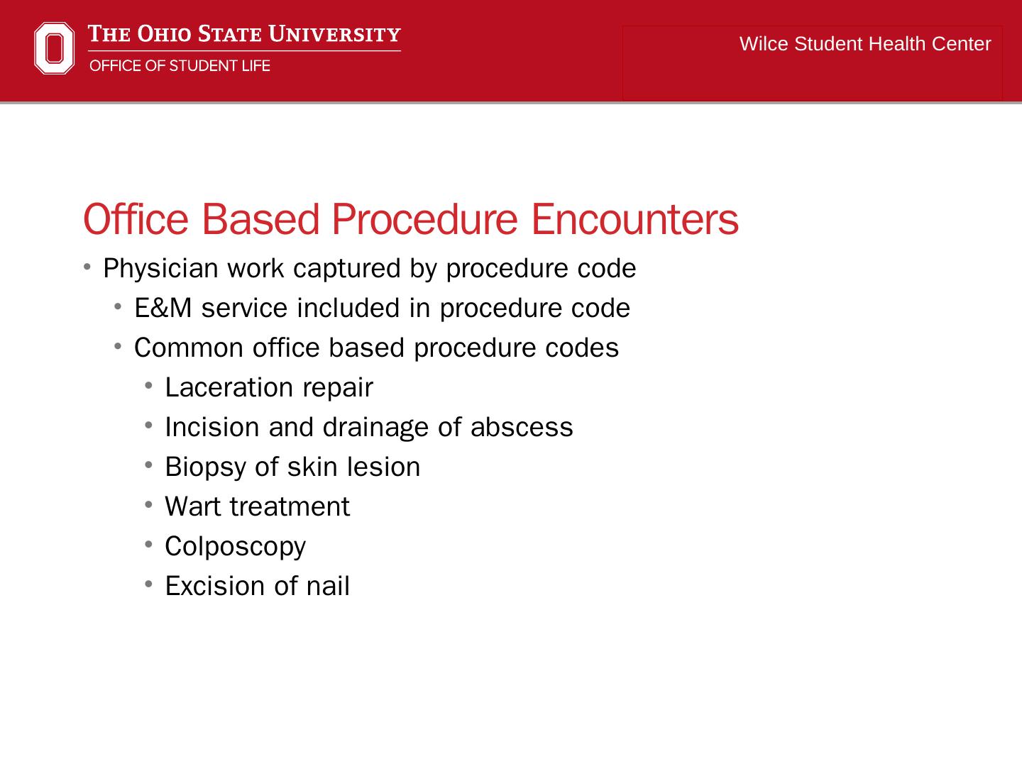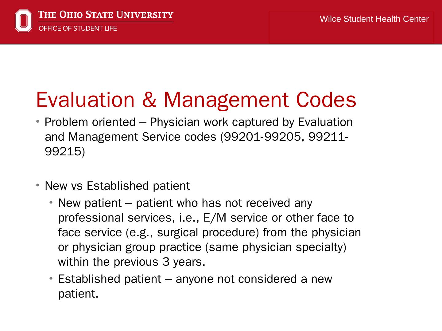 Evaluation and Management (E&M) and Procedure Coding for Office Encounters in a Student Health Center. Michael Bower CPC. Wilce Student Health Center.