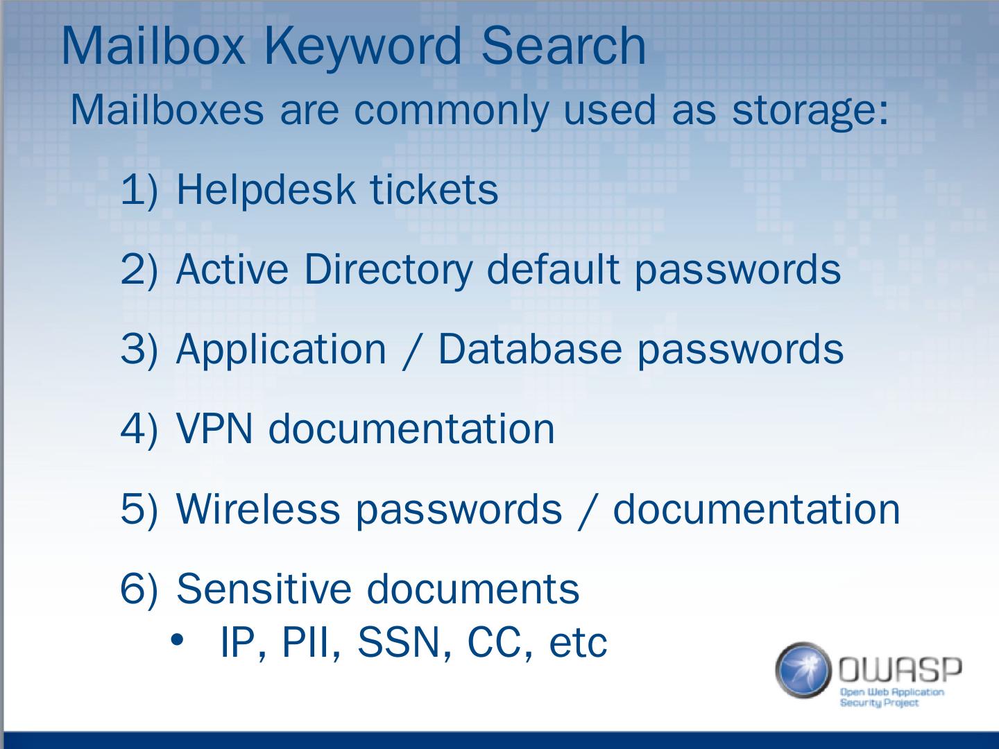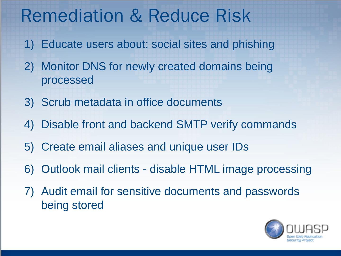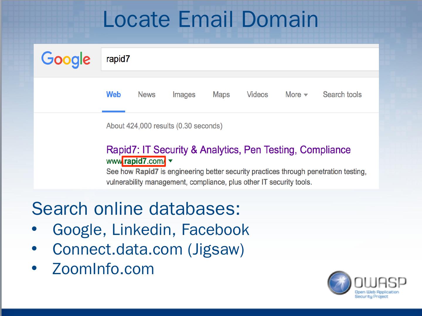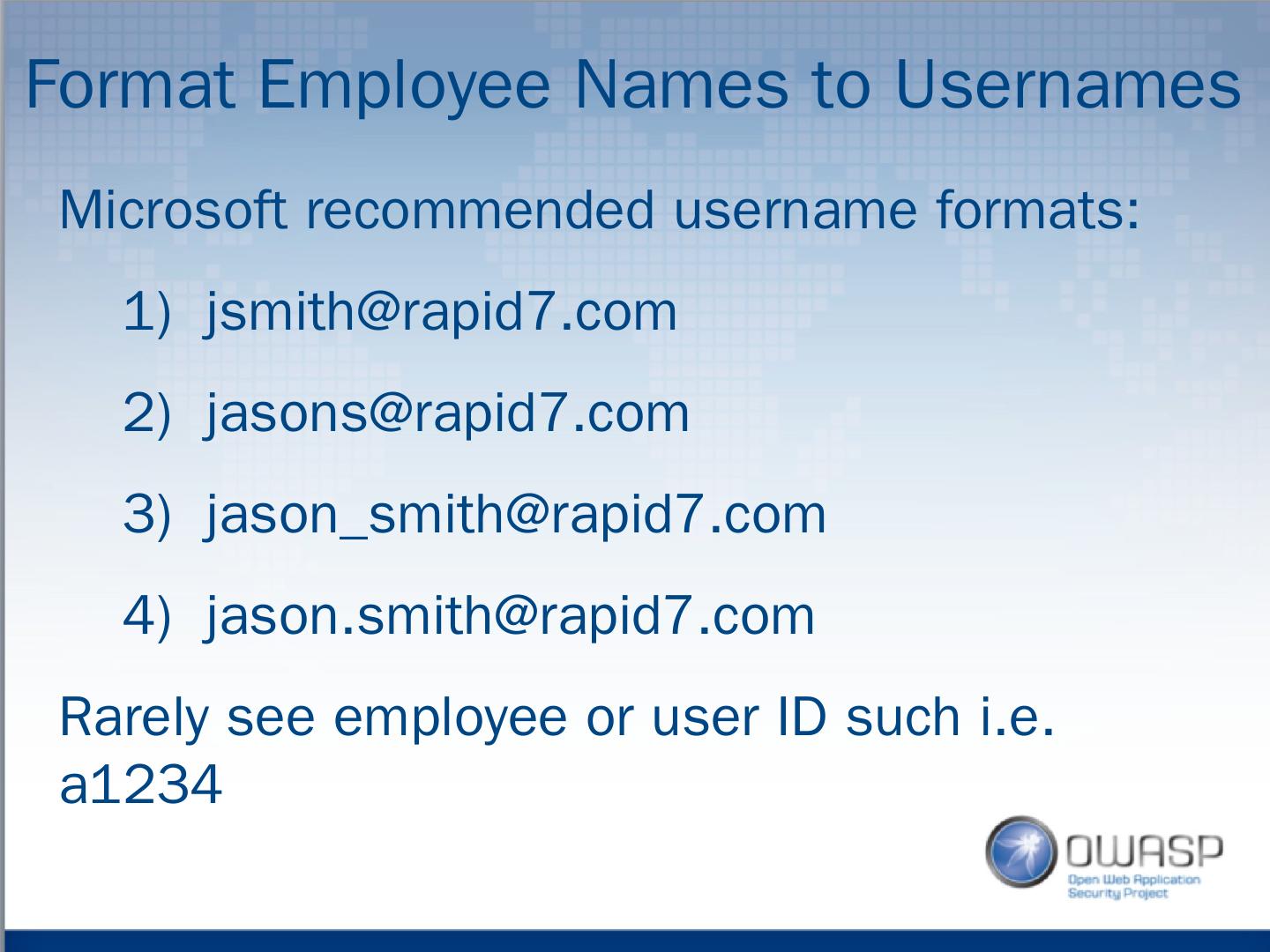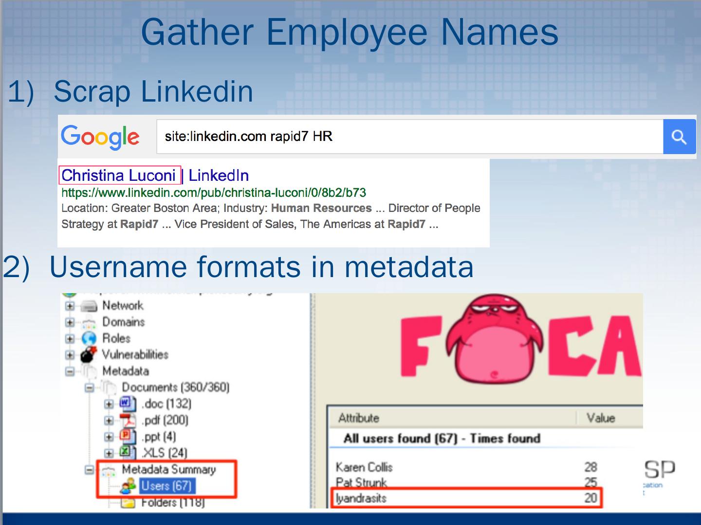 Email address formats / Email domain; Employee names / Username formats; SMTP locations; Webmail locations. Advance Info Gathering Attacks Provide:.