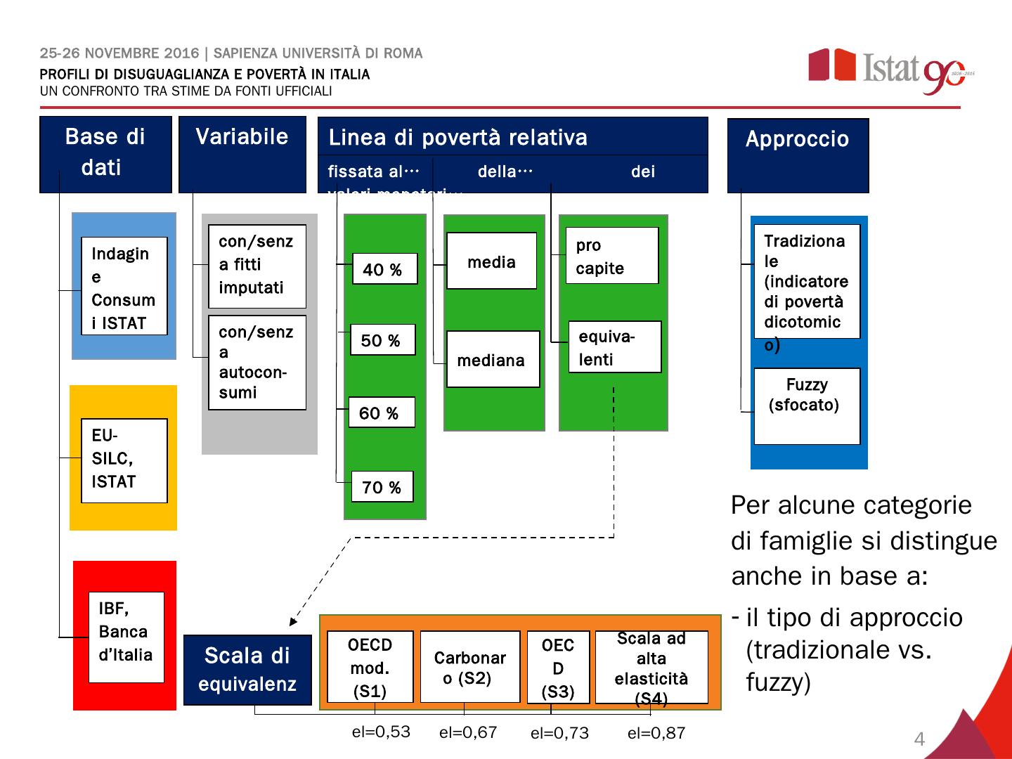 UN CONFRONTO TRA STIME DA FONTI UFFICIALI. OECD (S3). OECD mod. (S1). Scala di equivalenza. Carbonaro (S2). Scala ad alta elasticità (S4). Base di ...