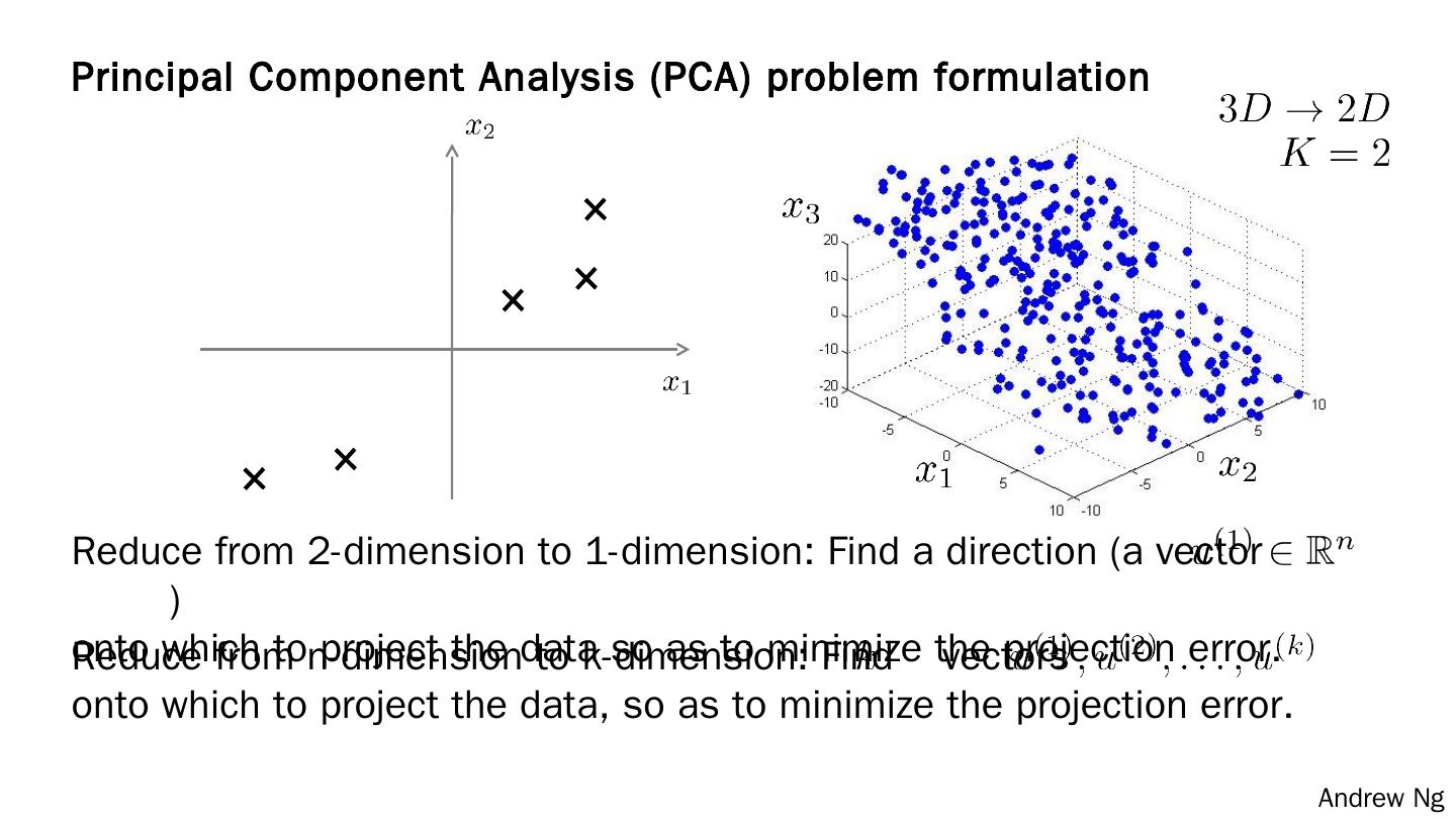 Principal Component Analysis (PCA) problem formulation. Reduce from 2-dimension to ... ICA (Independent Component Analysis):. Very similar to PCA except ...