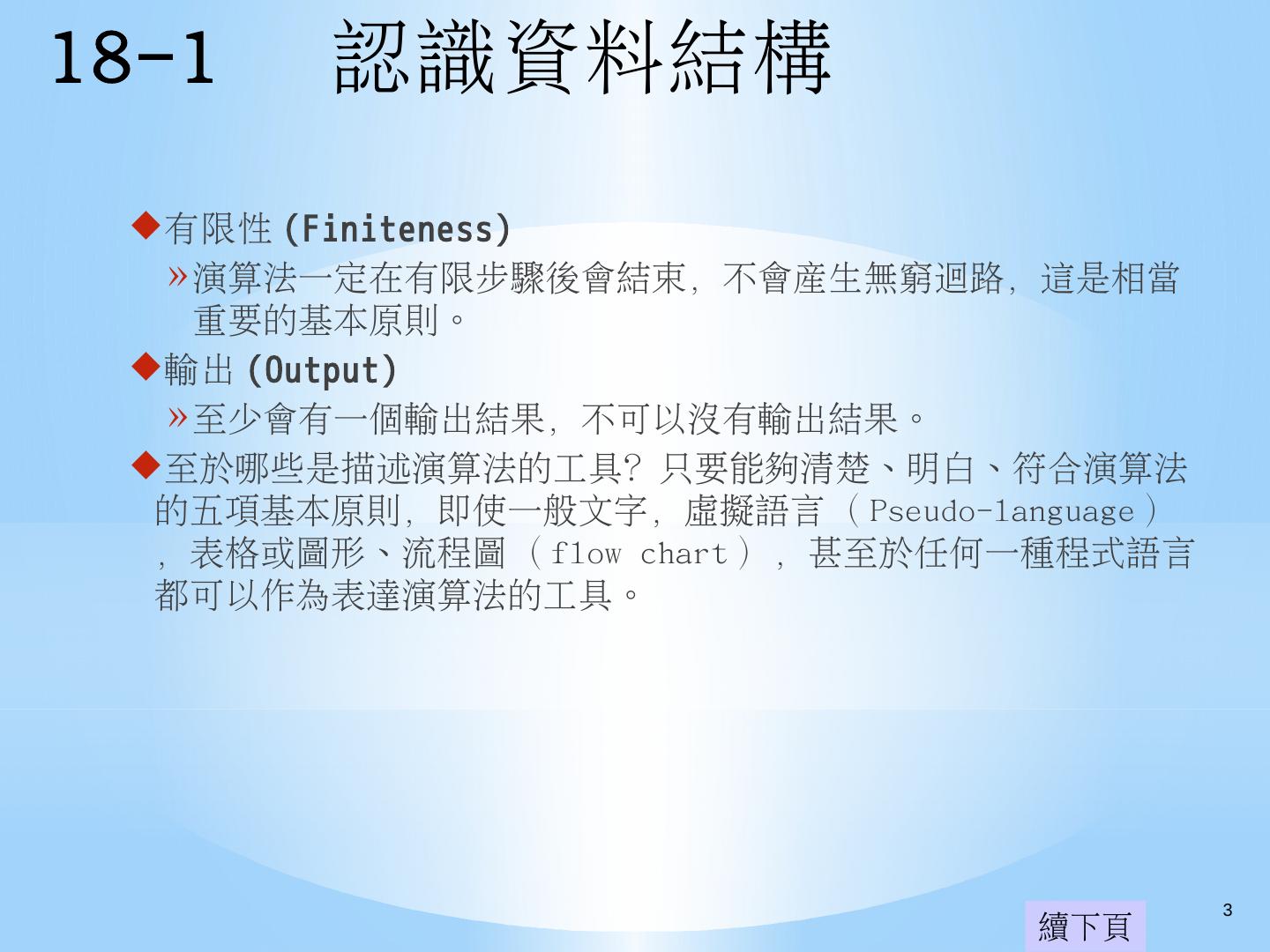 例如我們開發一套遊戲程式的「物體碰撞判斷與爆炸動畫演算法」流程圖,可以表示 ..... 在無向圖形中, 相連在一起的最大子圖(Subgraph),如圖G 有2 個相連單元。 ... 入分支度(In-degree):是指有向圖形中,以頂點V 為箭頭的邊數目,如下圖中V4的入 ...