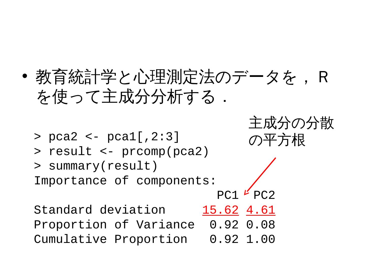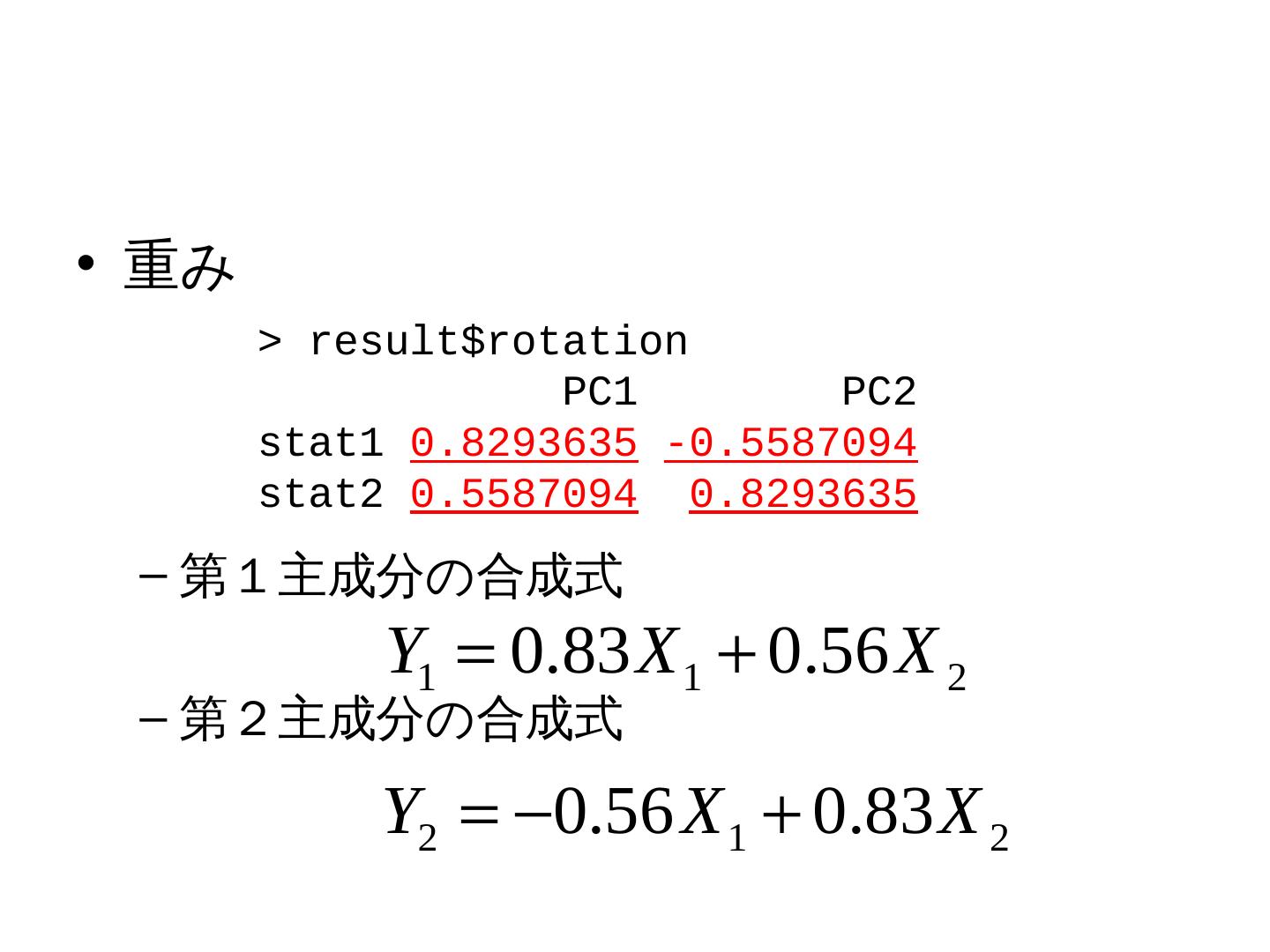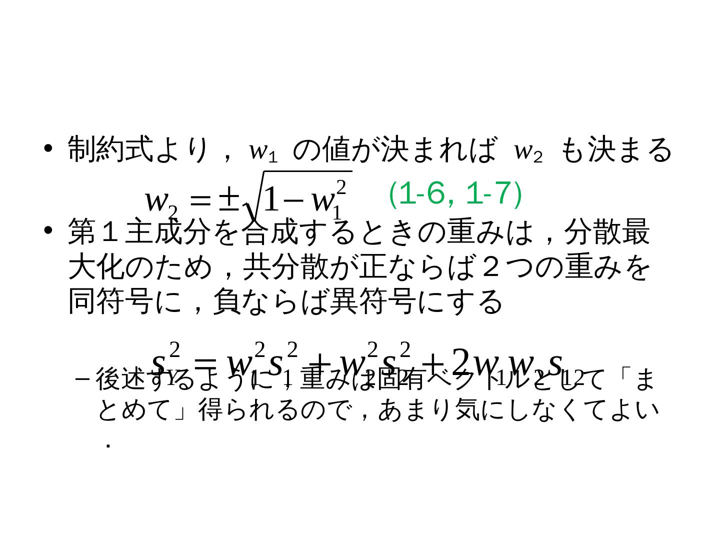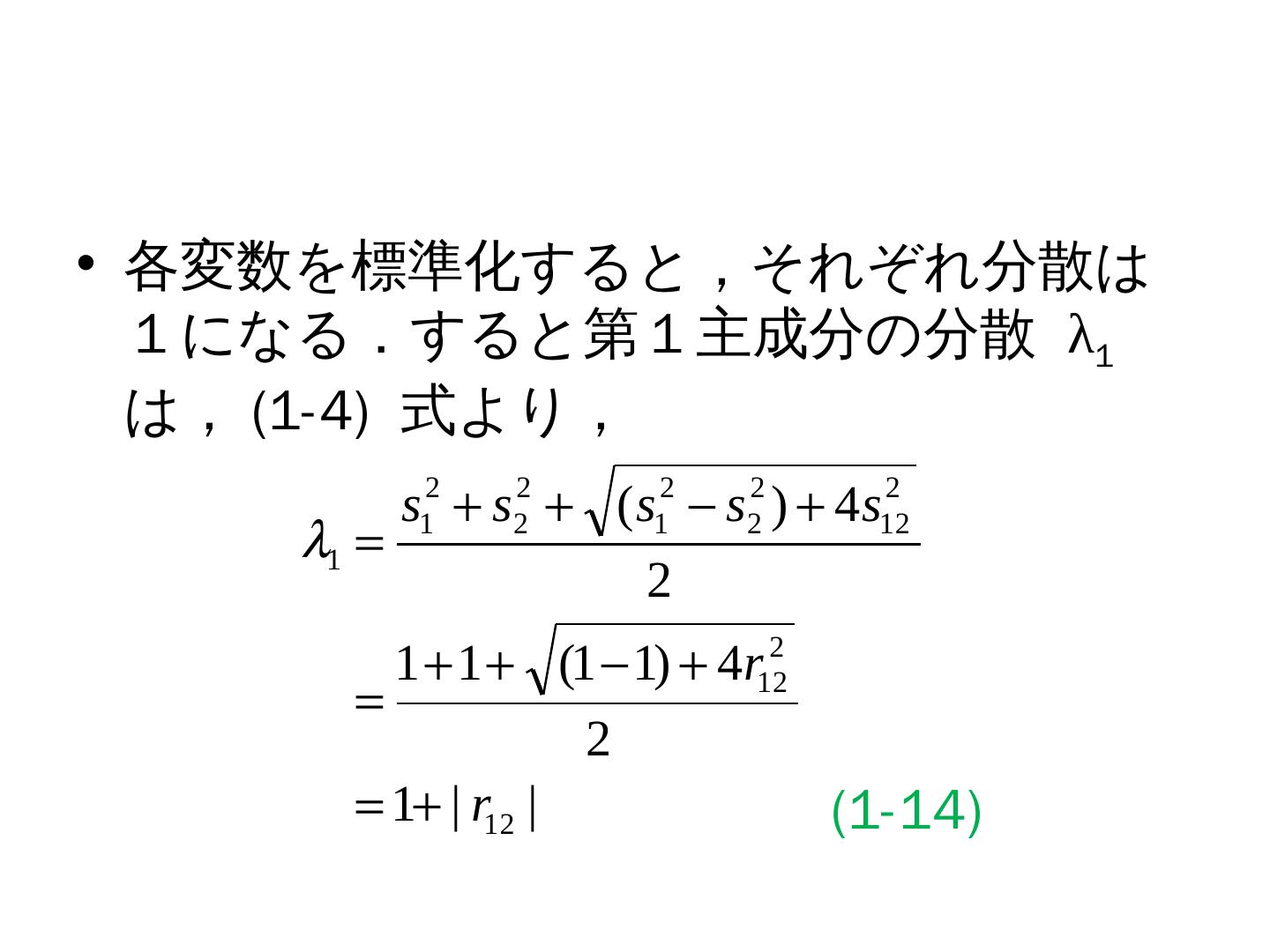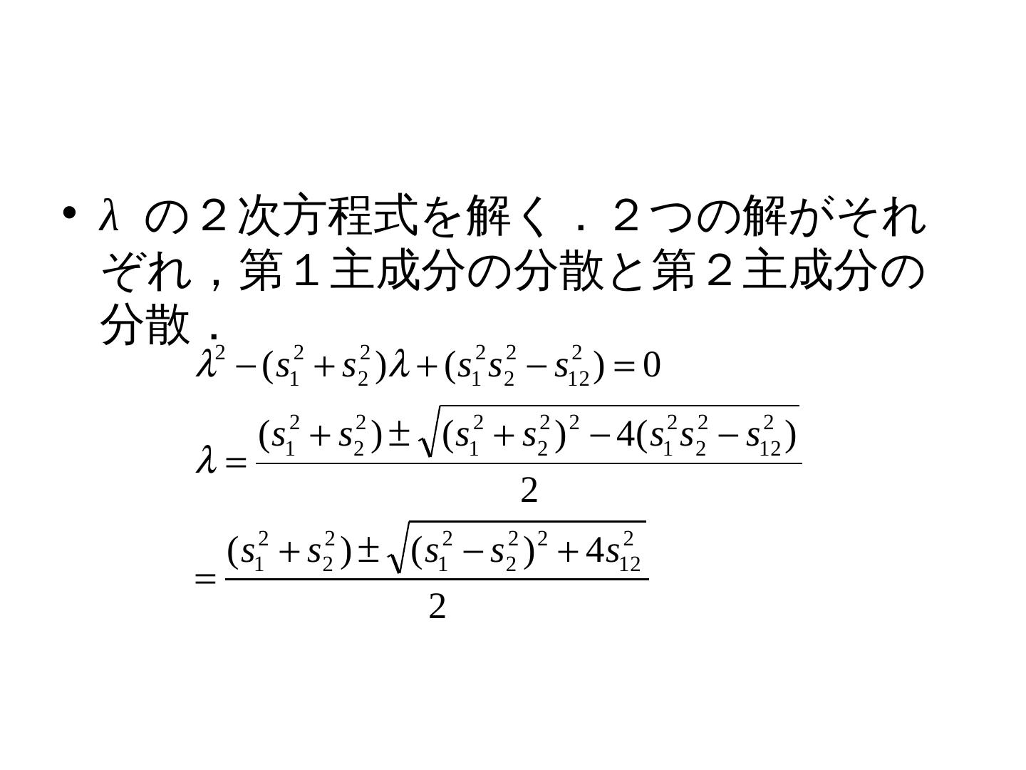 主成分分析の主要な目的は,相互に相関のある p 個の変数を,それら変数に含まれる情報を大きく損なうことなく,相互に無相関の,より少ない変数に置き換えること.