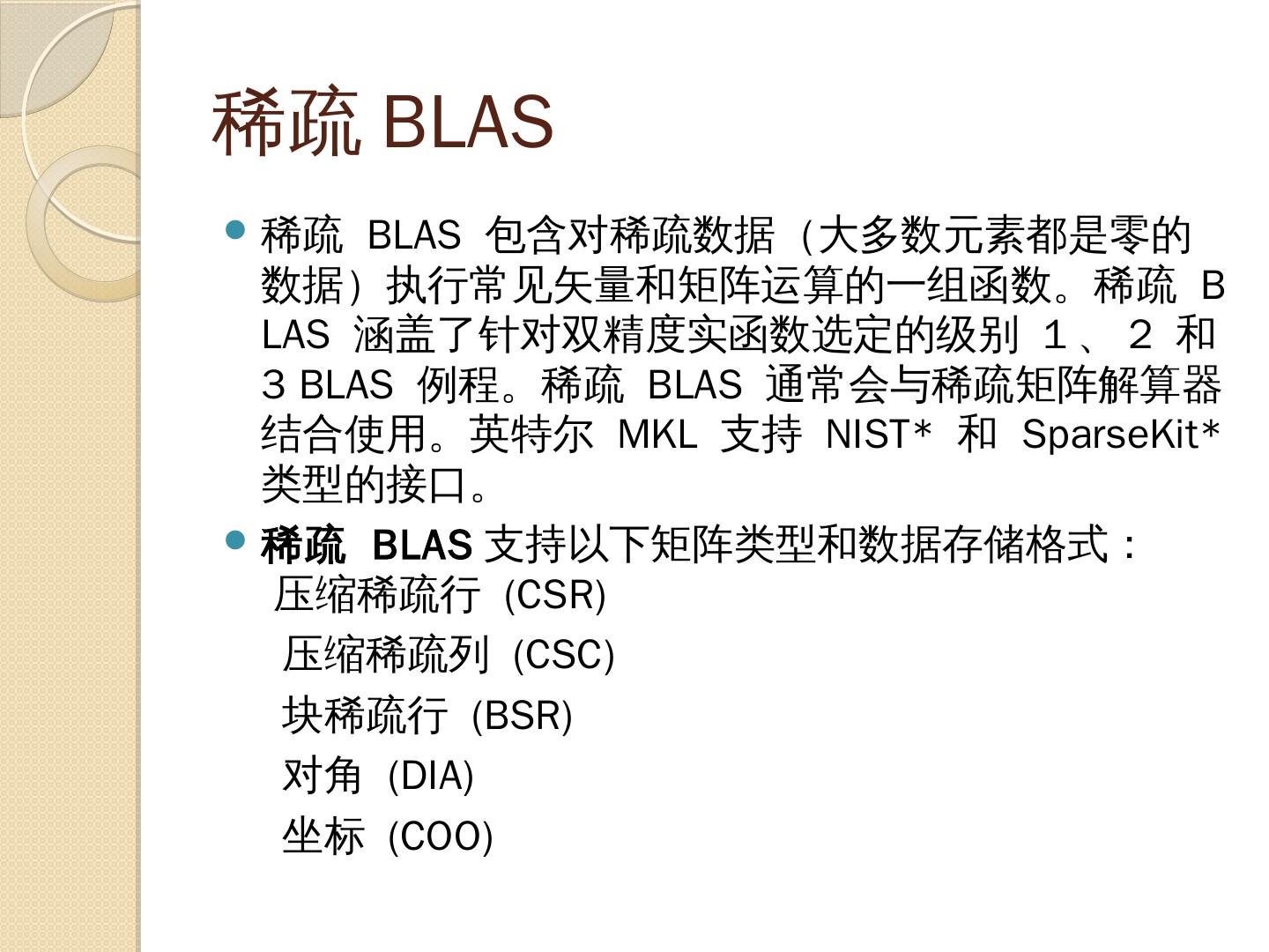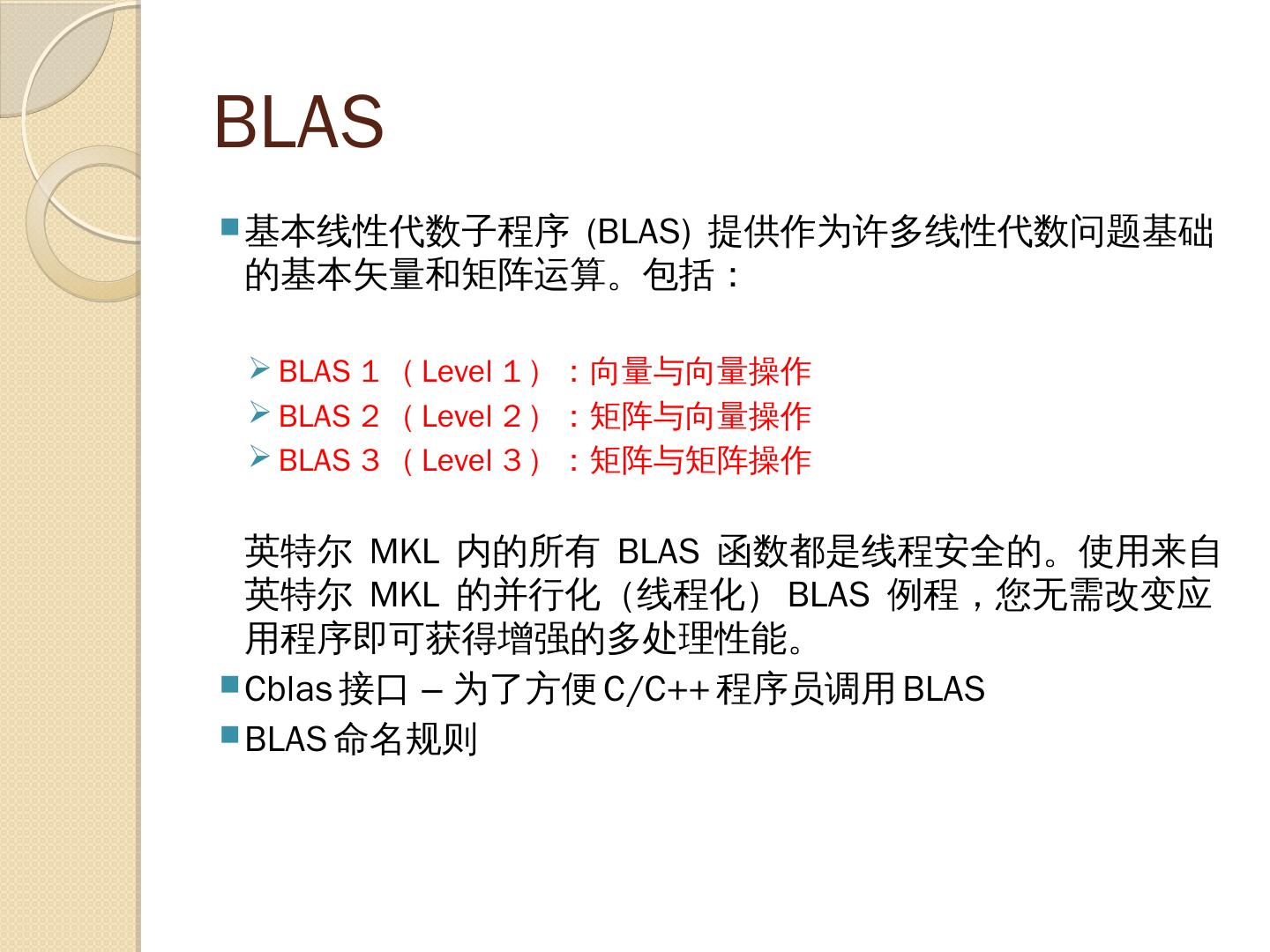 BLAS 2(Level 2):矩阵与向量操作; BLAS 3(Level 3):矩阵与矩阵操作. 英特尔MKL 内的所有BLAS 函数都是线程安全的。使用来自英特尔MKL 的并行化(线程 ...