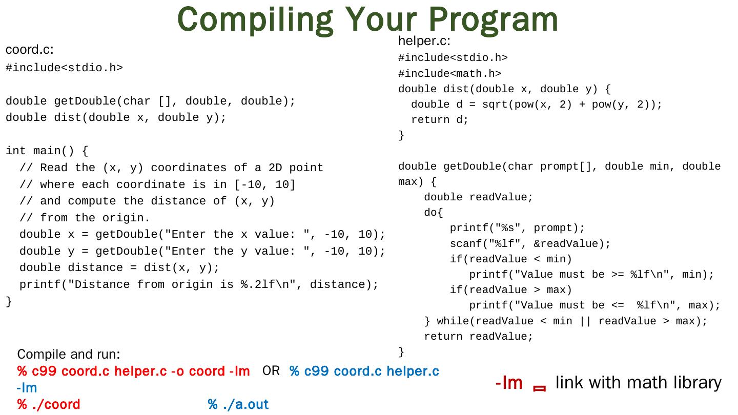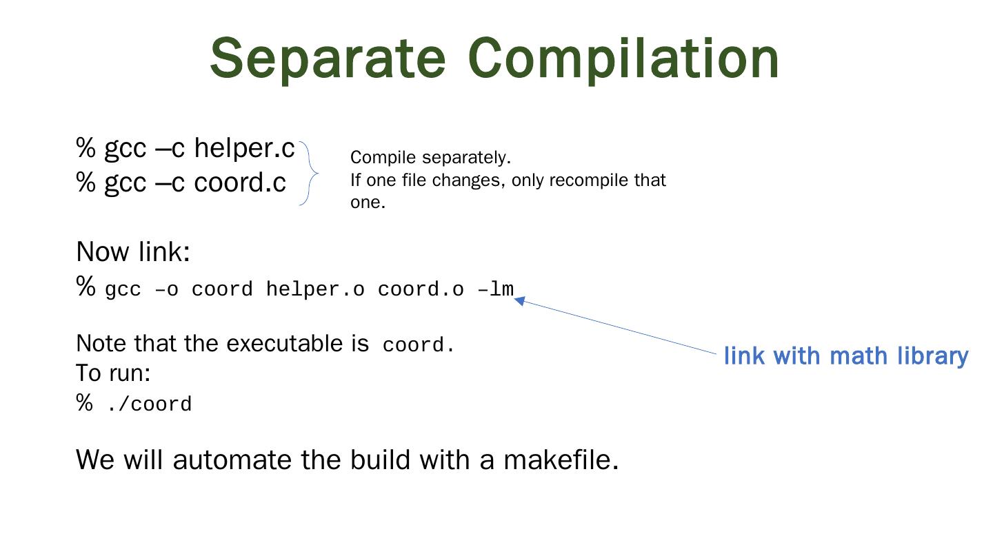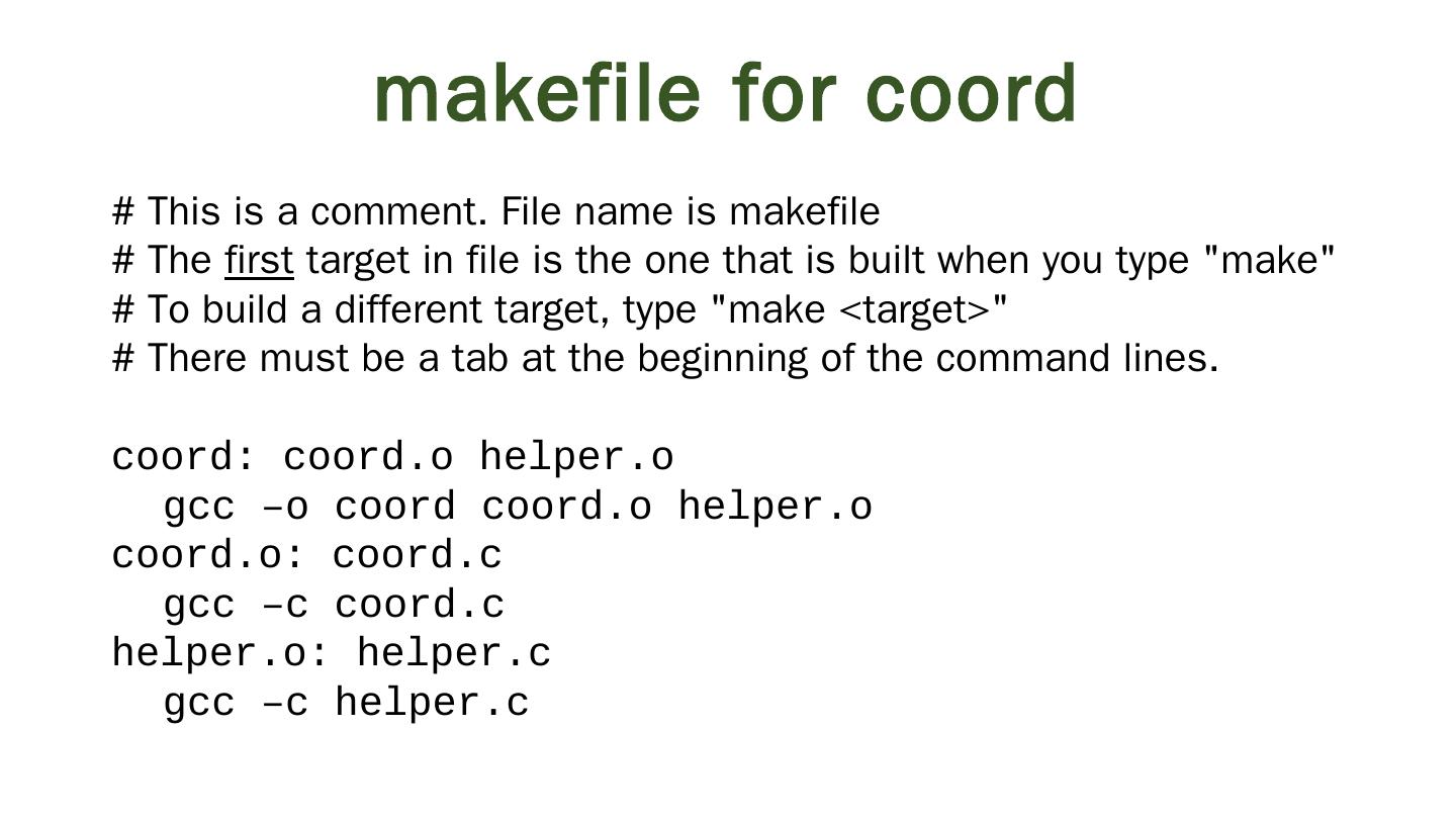 Automating Builds with Makefiles. C Programming in a Linux Environment. Compiling Your Program. coord.c: #include
