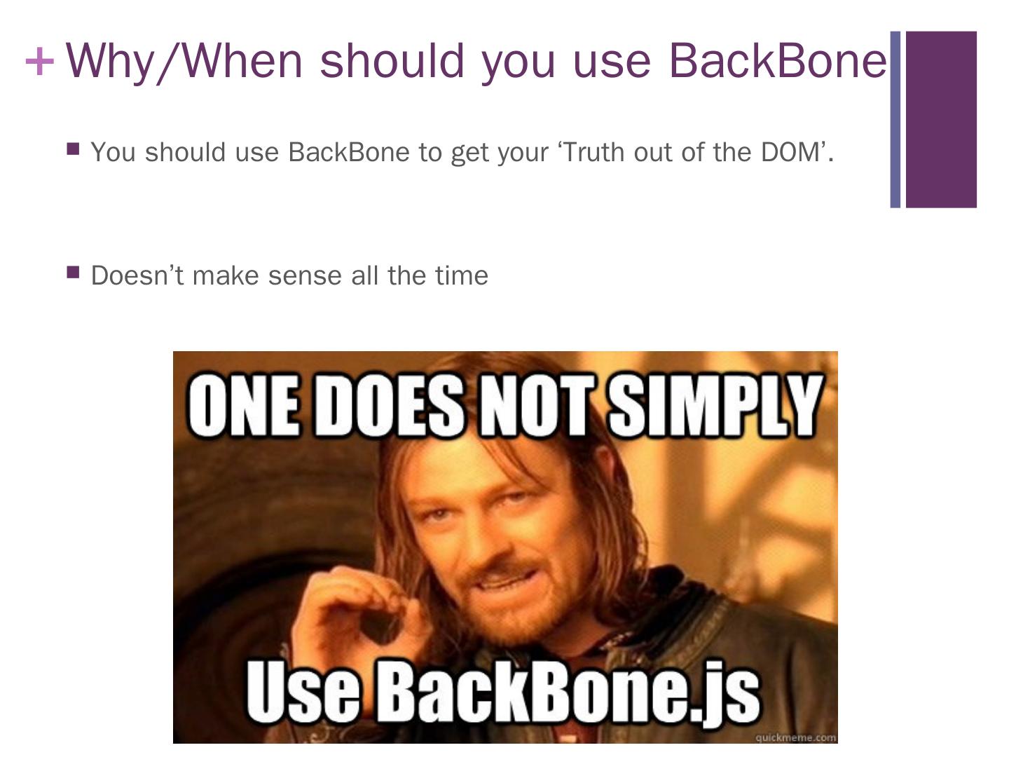 BackBone.js. By. Phil Sheperd. +. What is BackBone. BackBone is a Javascript Framework; How is this different From jQuery or Prototype? Libraries vs ...