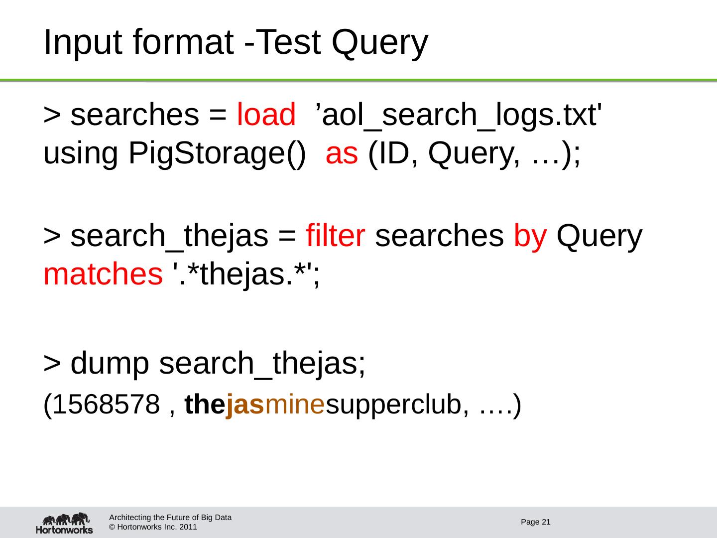 What is Apache Pig? Page 2. Pig Latin, a high level data processing language. An engine that executes Pig Latin locally or on a Hadoop cluster. Pig-latin-cup ...