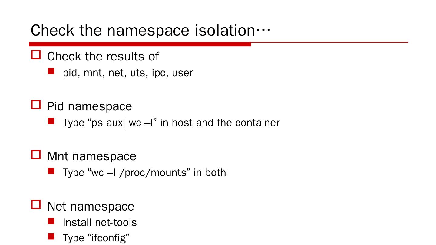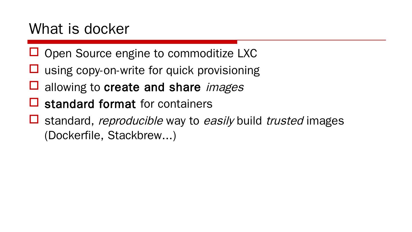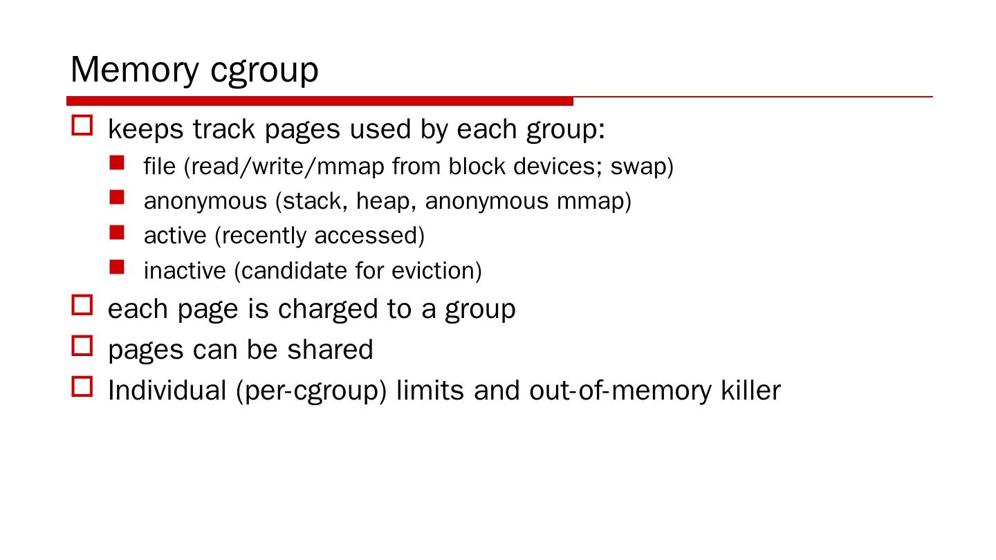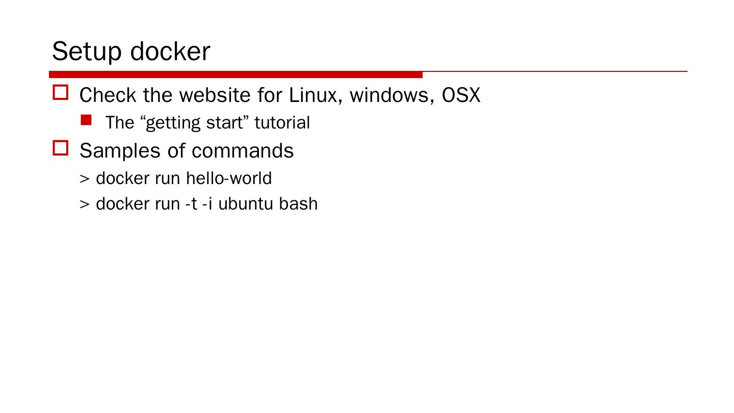 Comparison between LXC/docker and VM. Container technique. Linux kernel provides the “control groups” (cgroups) functionality (cgroup-tools).