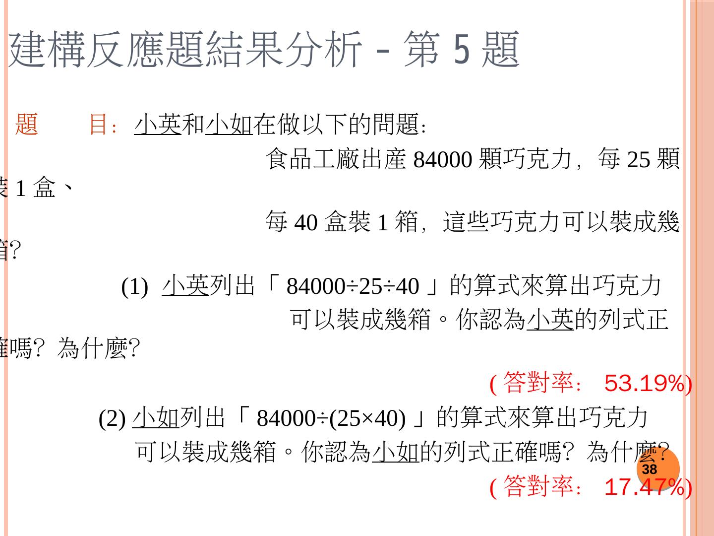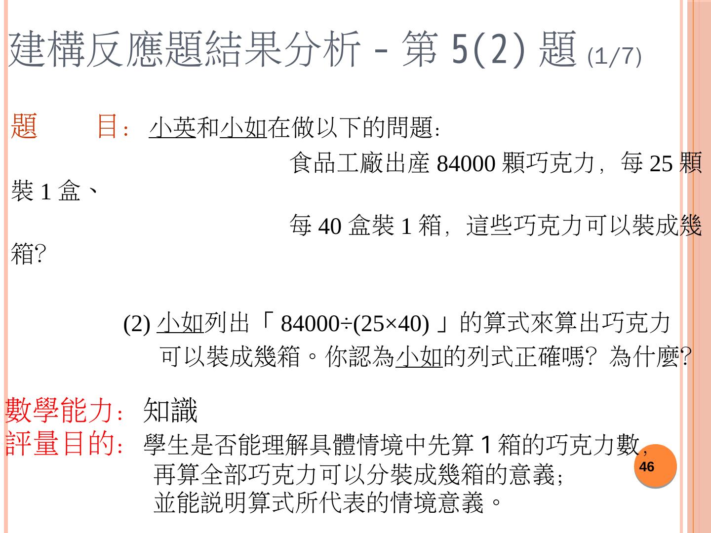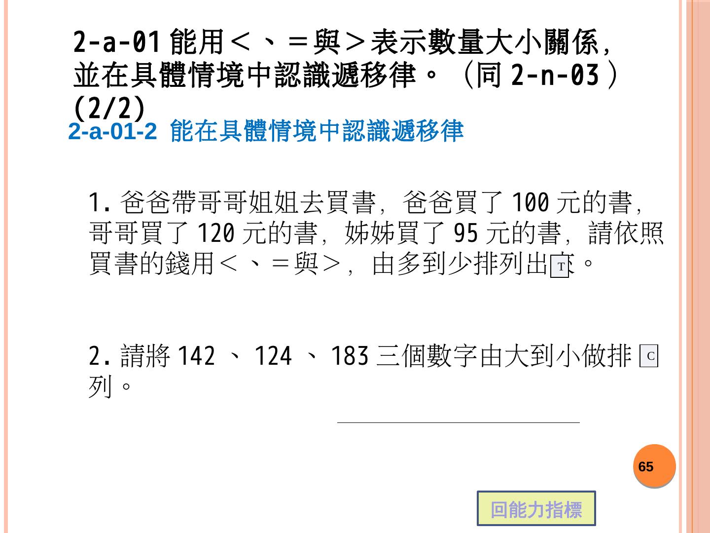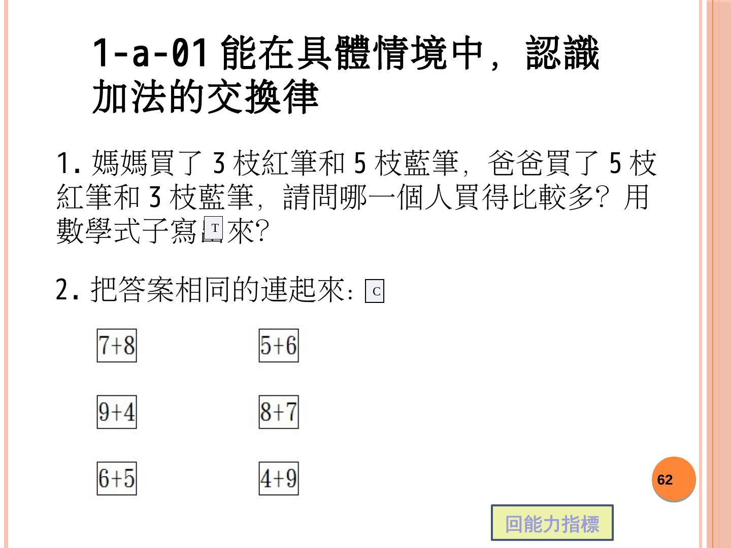 代數能力指標; 102年度代數檢測結果; 代數教學核心概念; 代數教學建議. 5 ..... 一般而言,代數是以一個未知數(如X)代表一個數,但規律的發現、數量的關係、變數都是 ...
