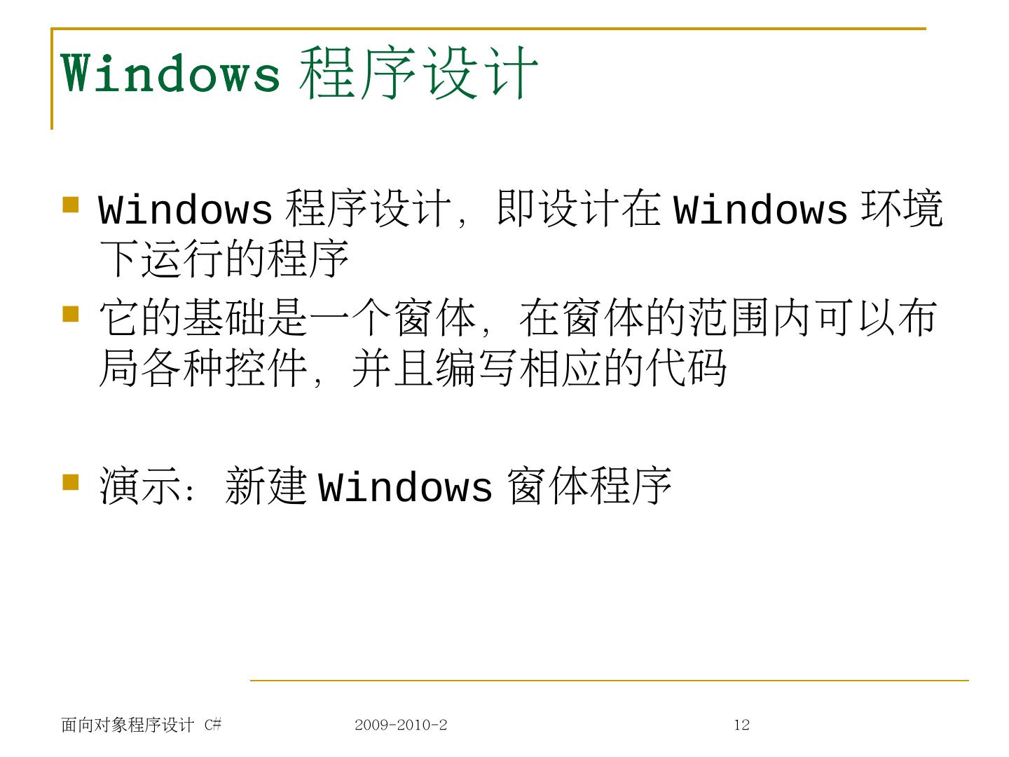 面向对象程序设计C#.Net 09 Windows程序设计I