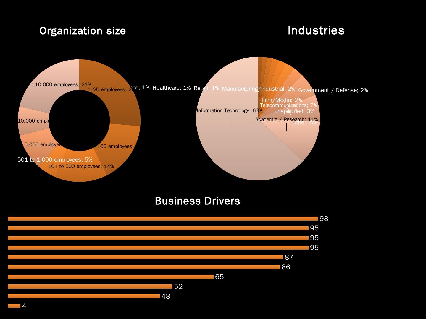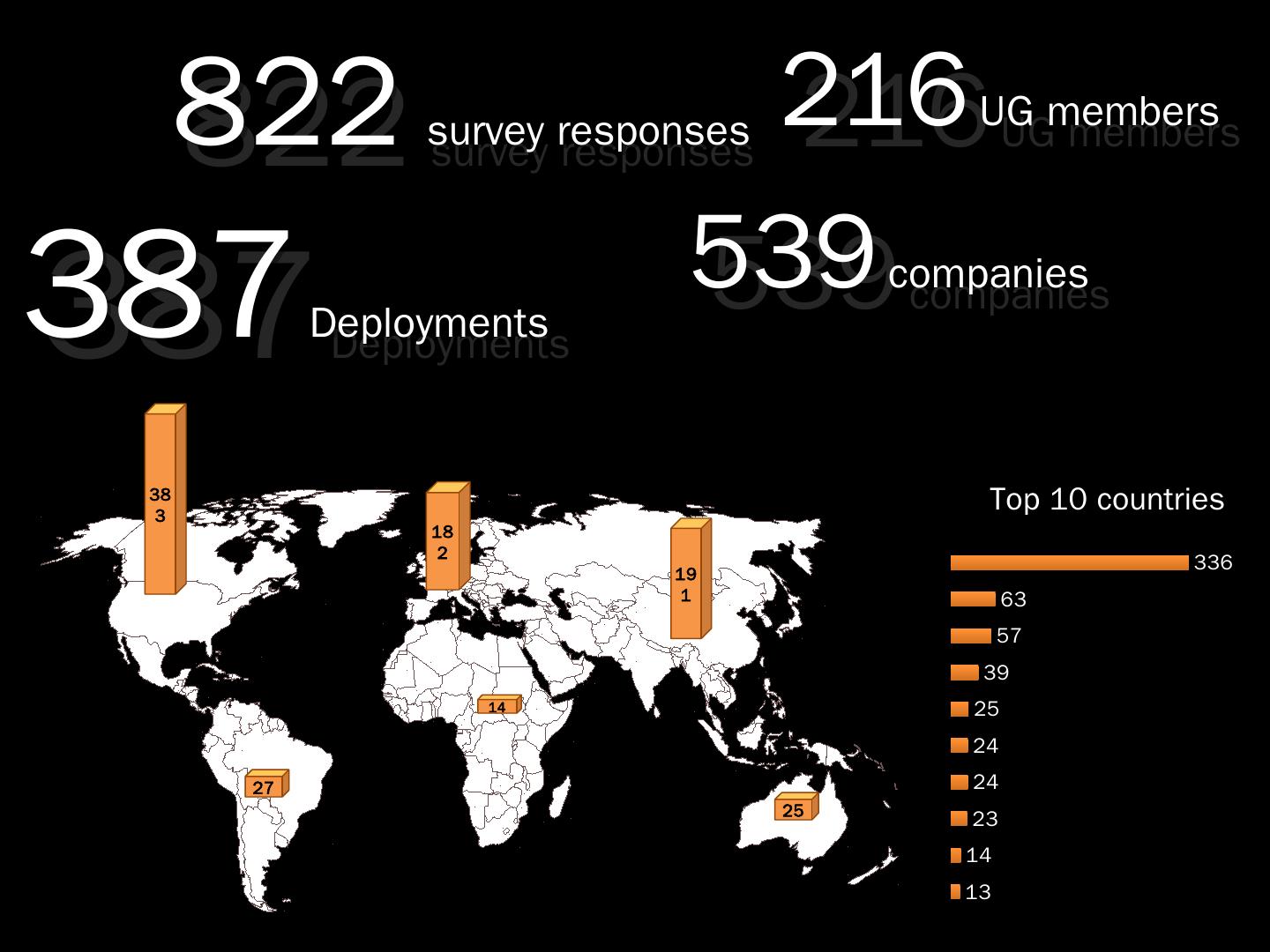 2 .387 Deployments 387 Deployments 383 182 27 25 191 14 822 survey responses 822 survey responses 539 companies 539 companies Top 10 countries 216 UG members 216 UG members